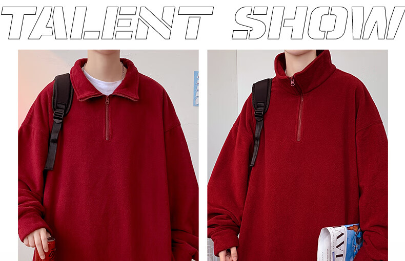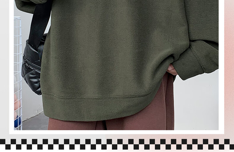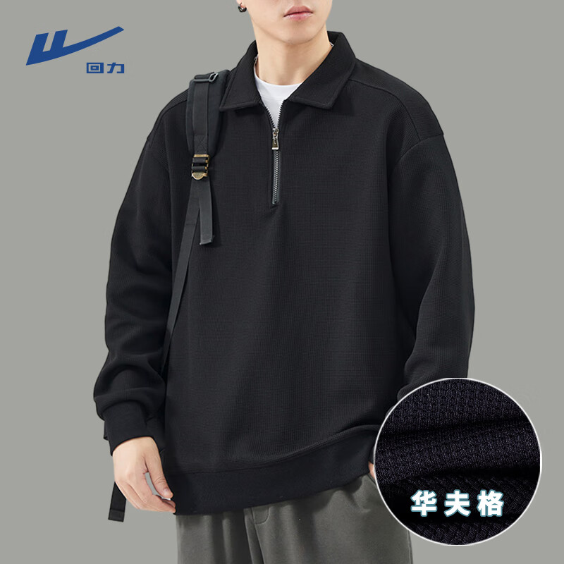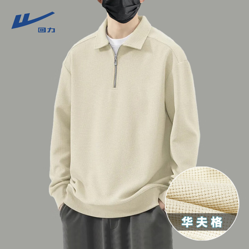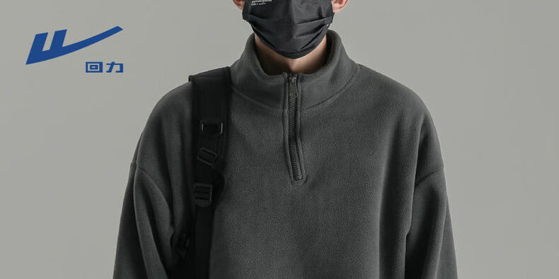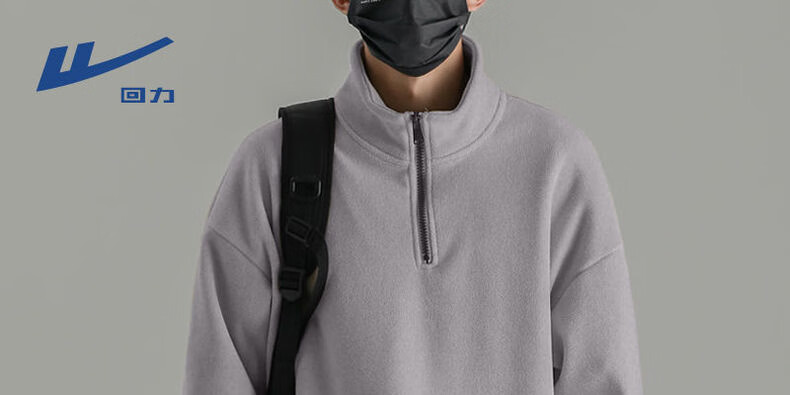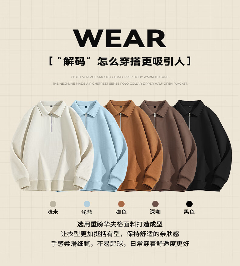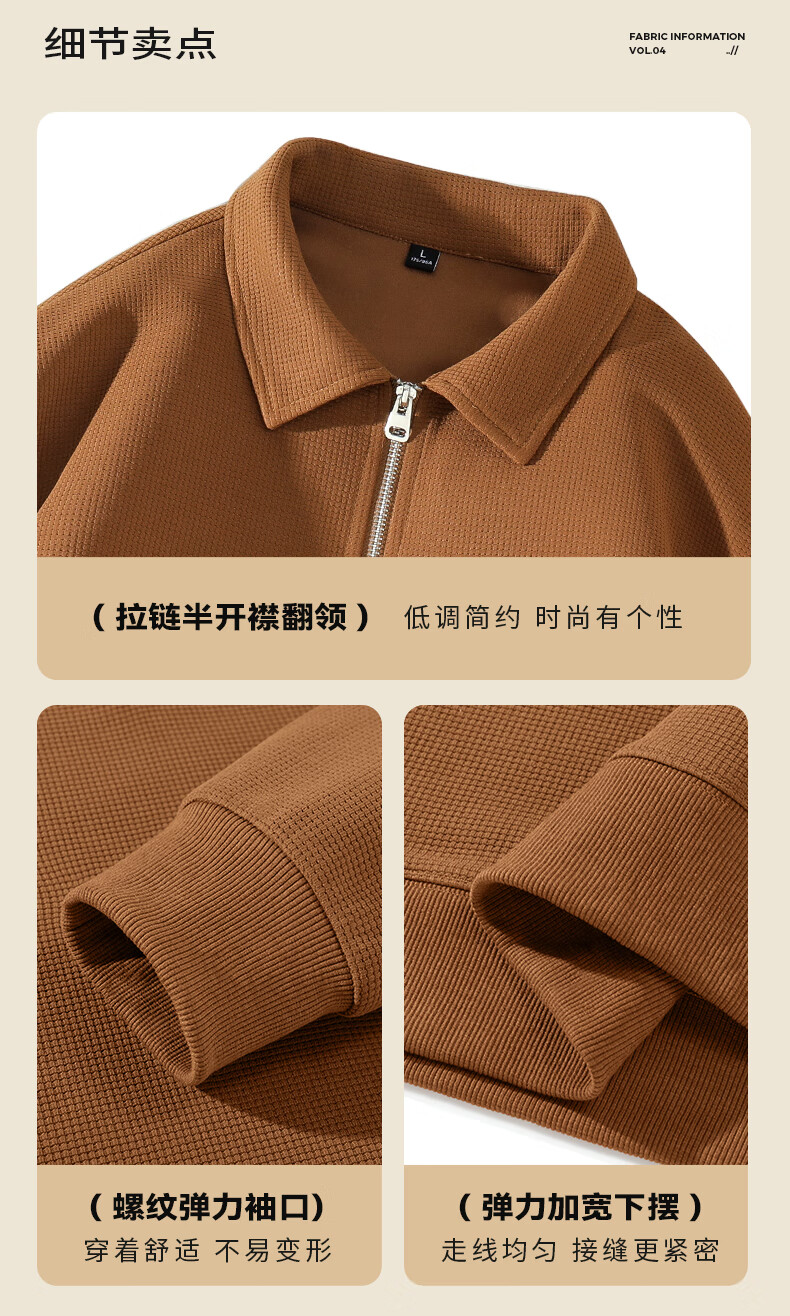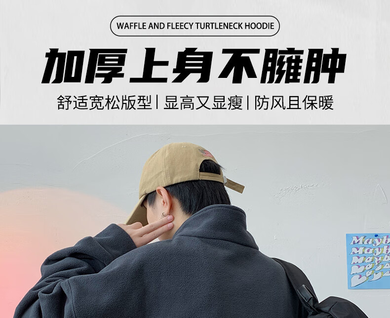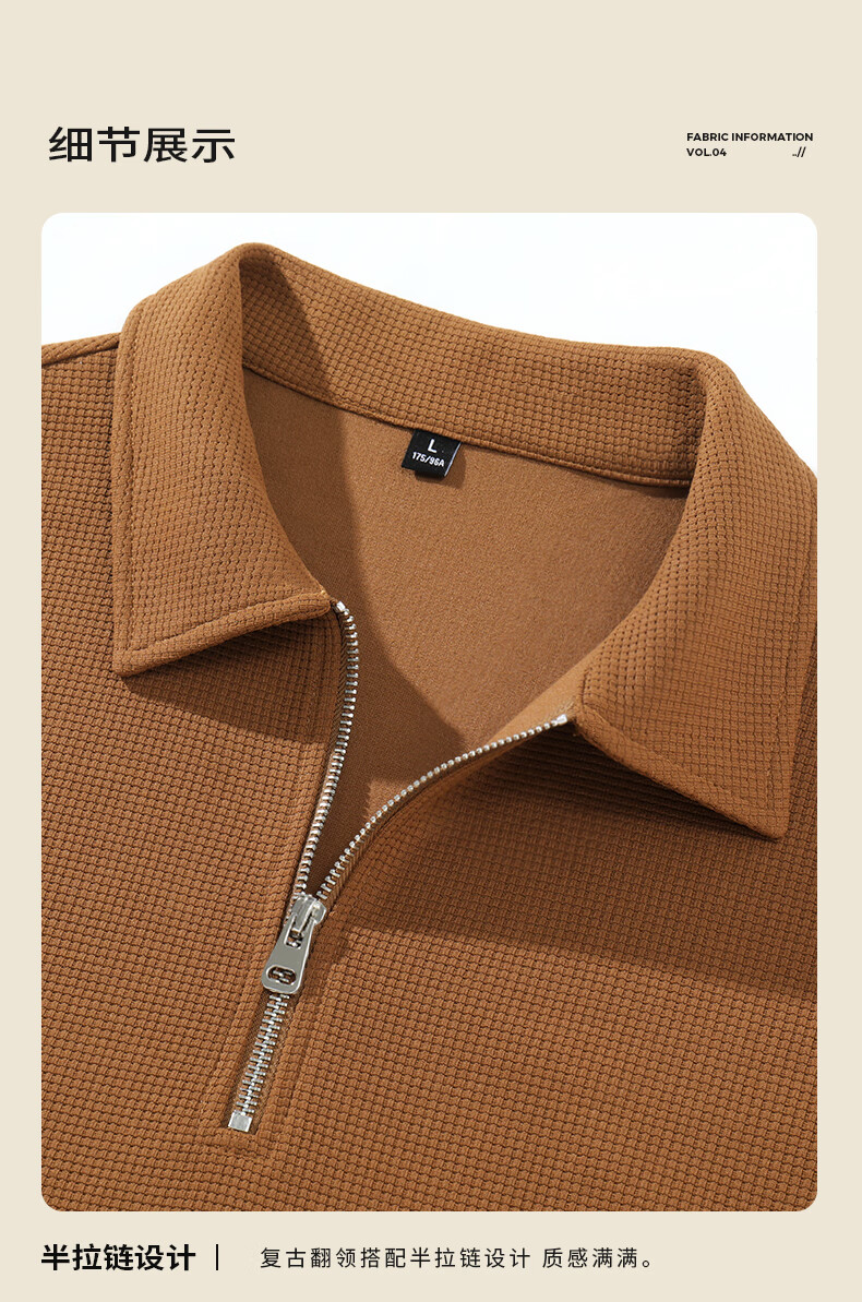 Warrior half-zip turtleneck waffle sweatshirt for men in spring and autumn, Japanese retro solid color casual jacket, versatile loose top, double-sided velvet - medium gray #HL solid color 2XL
