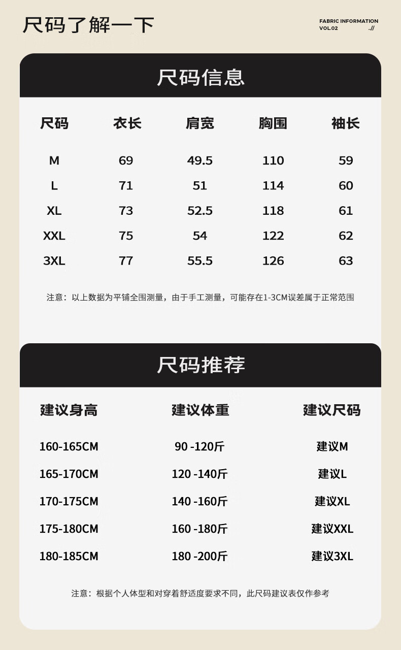 China (cm) 165 / 88-90 170 / 96-98 175 / 108-110 180 / 118-122 185 / 126-130