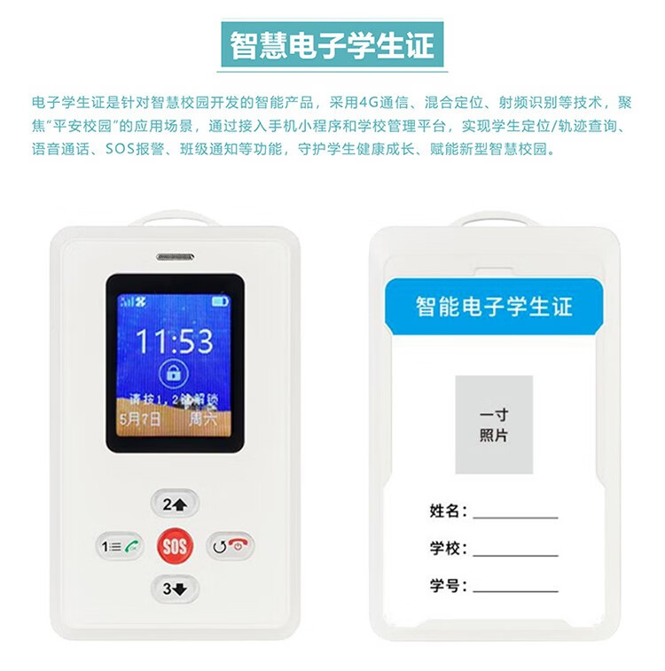 4G智能电子学生卡初中小学生电子学生证校讯通挂脖卡片胸牌学校定位器防走丢失GPS神器 有屏测温版