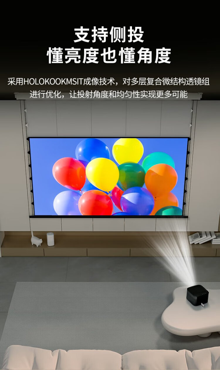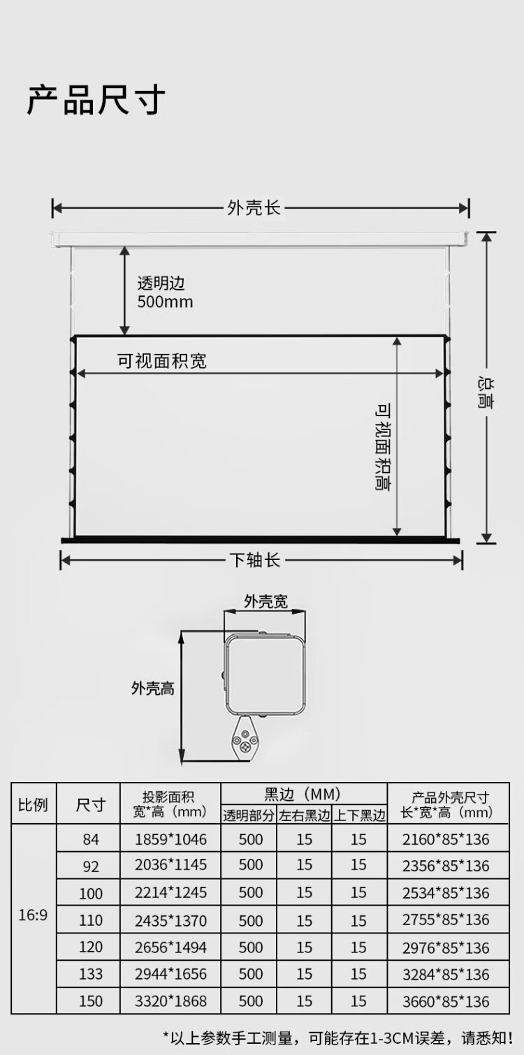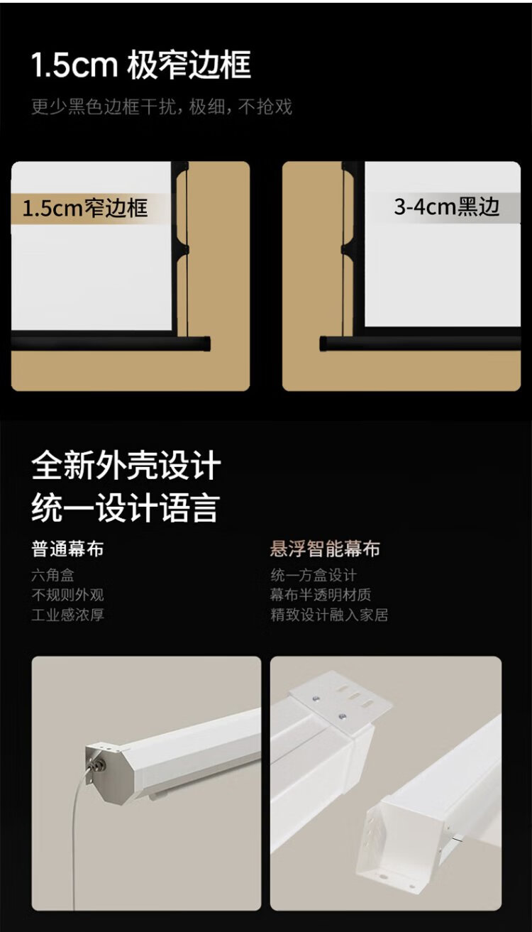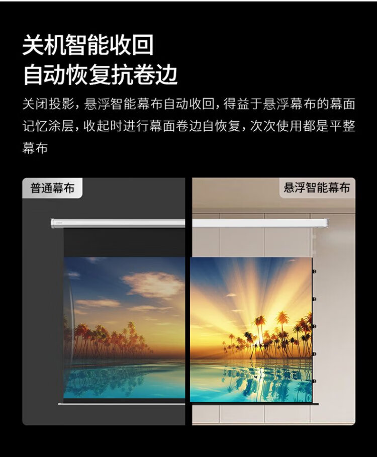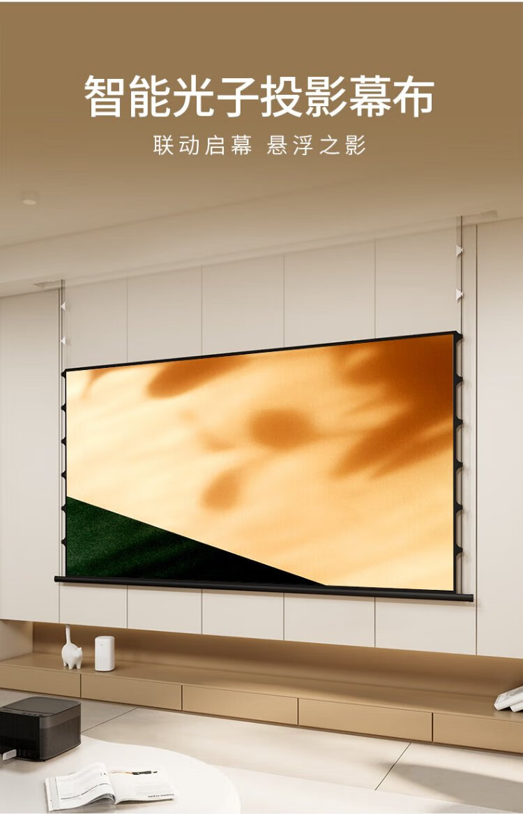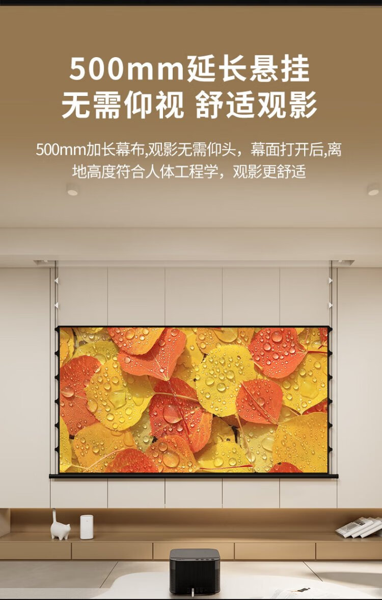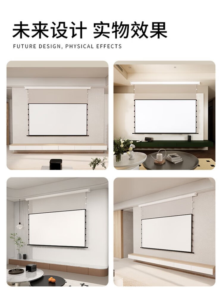 JCONG Free Installation Projection Curtain Smart Photon Home Living Room Ceiling Wall Mount Remote Control Suspension Electric Curtain Home Theater Embedded Hidden Wire Anti-Light Curtain Smart Photon Wire Curtain-Suspended Version 92 Inch