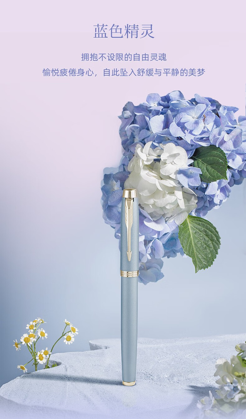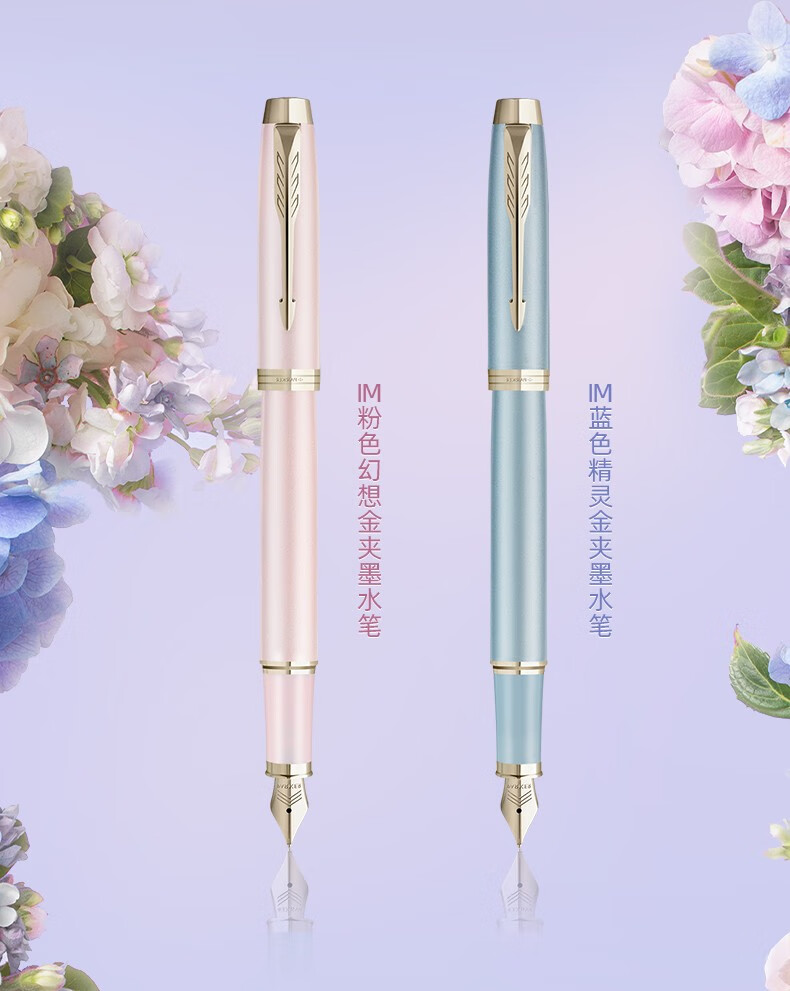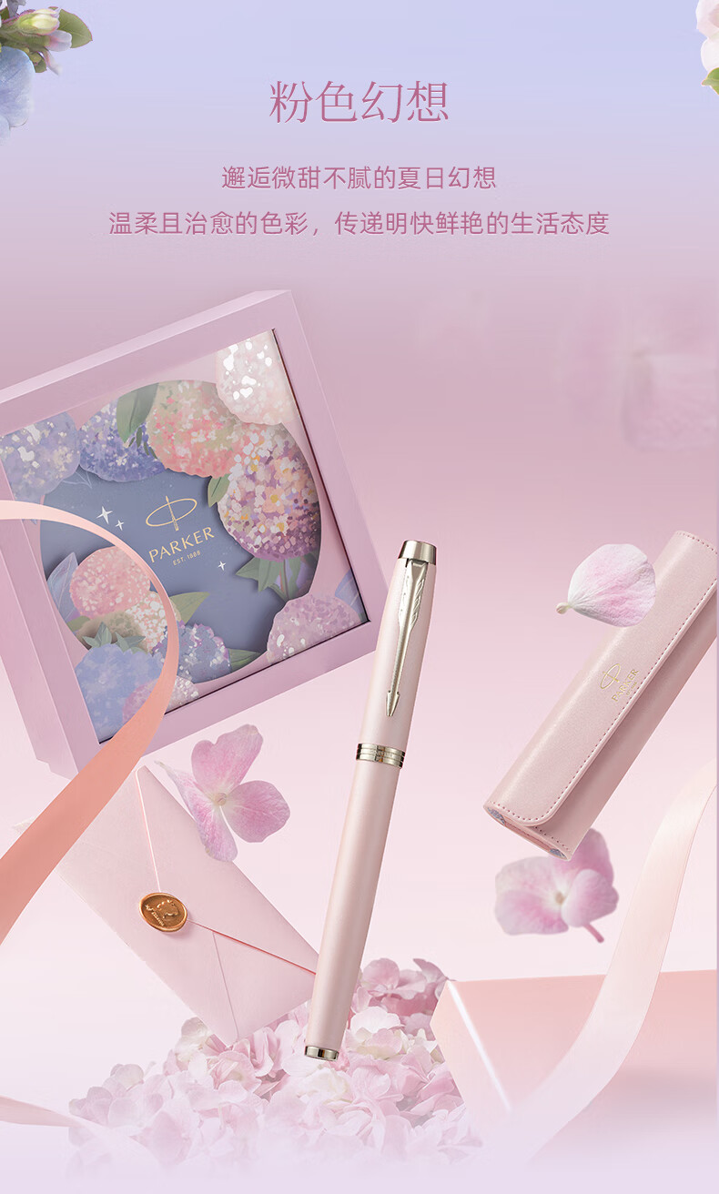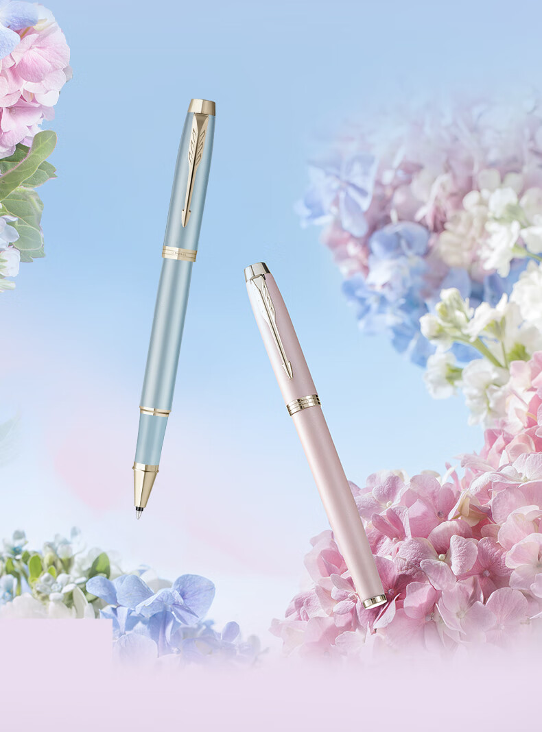 PARKER stylo et stylo à encre haut de gamme lumière luxe hortensia coffret cadeau IM série florale coffret cadeau pour hommes à envoyer aux femmes stylo de papeterie créatif macaron cadeau commémoratif de remise des diplômes IM rose fantaisie or clip stylo à encre + coffret cadeau art fleur d'hortensia