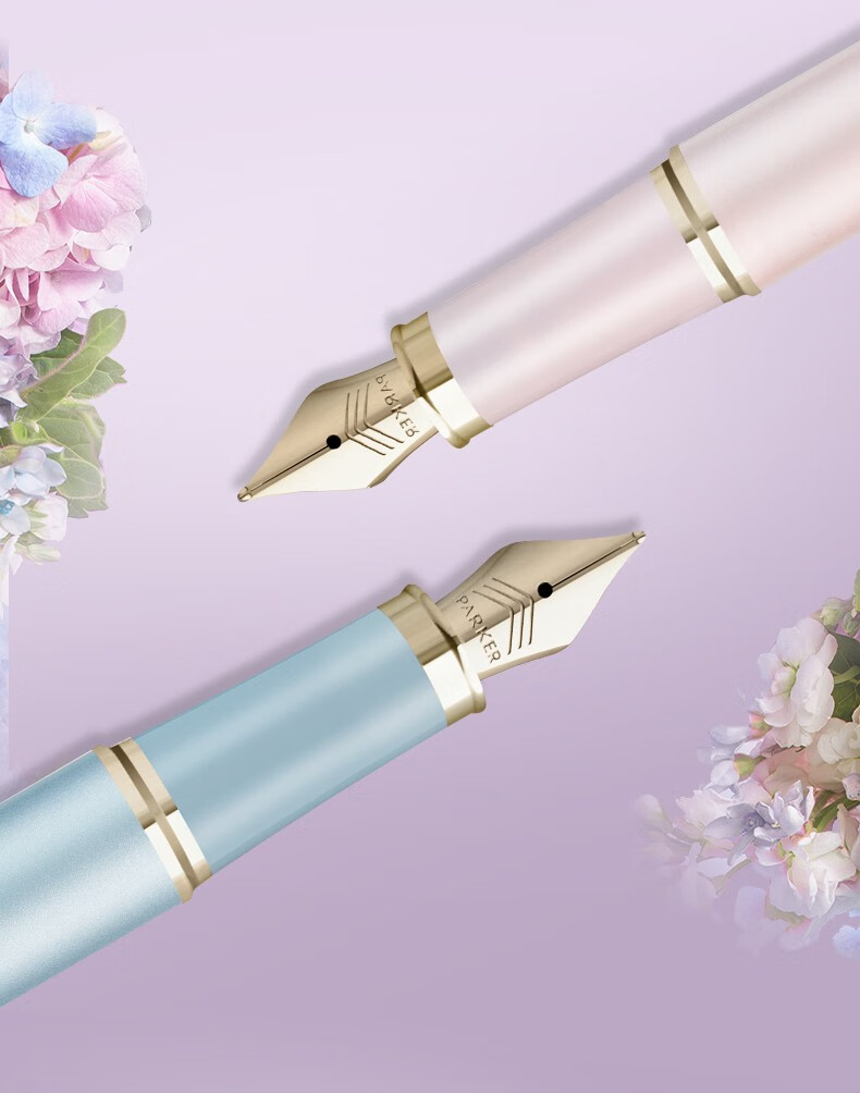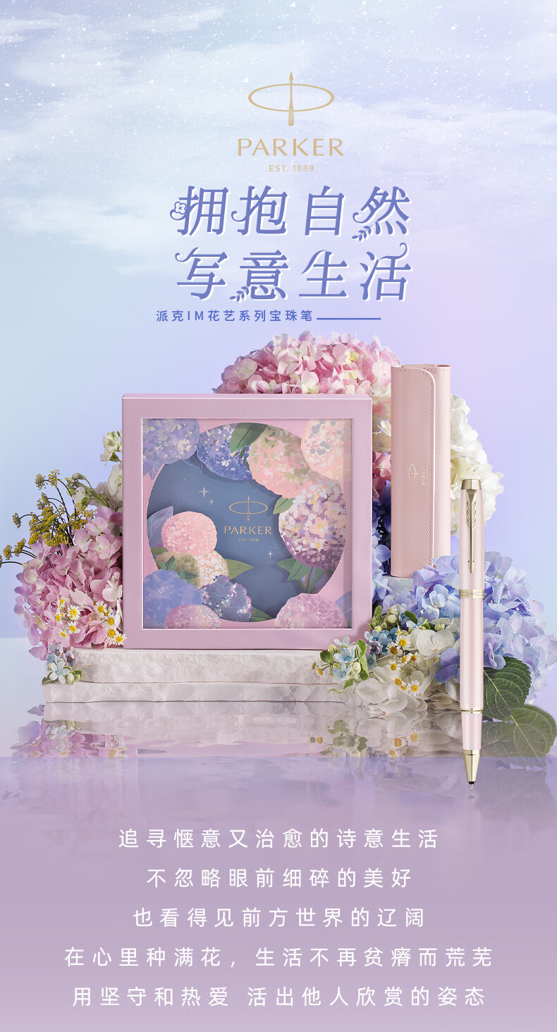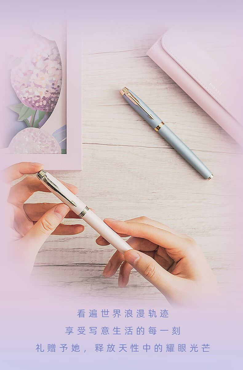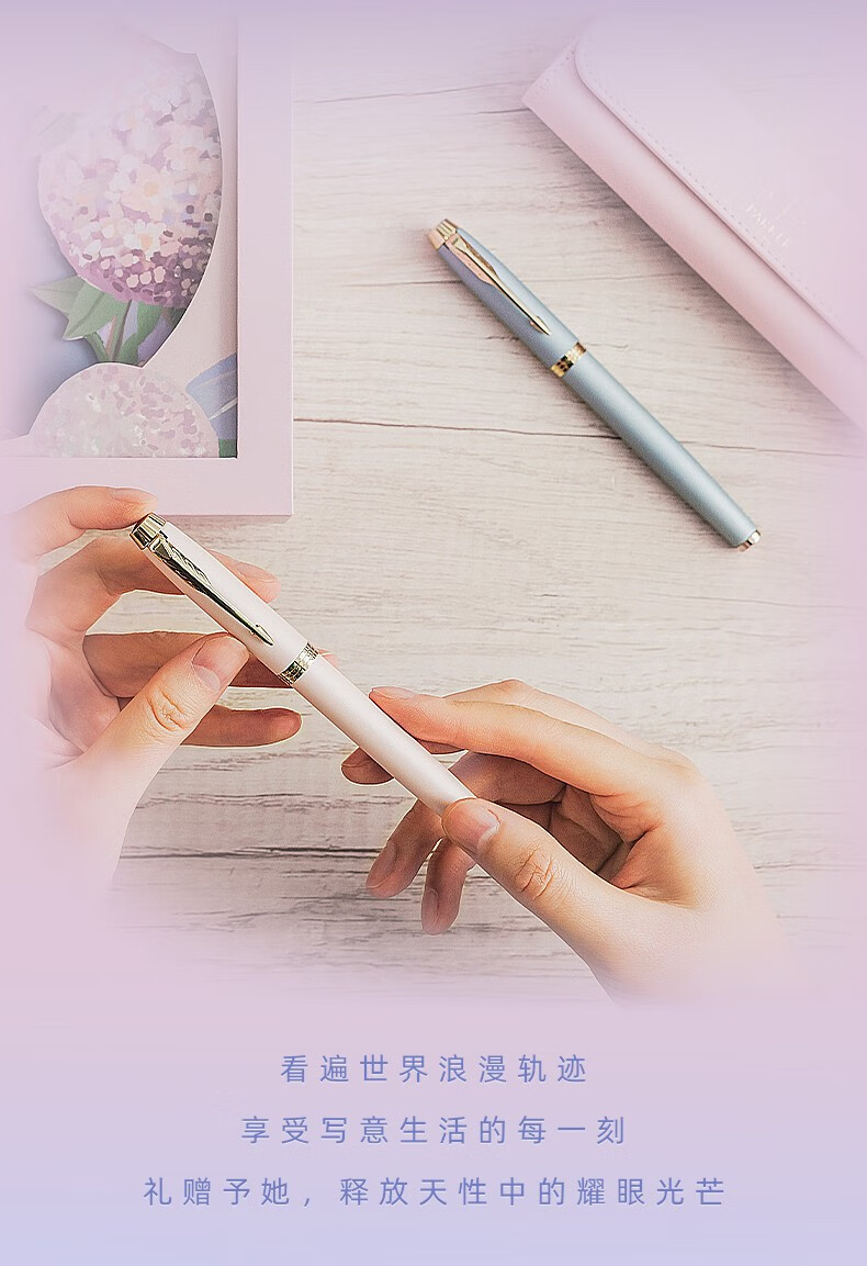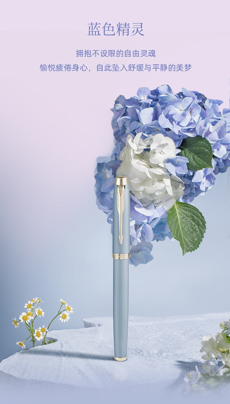 PARKER stylo et stylo à encre haut de gamme lumière luxe hortensia coffret cadeau IM série florale coffret cadeau pour hommes à envoyer aux femmes stylo de papeterie créatif macaron cadeau commémoratif de remise des diplômes IM rose fantaisie or clip stylo à encre + coffret cadeau art fleur d'hortensia