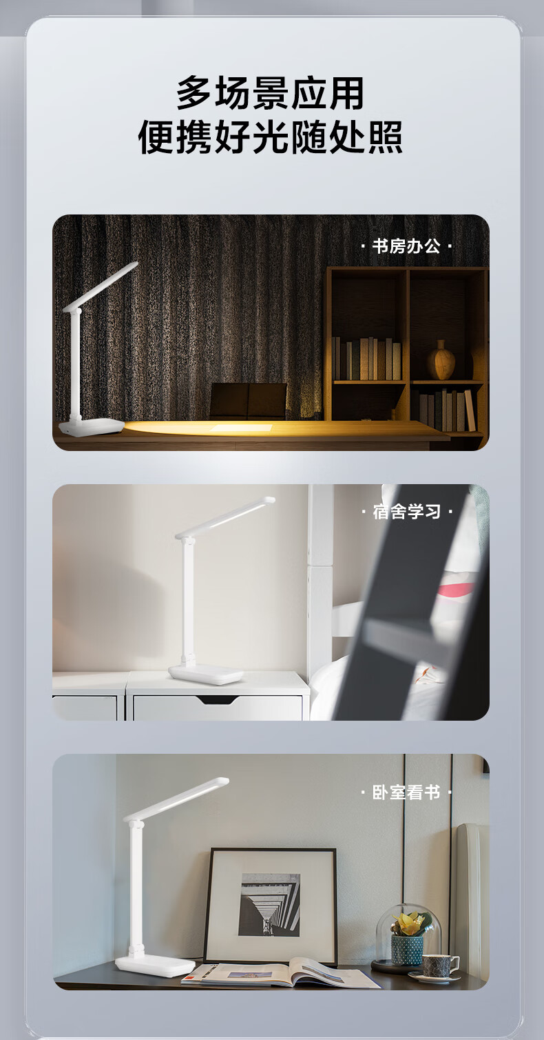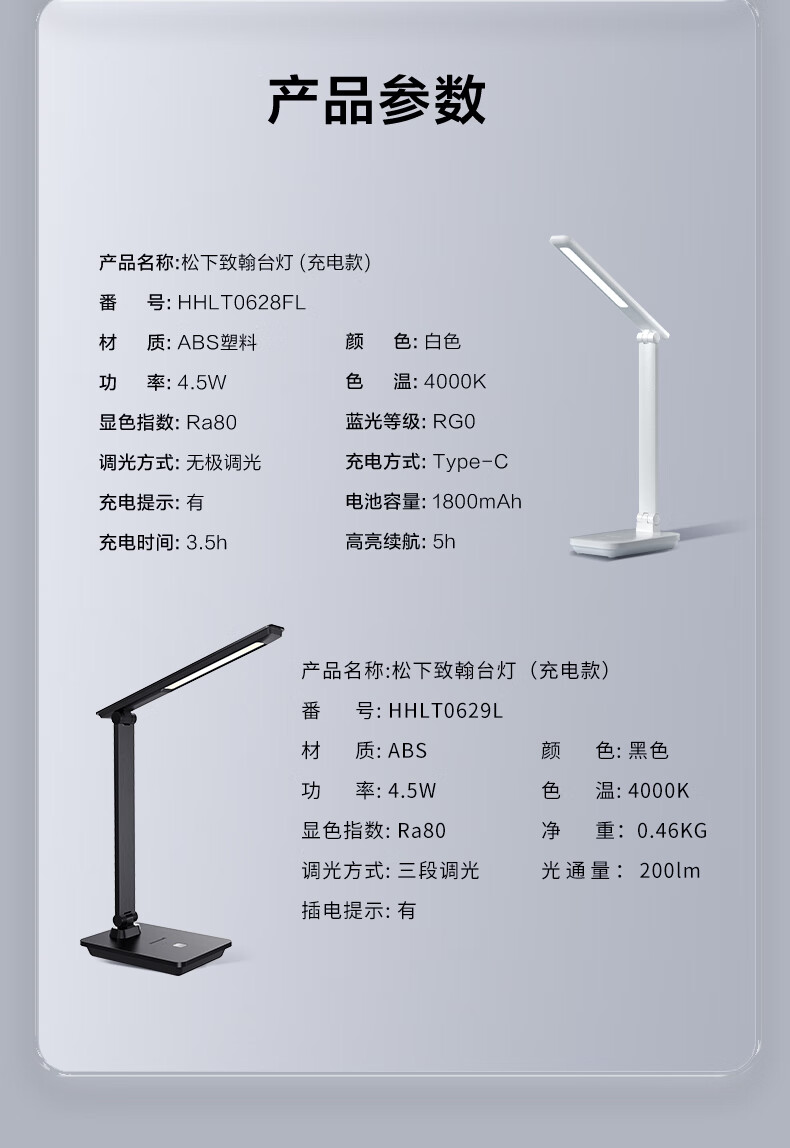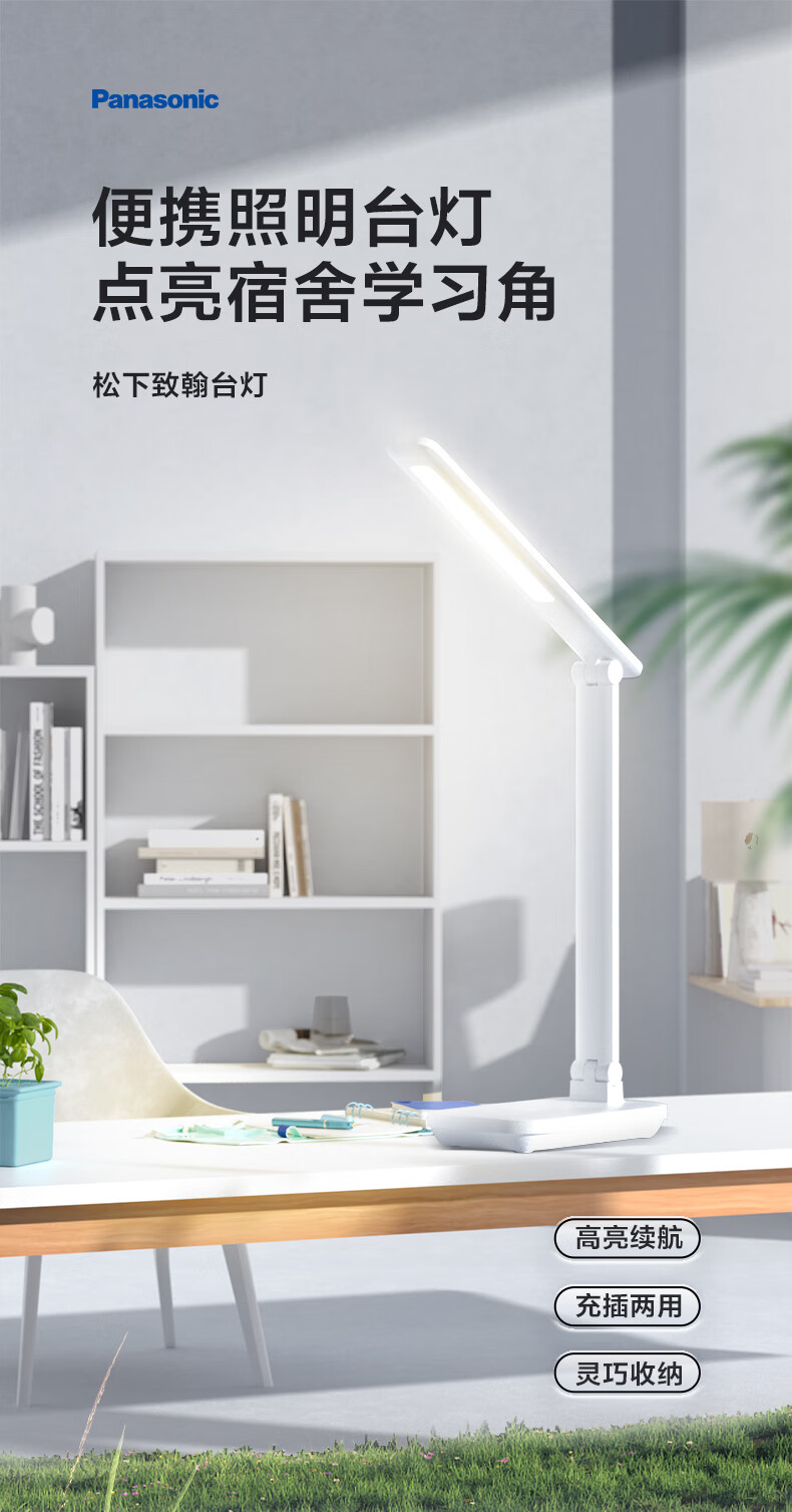 松下(Panasonic)LED台灯护眼书桌小学生学习专用写字台灯充电插电两用床头灯 【升级款】充插两用白色款+充电 触摸开关