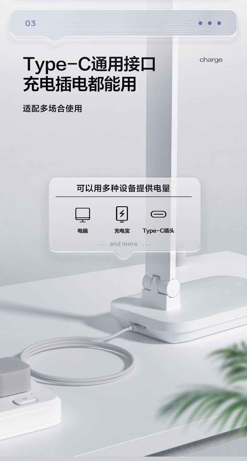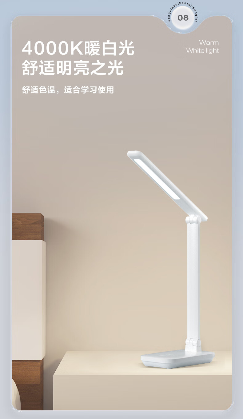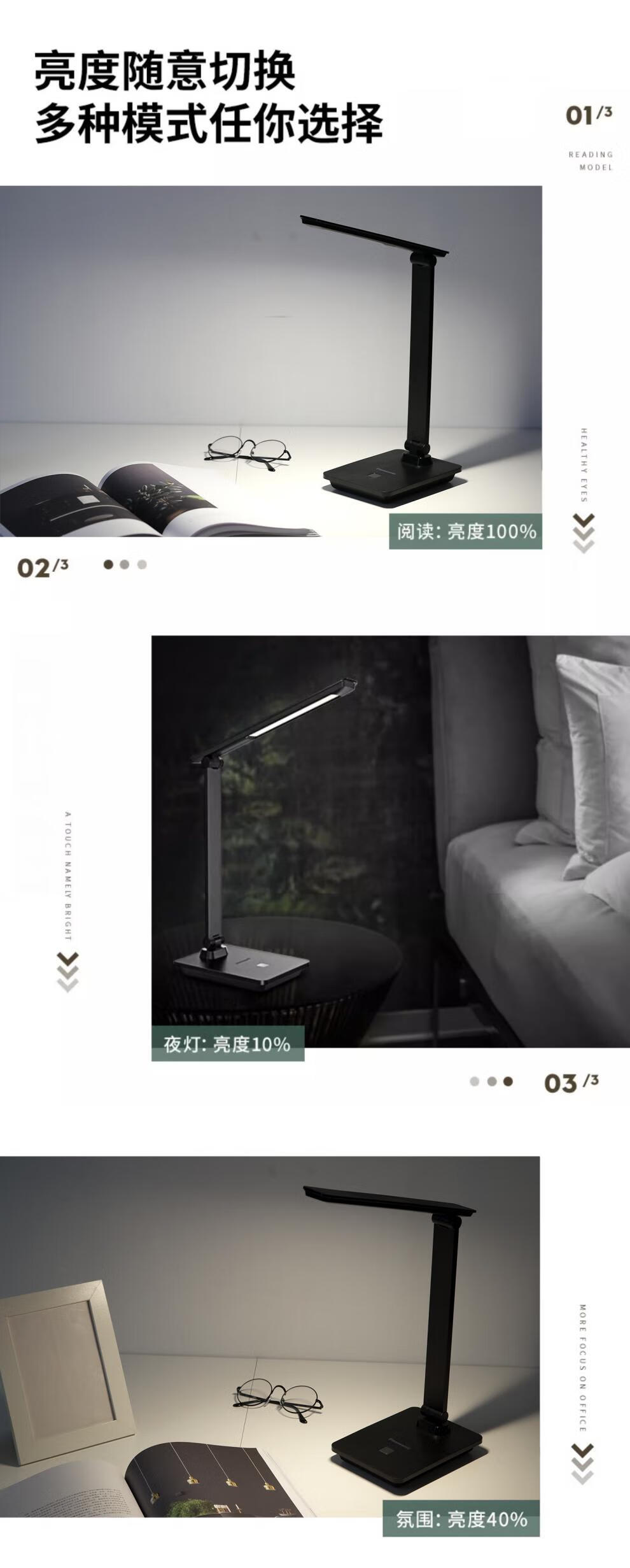 松下(Panasonic)LED台灯护眼书桌小学生学习专用写字台灯充电插电两用床头灯 【升级款】充插两用白色款+充电 触摸开关