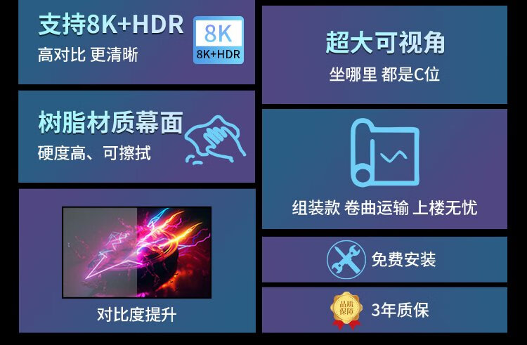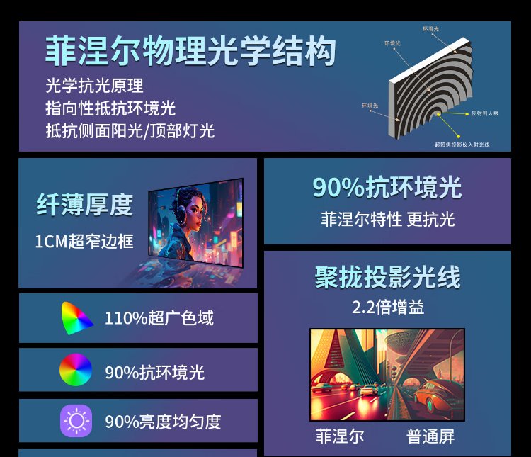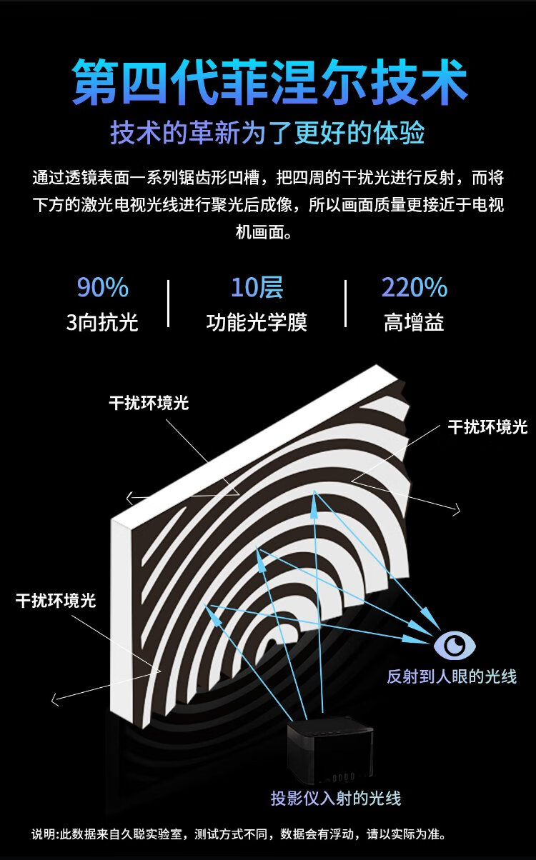 JCONG projection screen cloth Fresnel anti-light hard screen cloth home narrow-edge 4K high-definition frame curtain home theater ultra-short throw laser TV wall-mounted projector curtain 8K Fresnel medium telephoto soft screen 100 inches