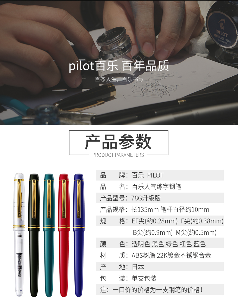 PILOT百乐【圣诞礼物】78g钢笔限定象牙白礼盒学生练字可换墨囊男女送礼墨水礼盒装 天鹅白【单只装】  F尖/约0.4-0.5mm日常书写用