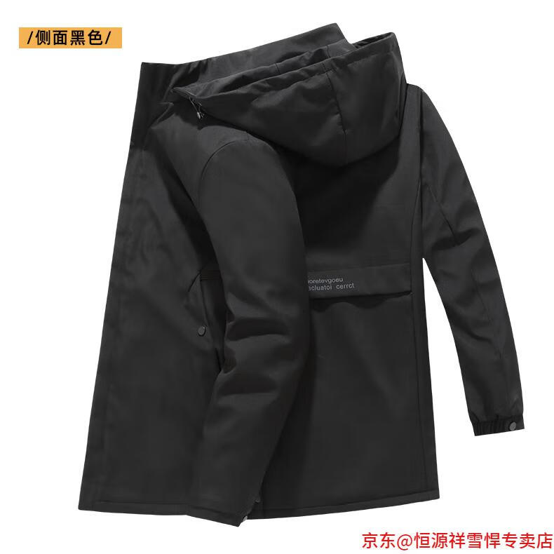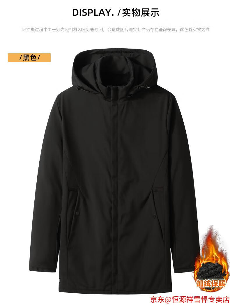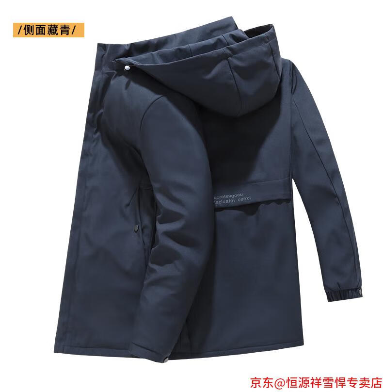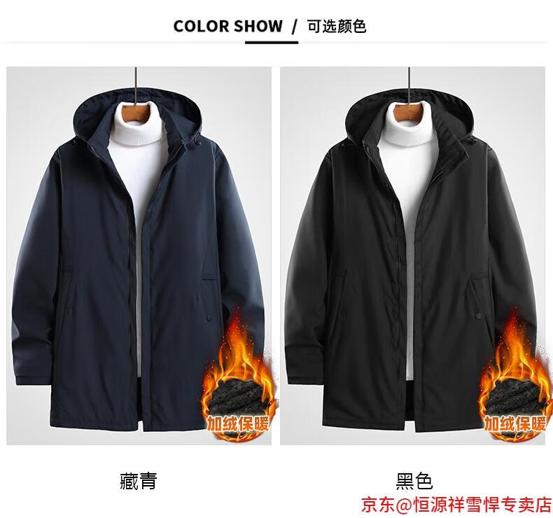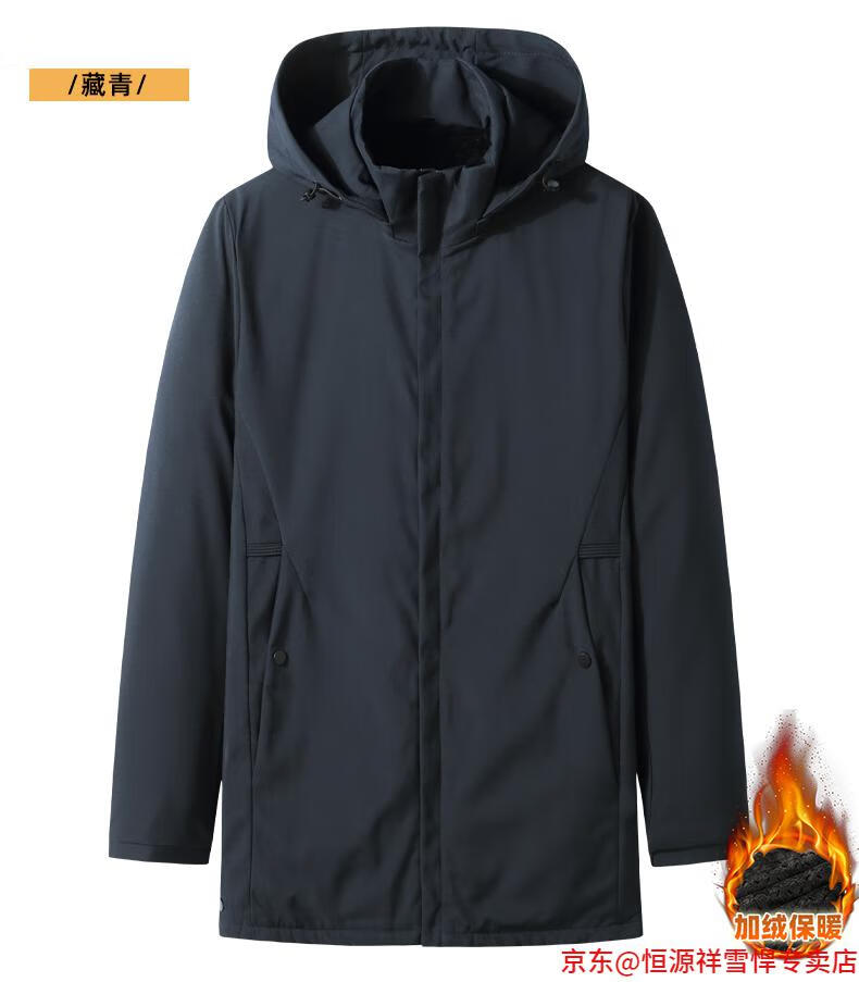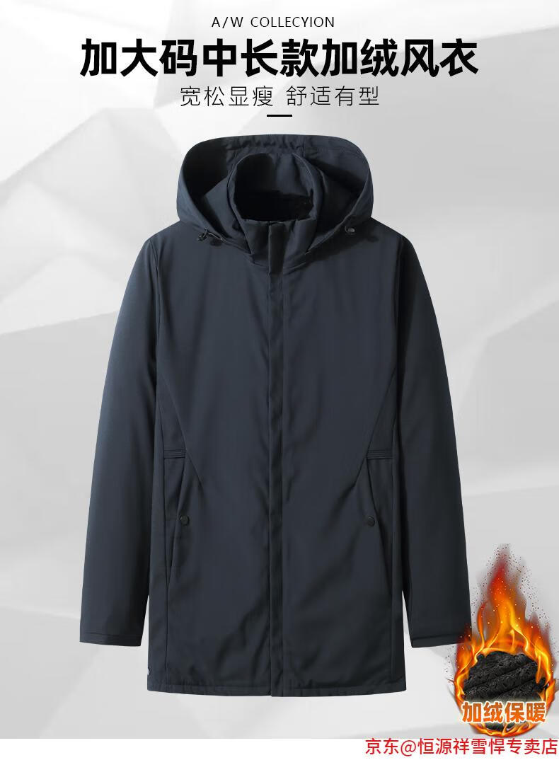 恒源祥中老年风衣男大码宽松休闲中长款加绒外套保暖棉大衣胖子肥佬棉服 藏青 L