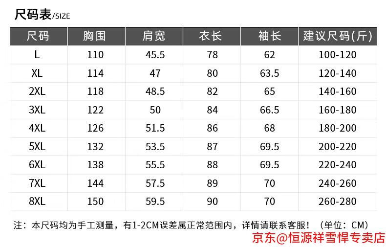 China (cm) 165 / 88-90 170 / 96-98 175 / 108-110 180 / 118-122 185 / 126-130