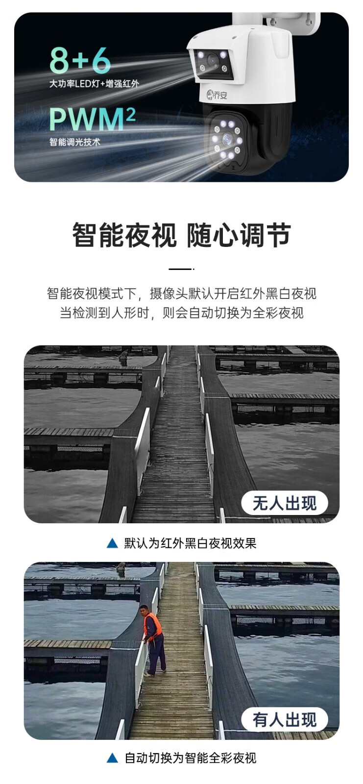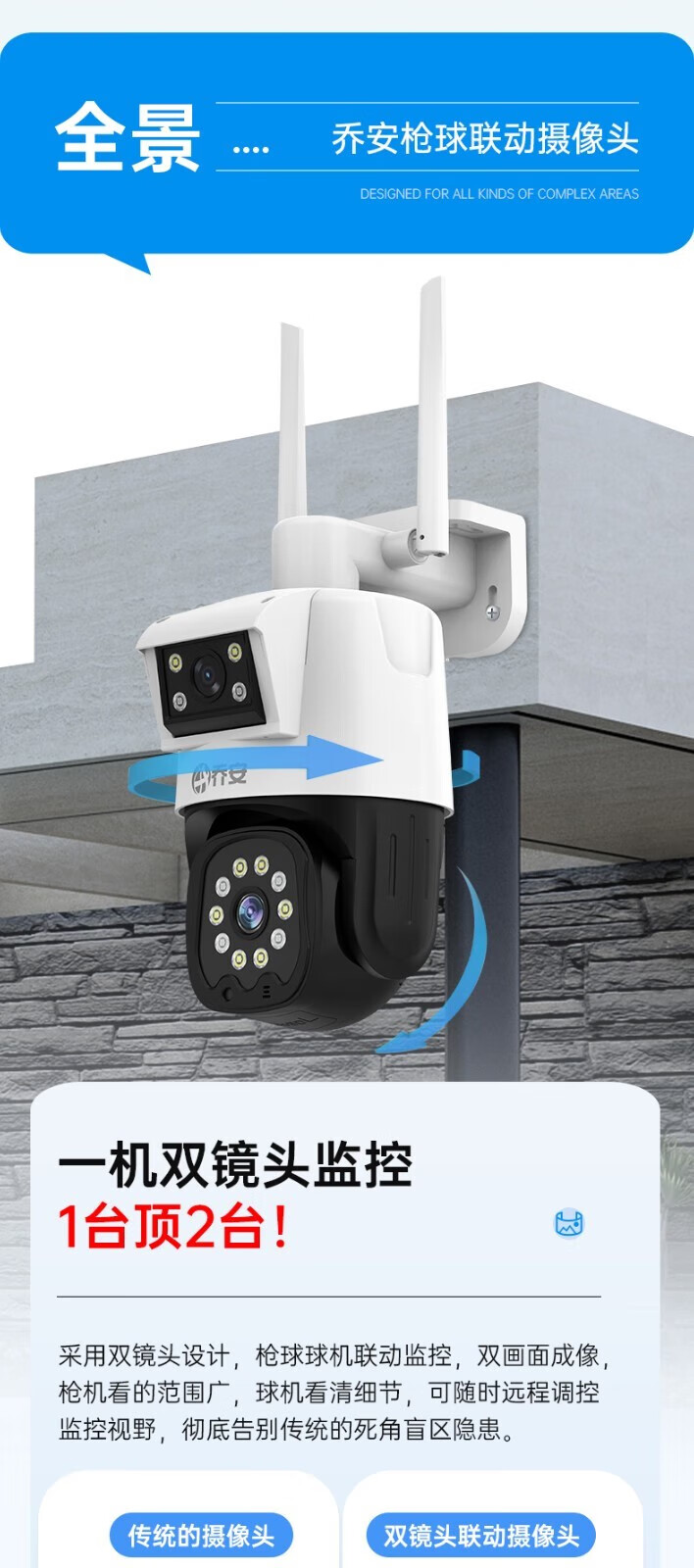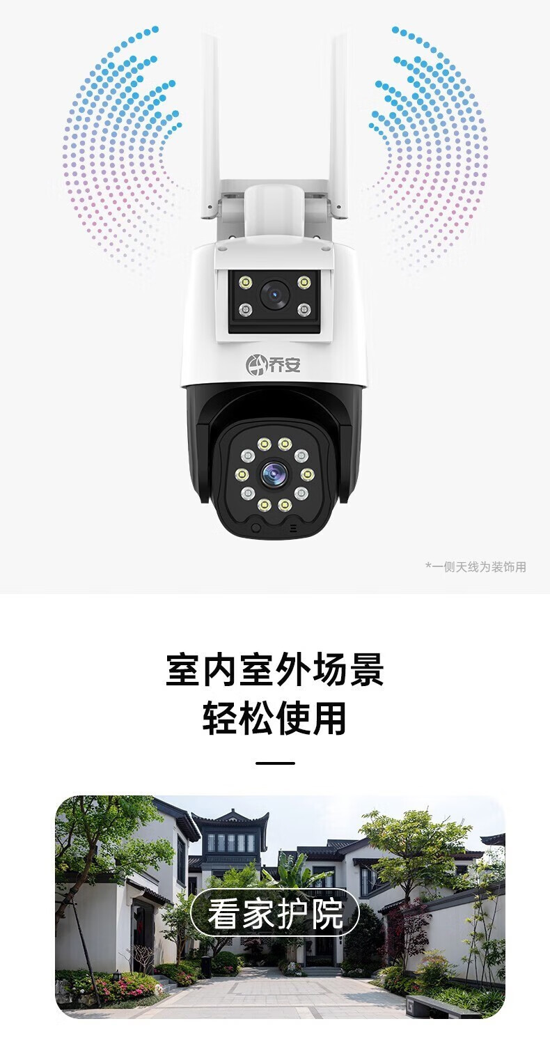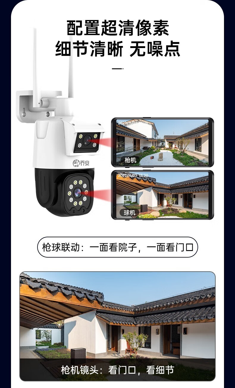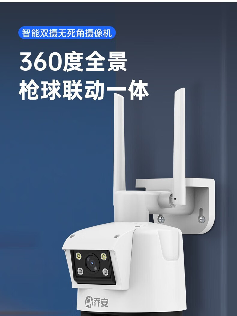 乔安高清摄像头室外防水监控器家用360度无死角带夜视全景旋转球机户外4g无线球机网络wifi手机远程 【推荐-旗舰WIFI双摄版】双镜头+双画面 64G