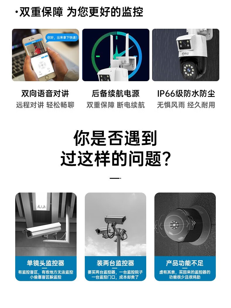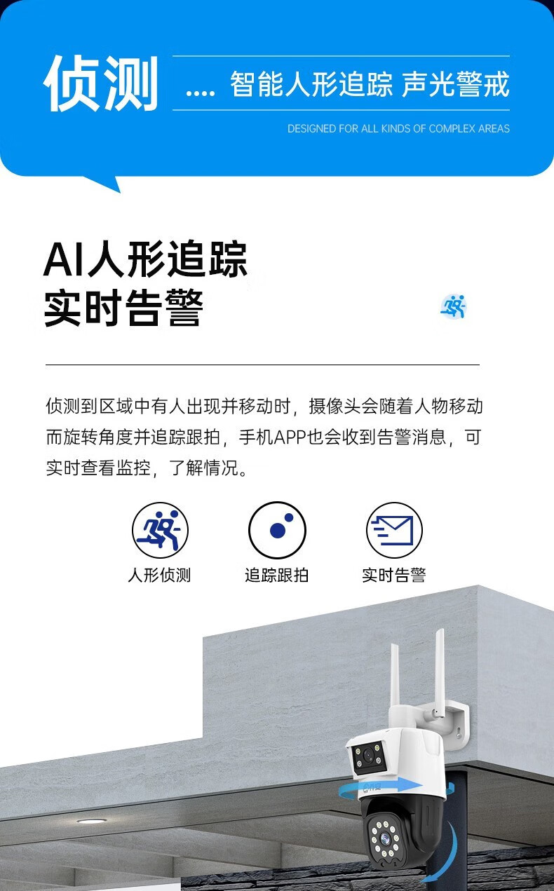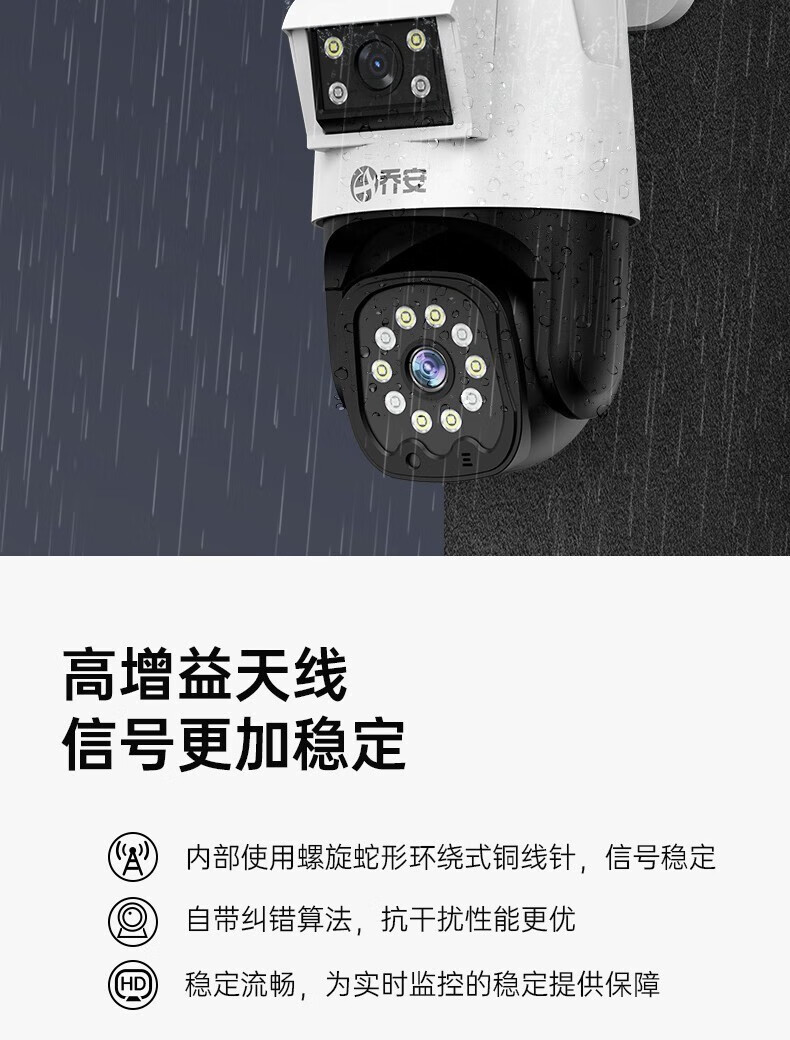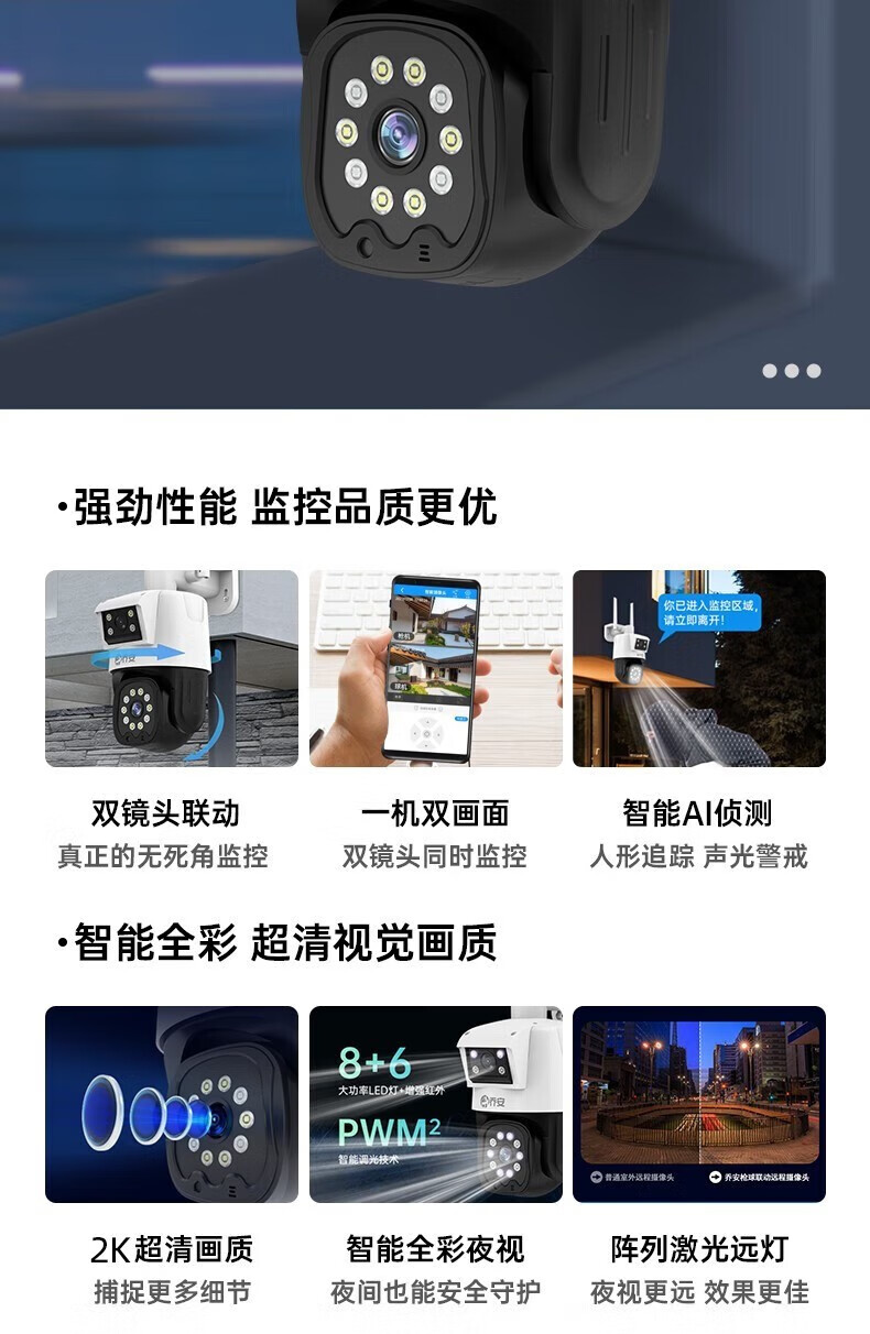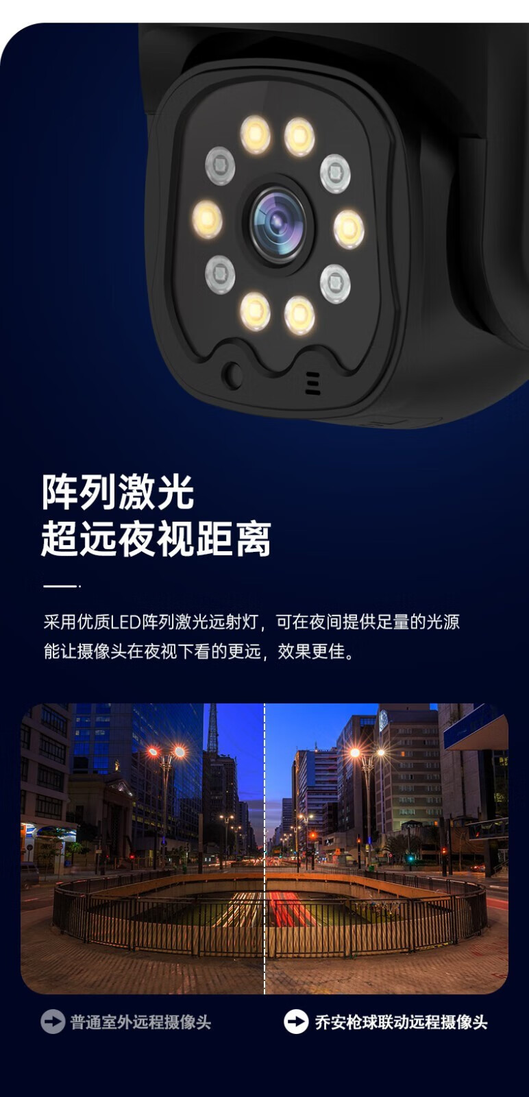 乔安高清摄像头室外防水监控器家用360度无死角带夜视全景旋转球机户外4g无线球机网络wifi手机远程 【推荐-旗舰WIFI双摄版】双镜头+双画面 64G