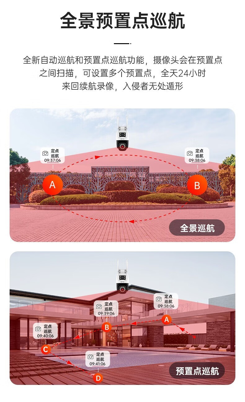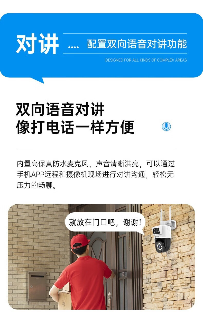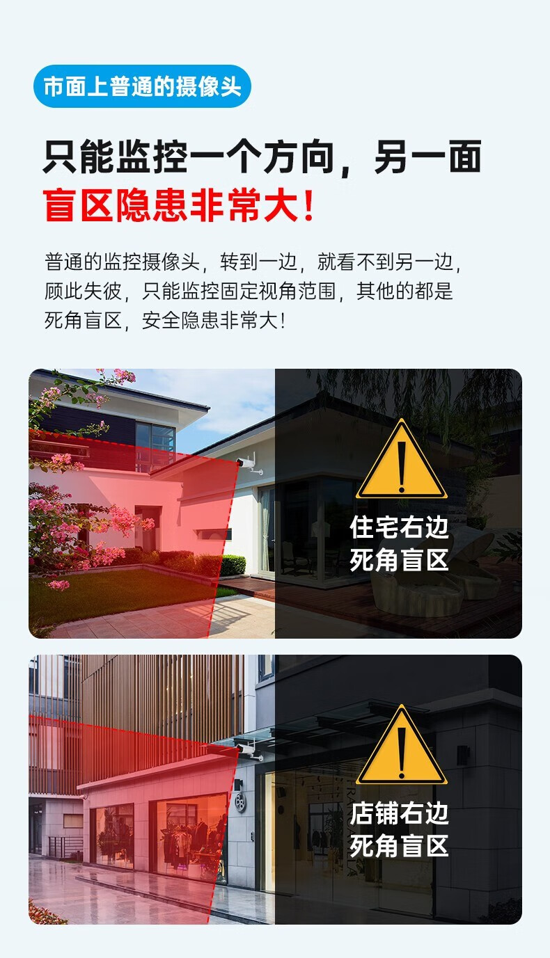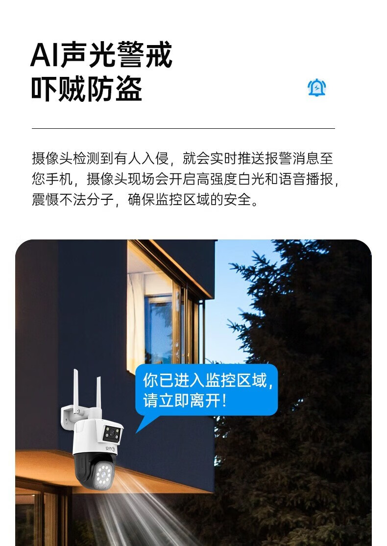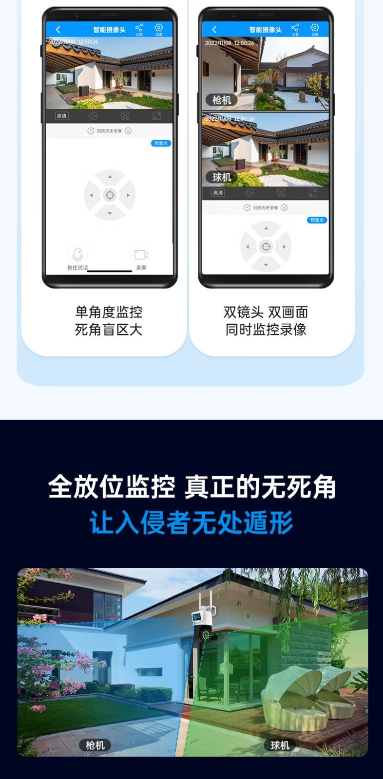 乔安高清摄像头室外防水监控器家用360度无死角带夜视全景旋转球机户外4g无线球机网络wifi手机远程 【推荐-旗舰WIFI双摄版】双镜头+双画面 64G