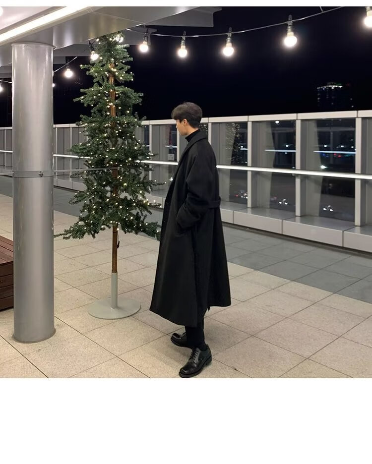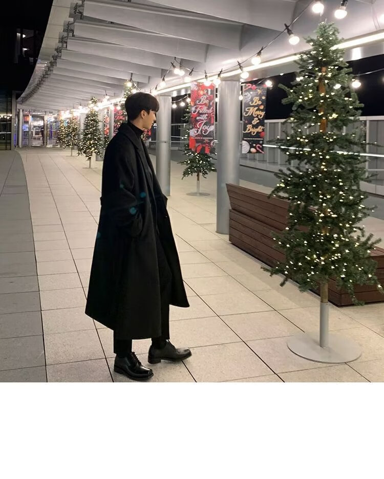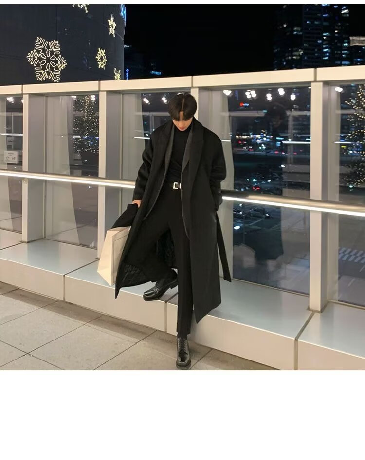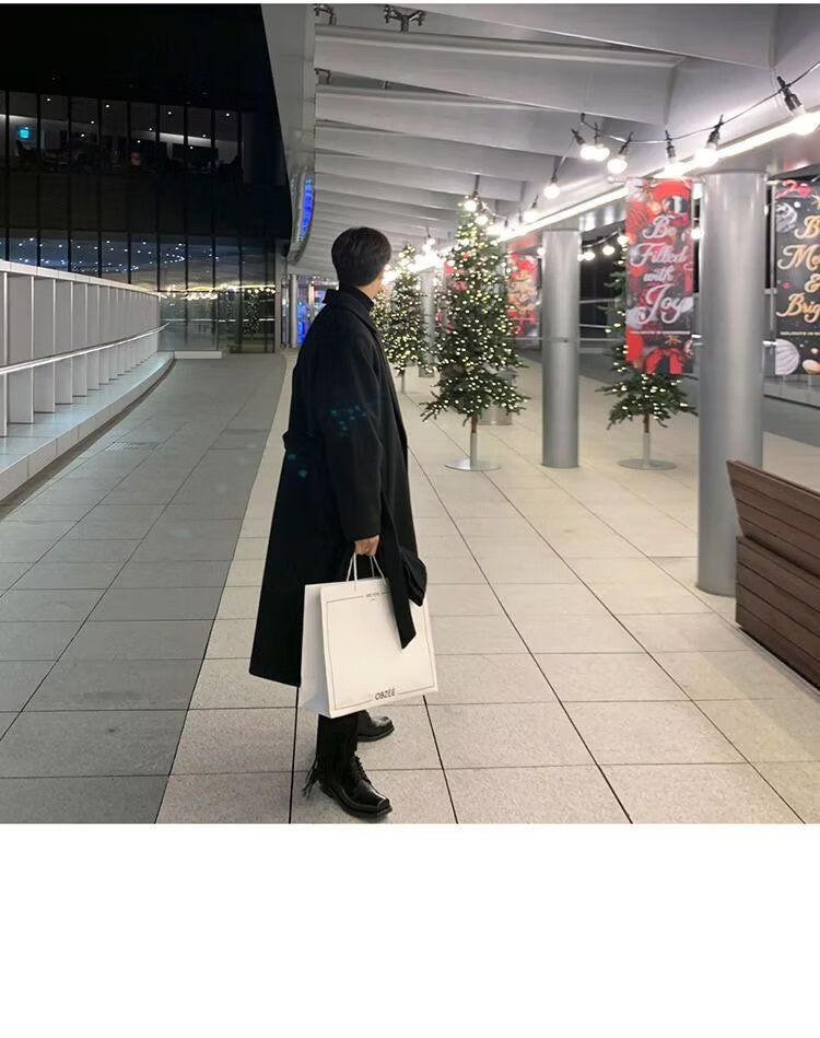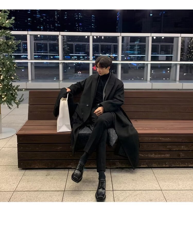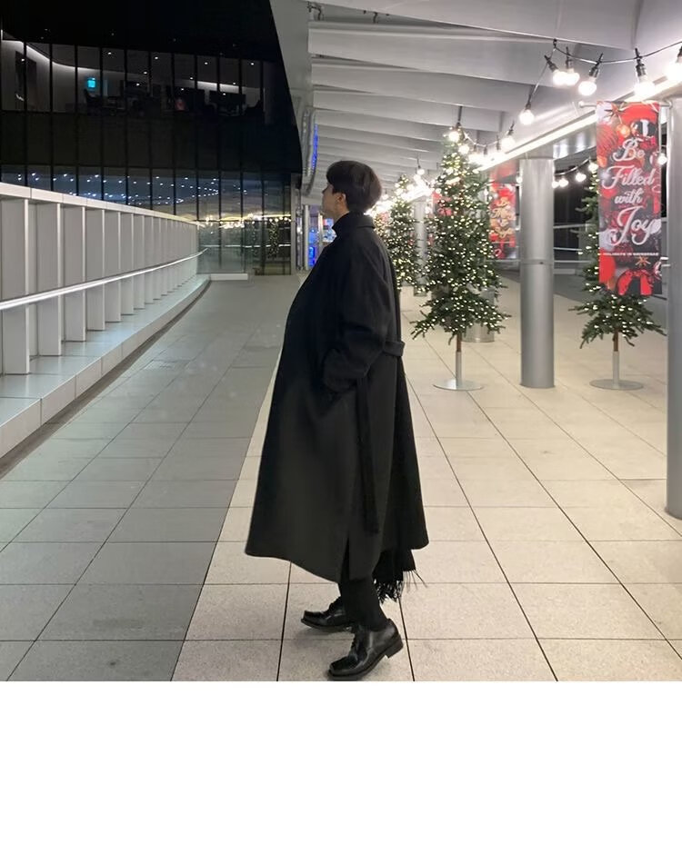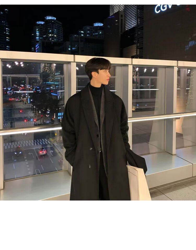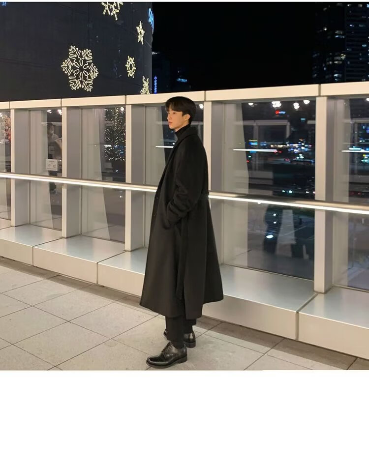 潮西登风衣男中长款春秋装新款双排扣长款过膝外套潮流宽松大码大衣男 黑色 L