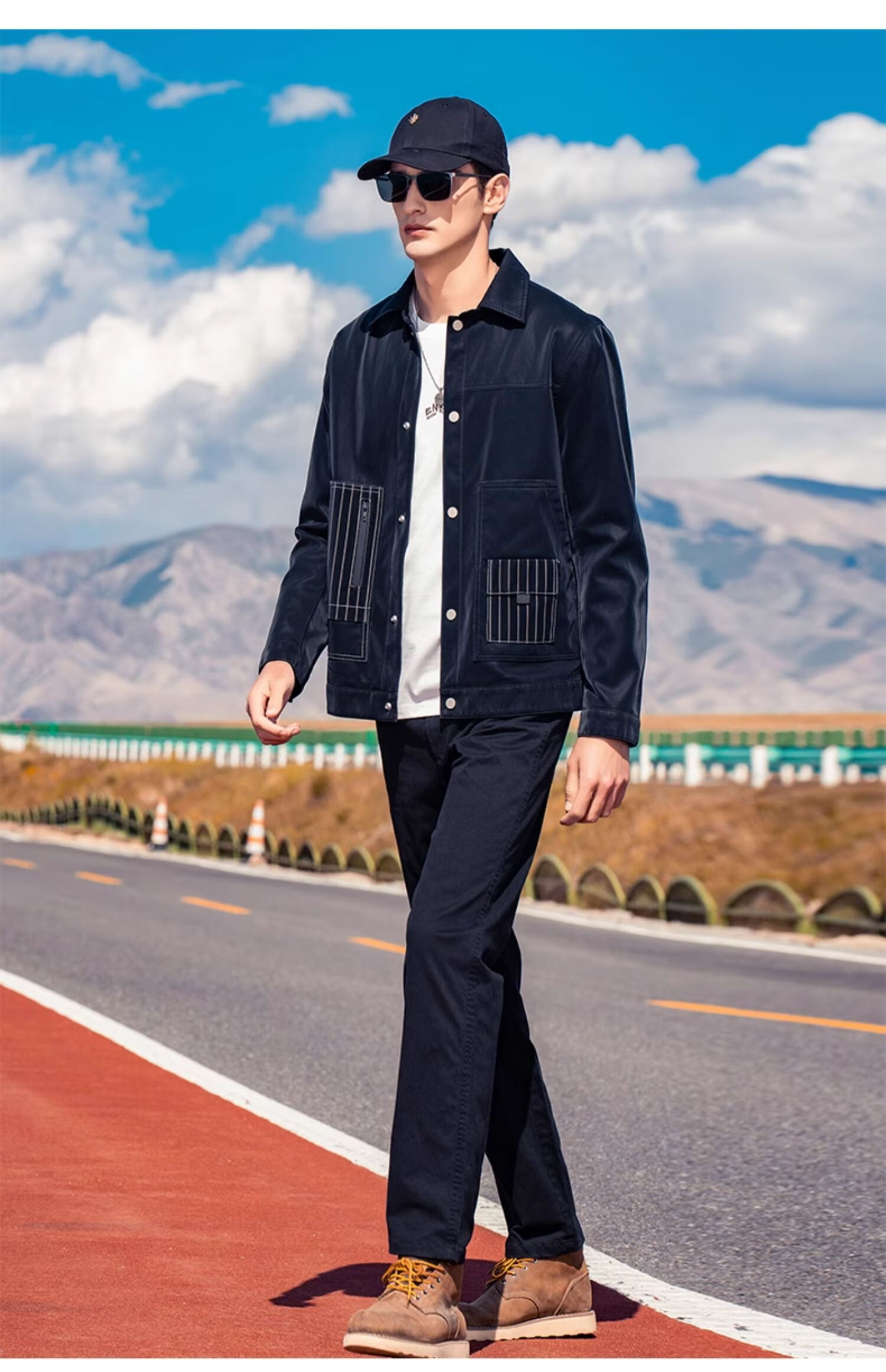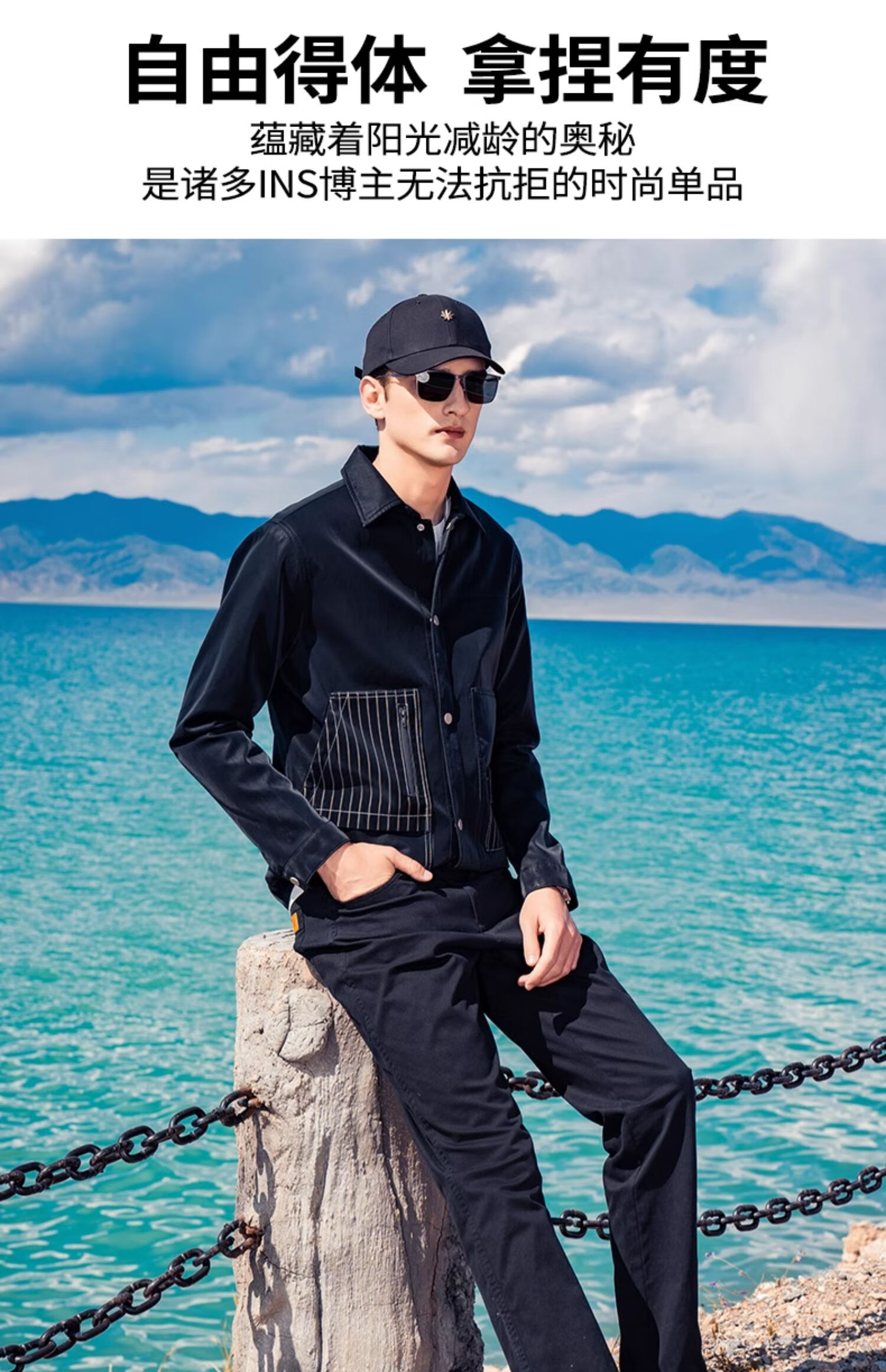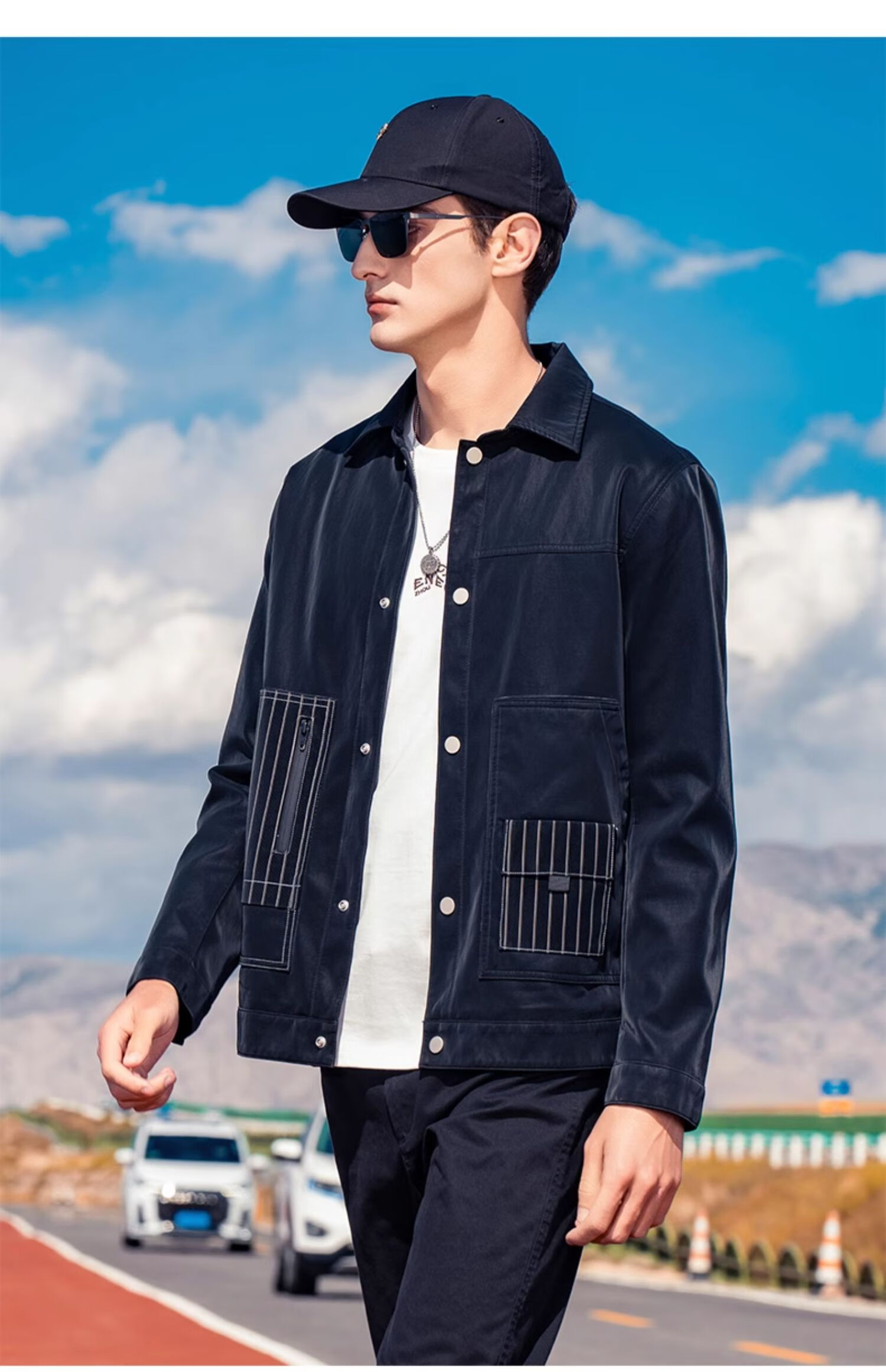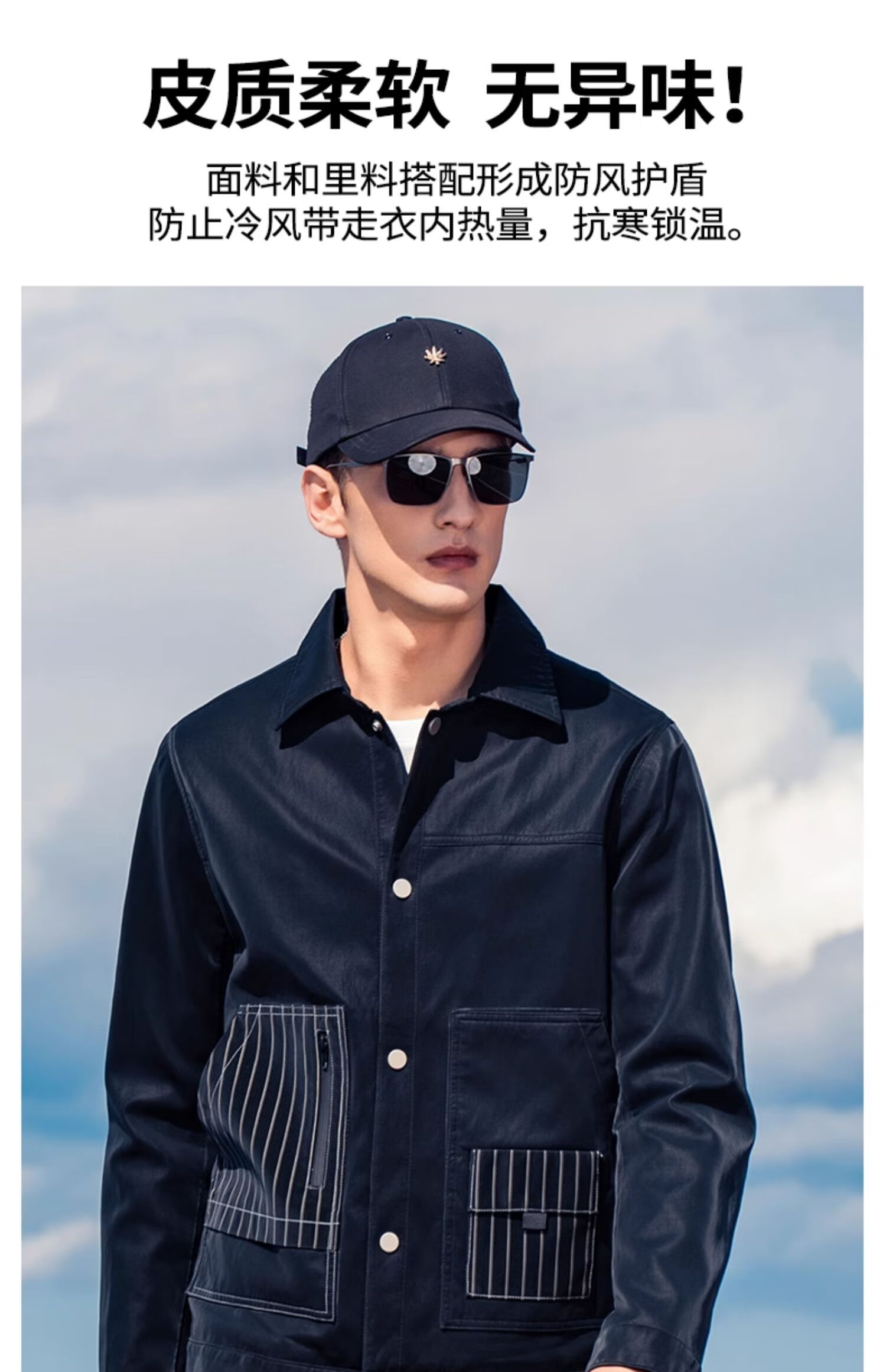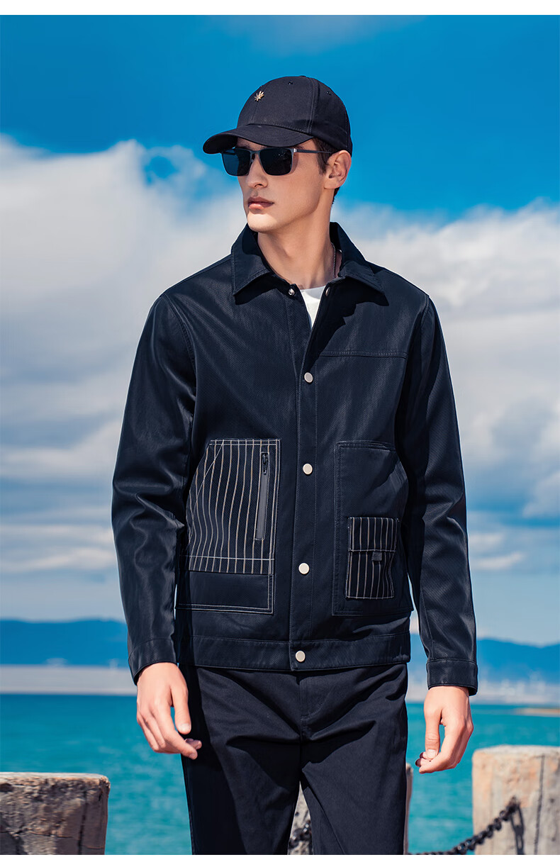 英爵伦(Enjeolon)英爵伦 秋季男士帅气PU皮衣 复古休闲翻领机车皮夹克条纹外套 黑色 170/100A(M)