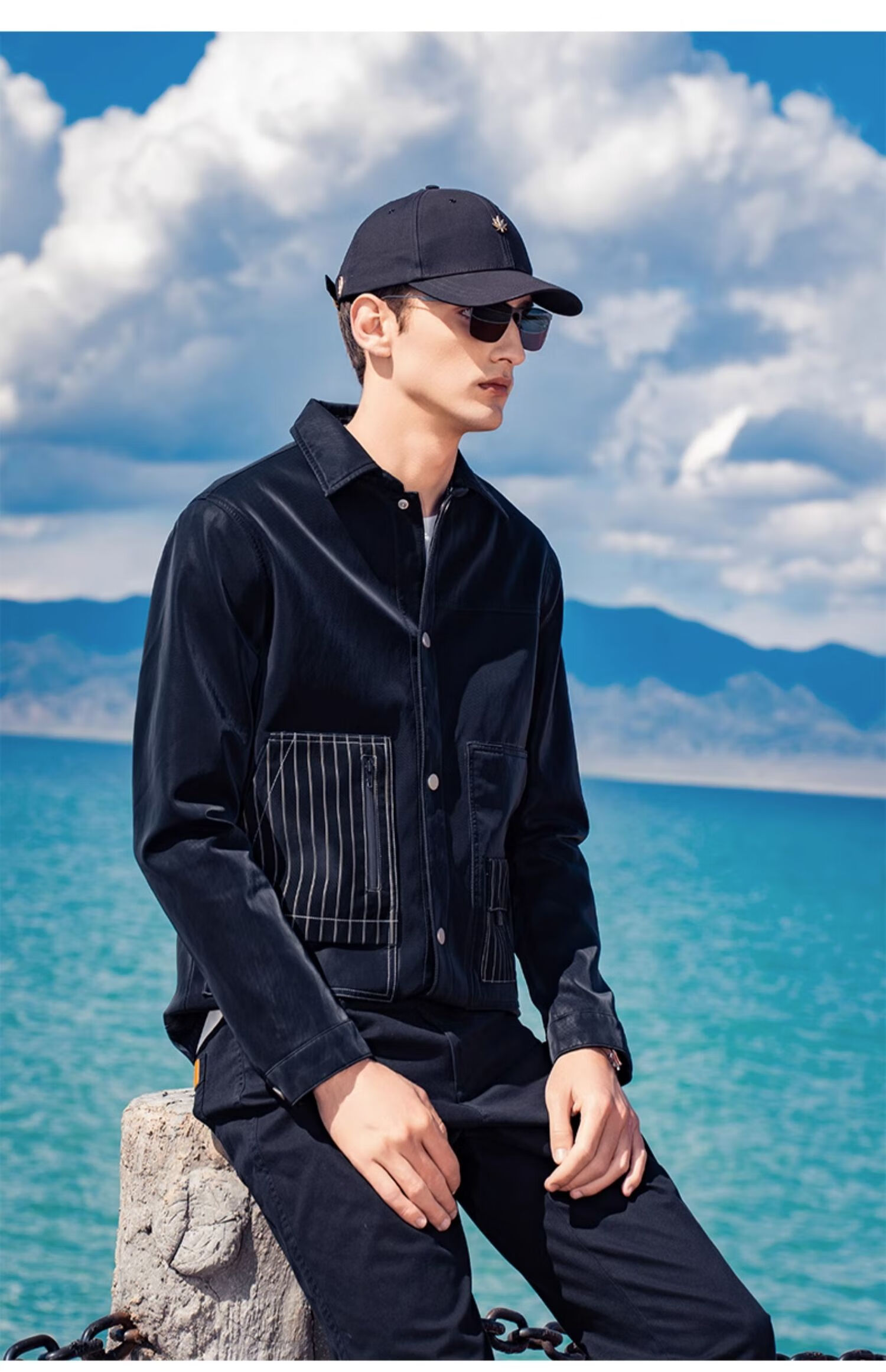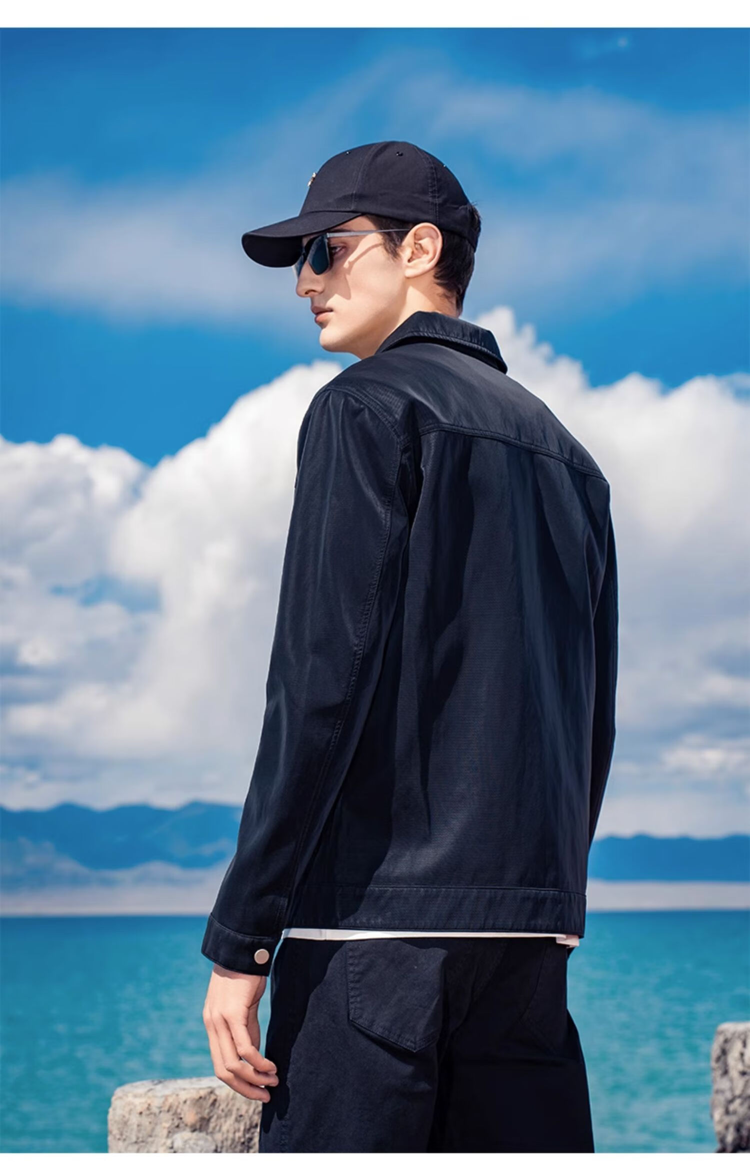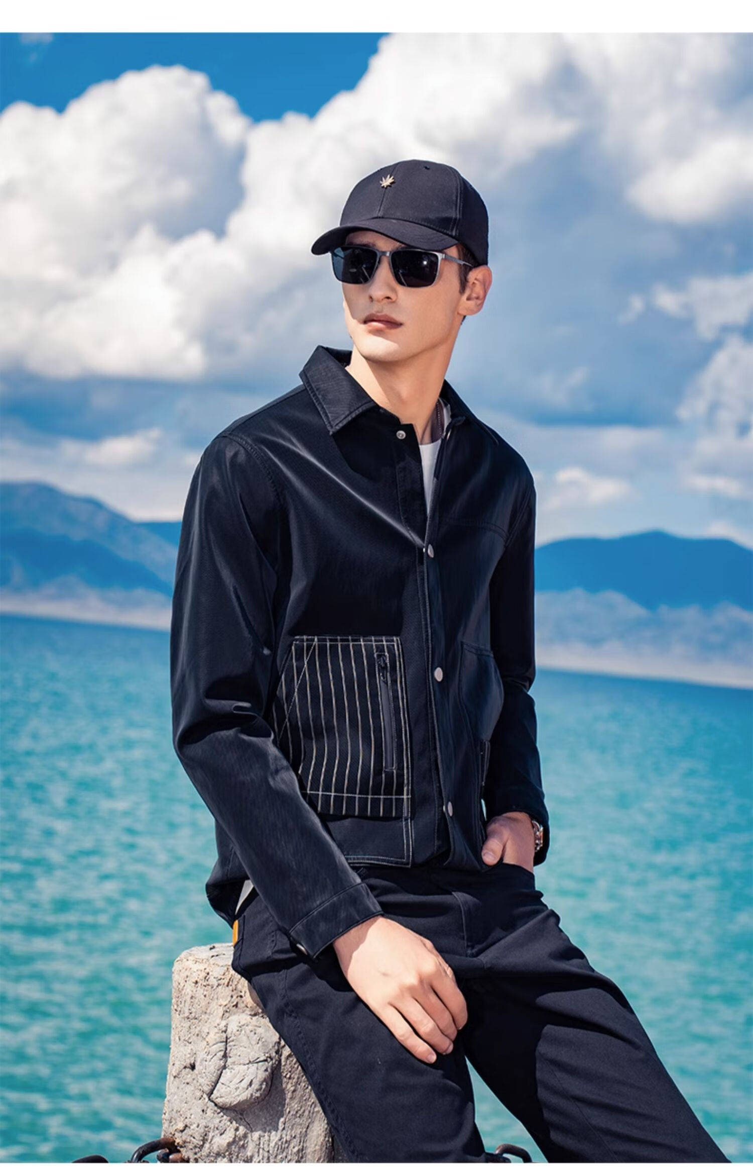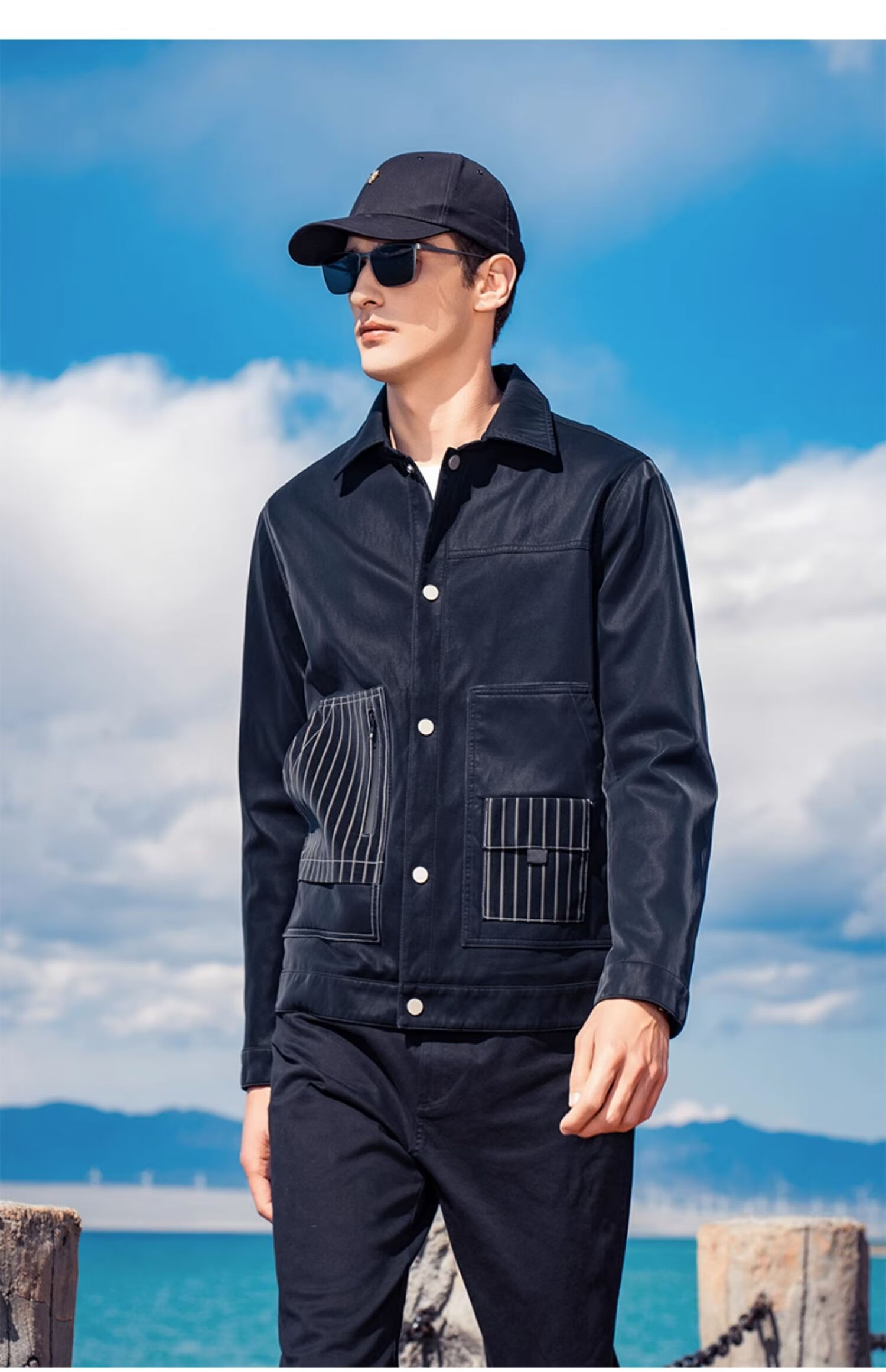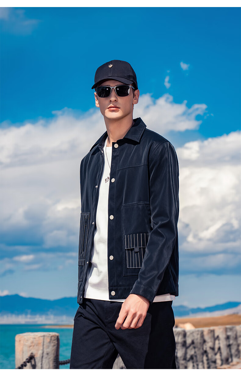 英爵伦(Enjeolon)英爵伦 秋季男士帅气PU皮衣 复古休闲翻领机车皮夹克条纹外套 黑色 170/100A(M)