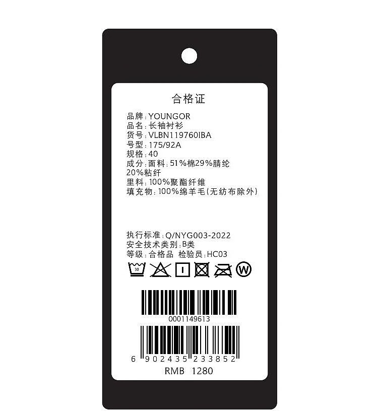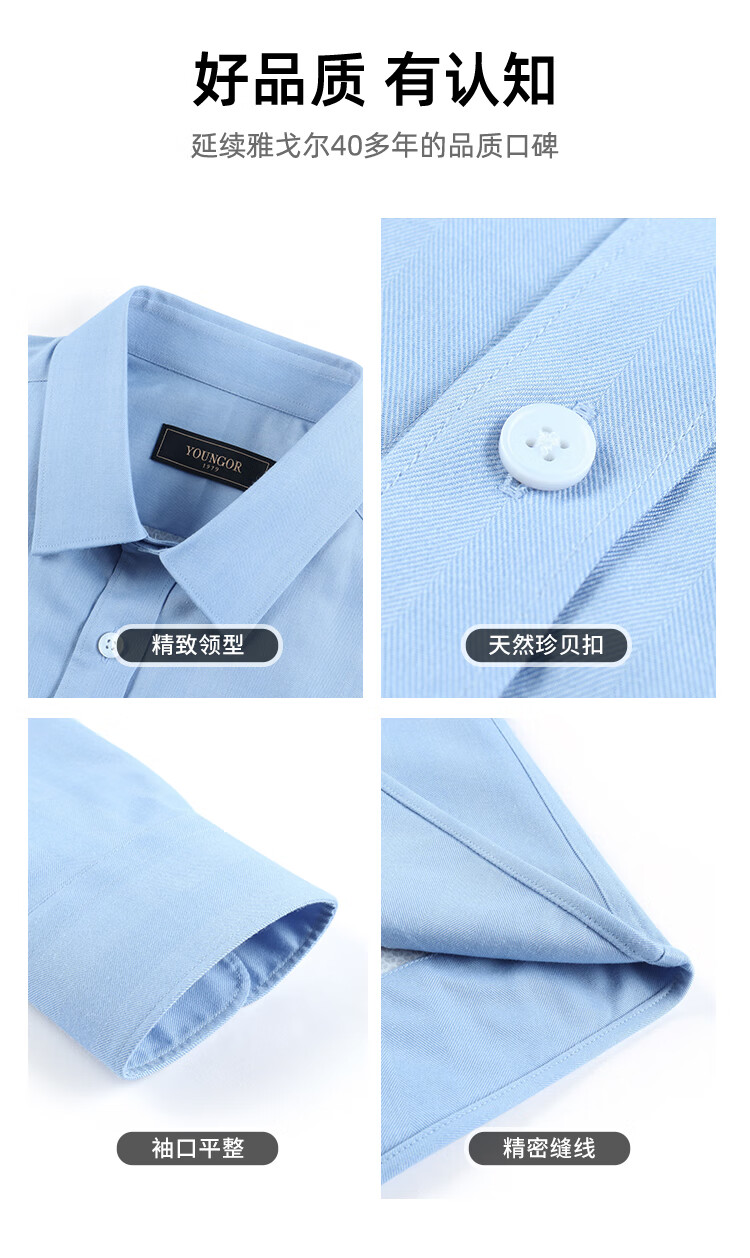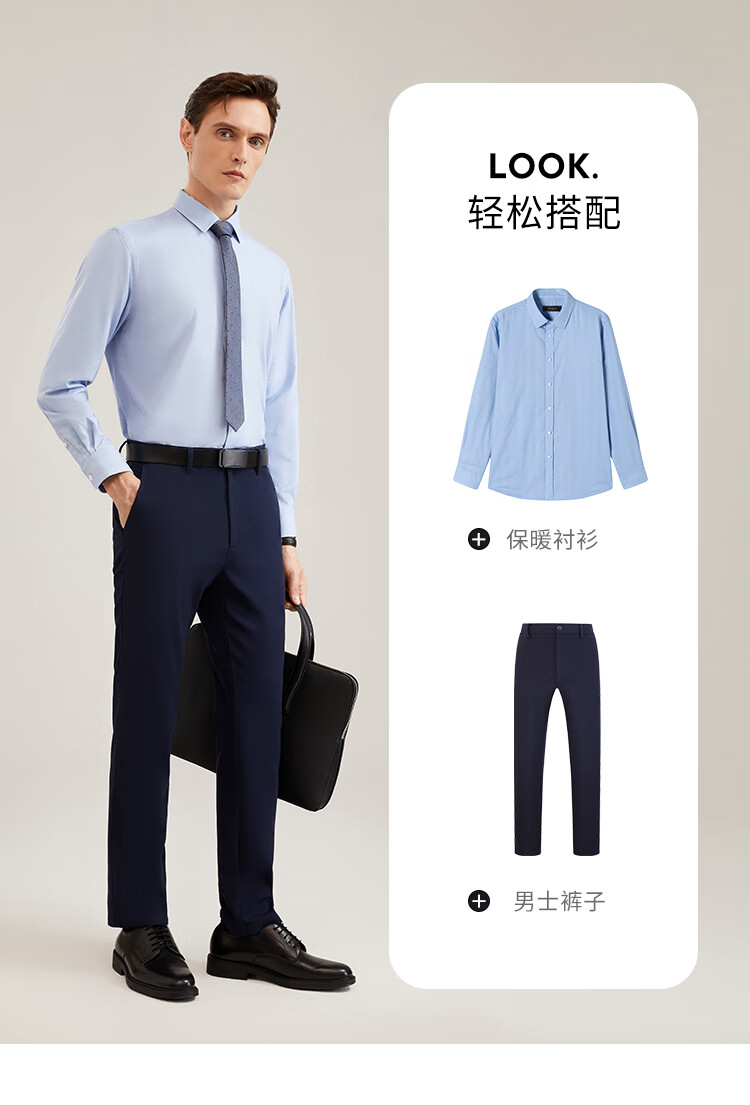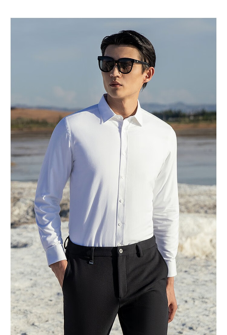 YOUNGOR long-sleeved shirt men's plain thermal shirt cotton graphene thermal liner business thermal VLBN119760BBA white 42