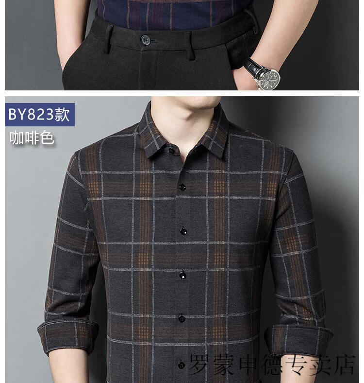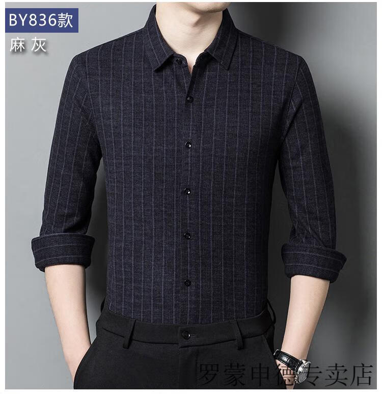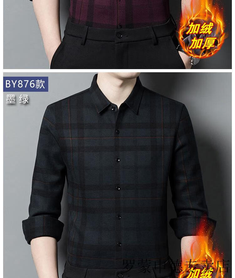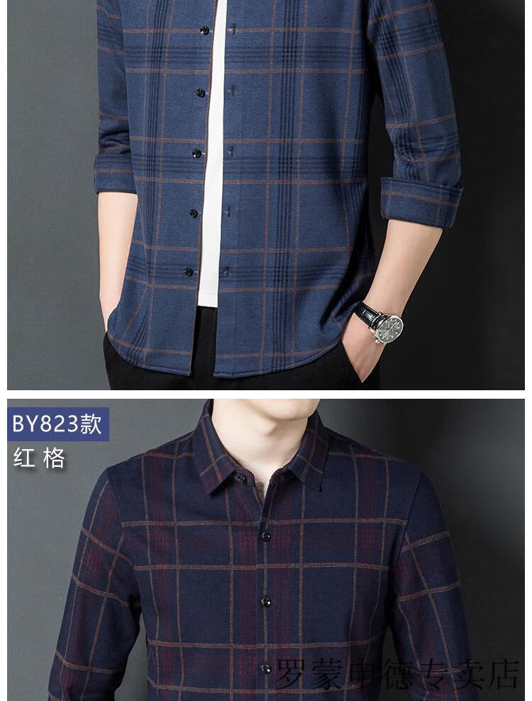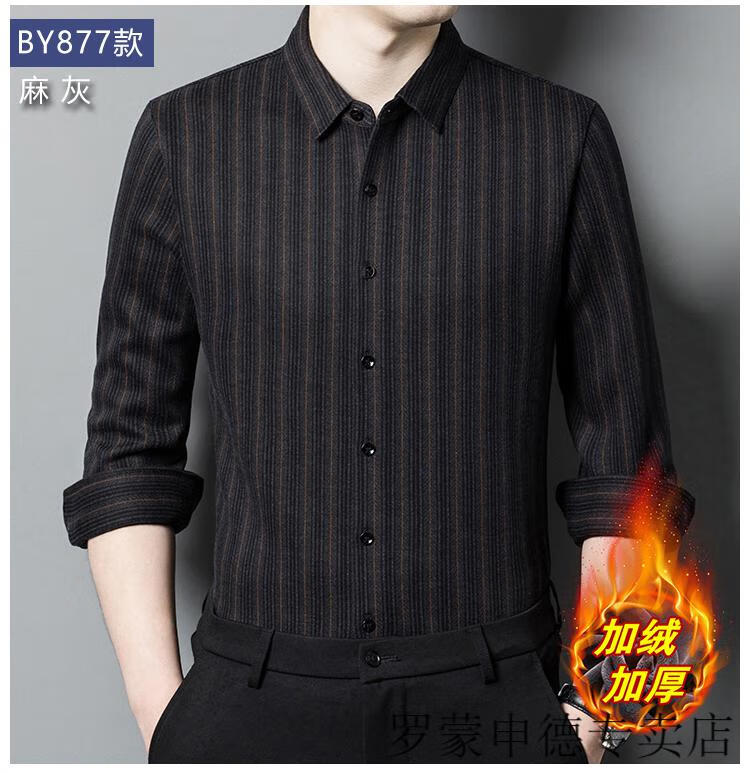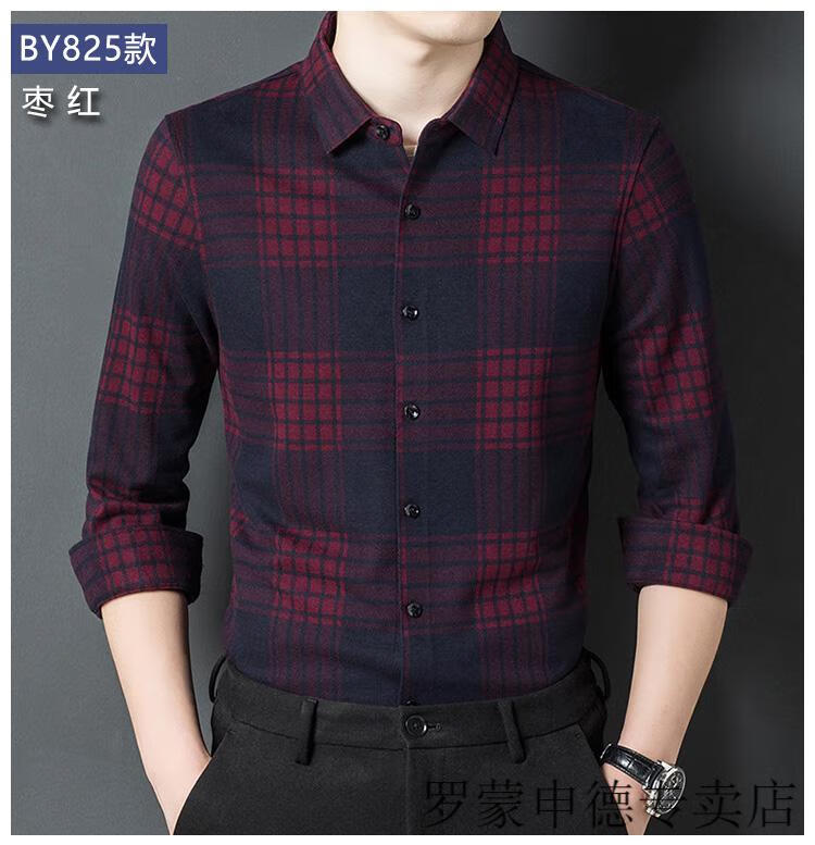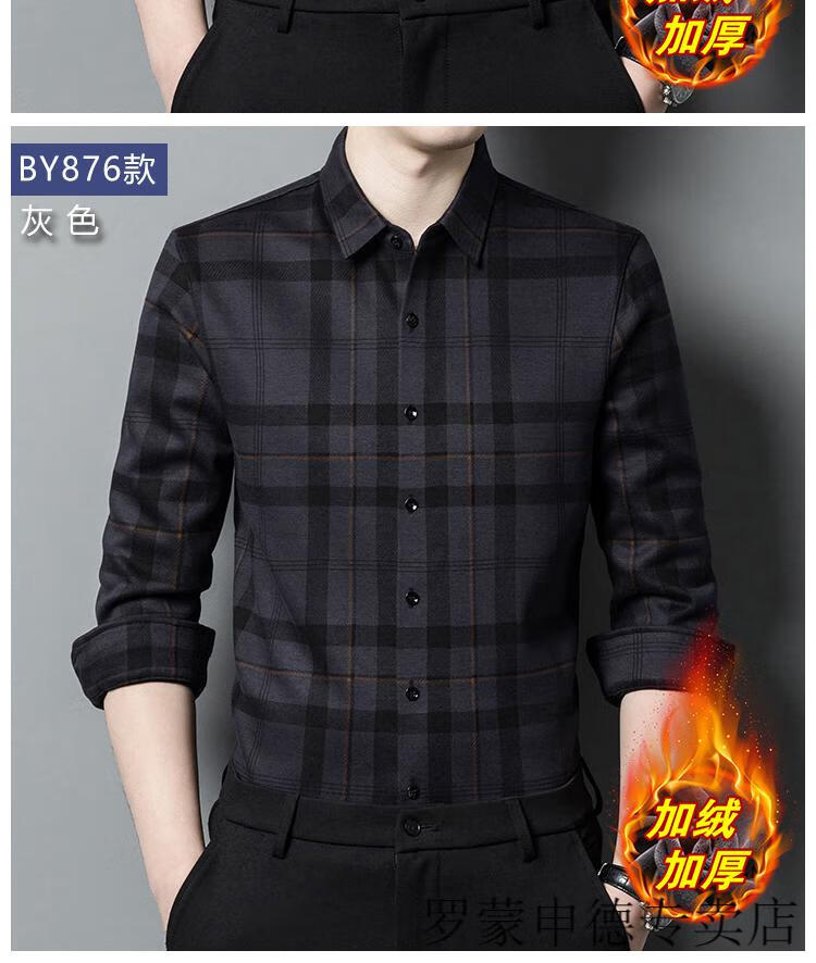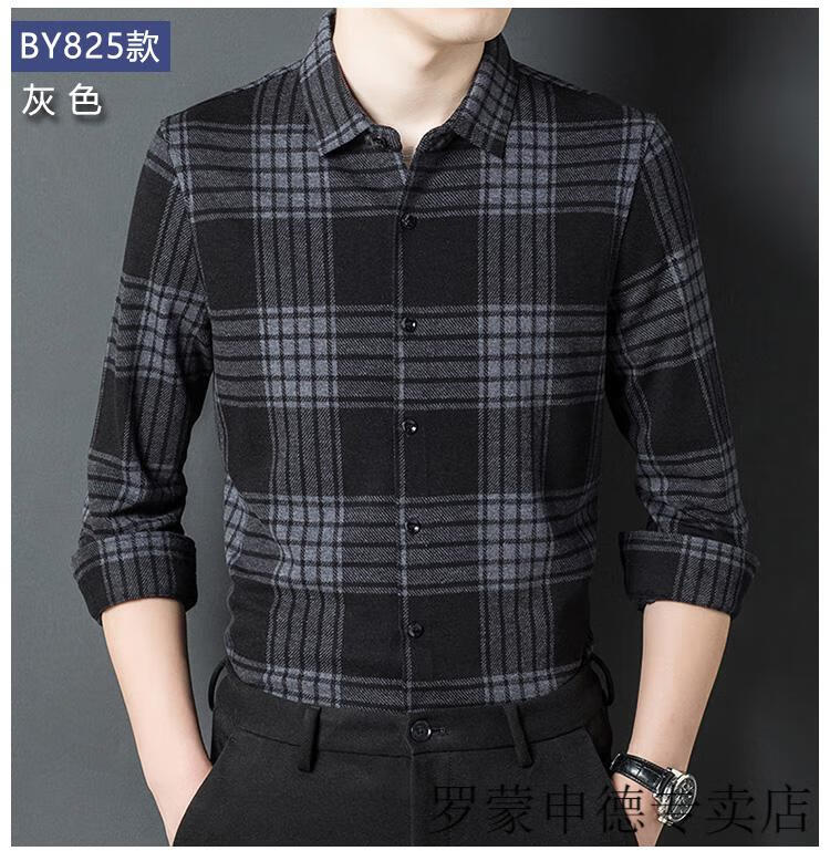 罗蒙(ROMON)加厚款羊绒衬衫长袖男中年爸爸装秋冬季加绒保暖衬衣格子 BY872款麻灰【加绒加厚】 175/XL