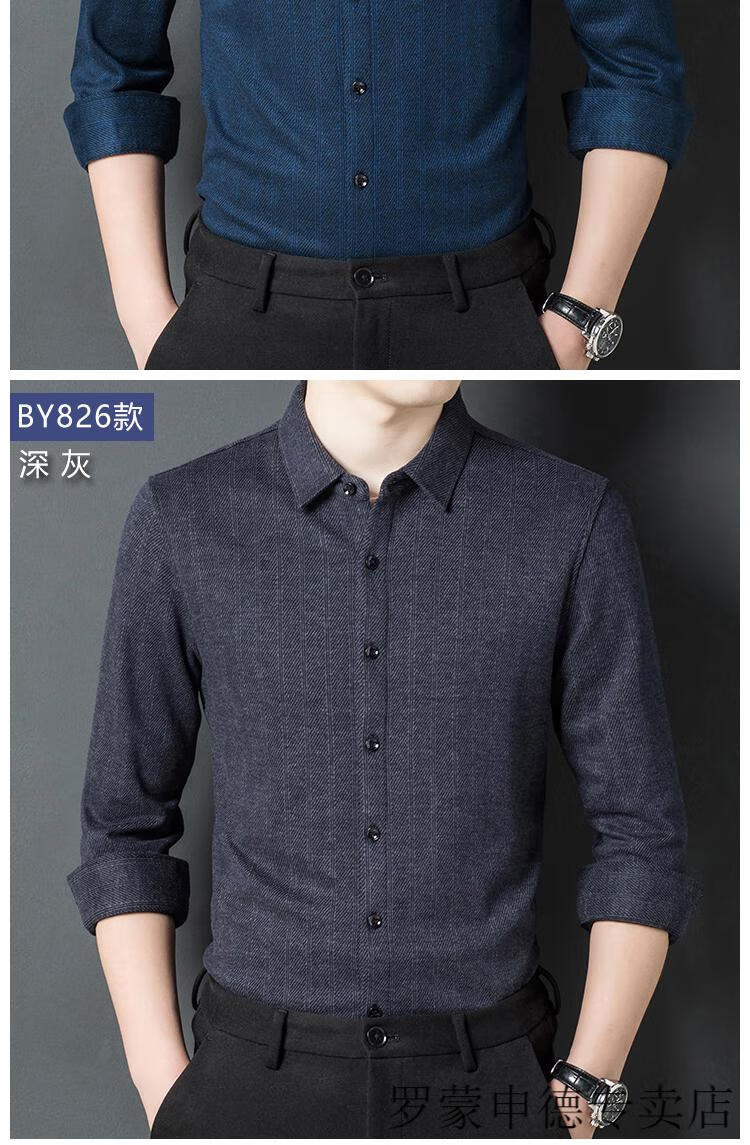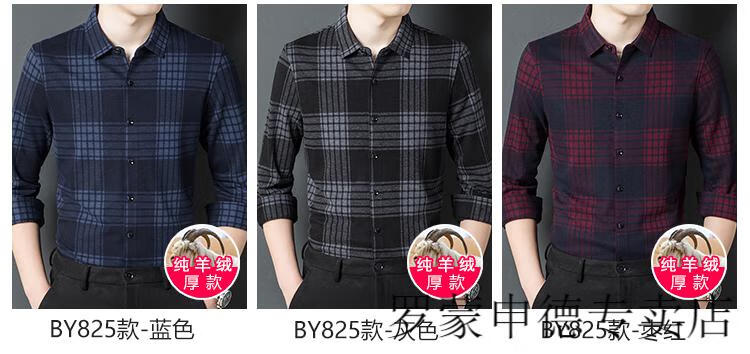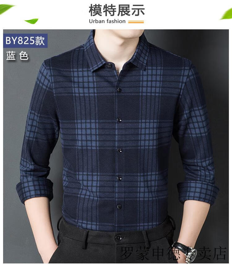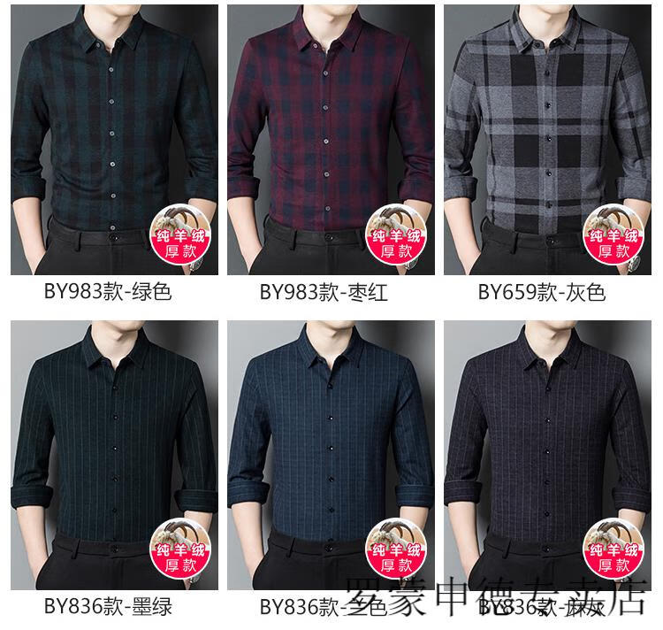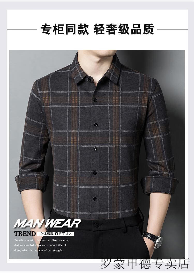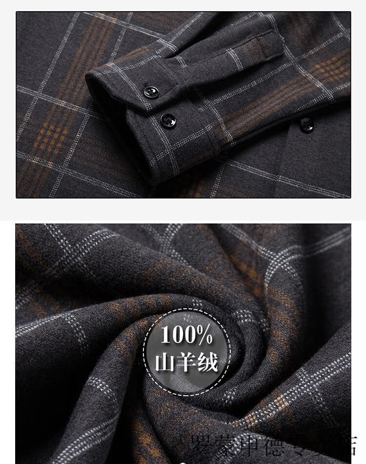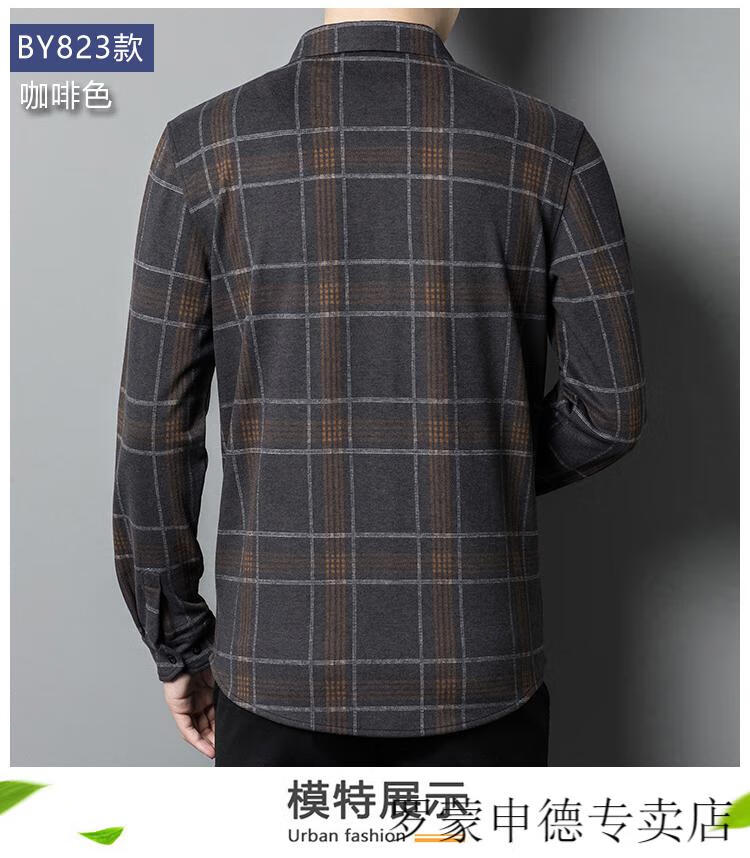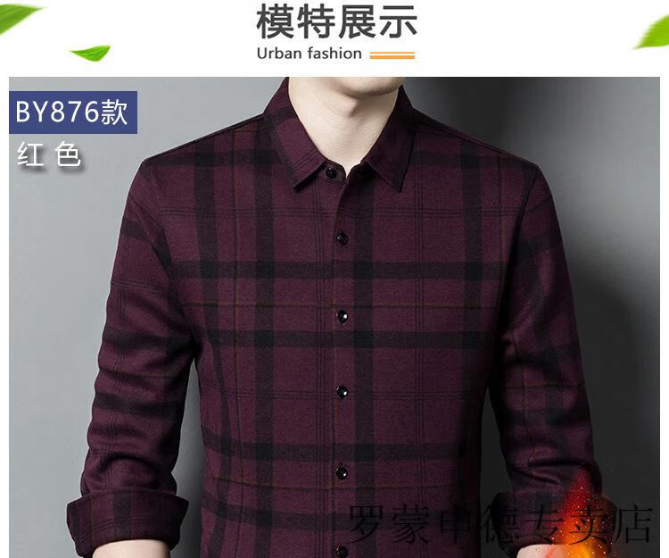 罗蒙(ROMON)加厚款羊绒衬衫长袖男中年爸爸装秋冬季加绒保暖衬衣格子 BY872款麻灰【加绒加厚】 175/XL