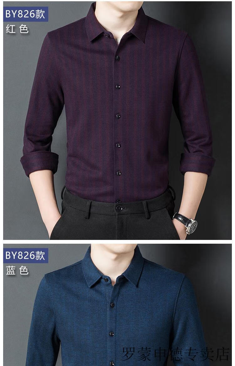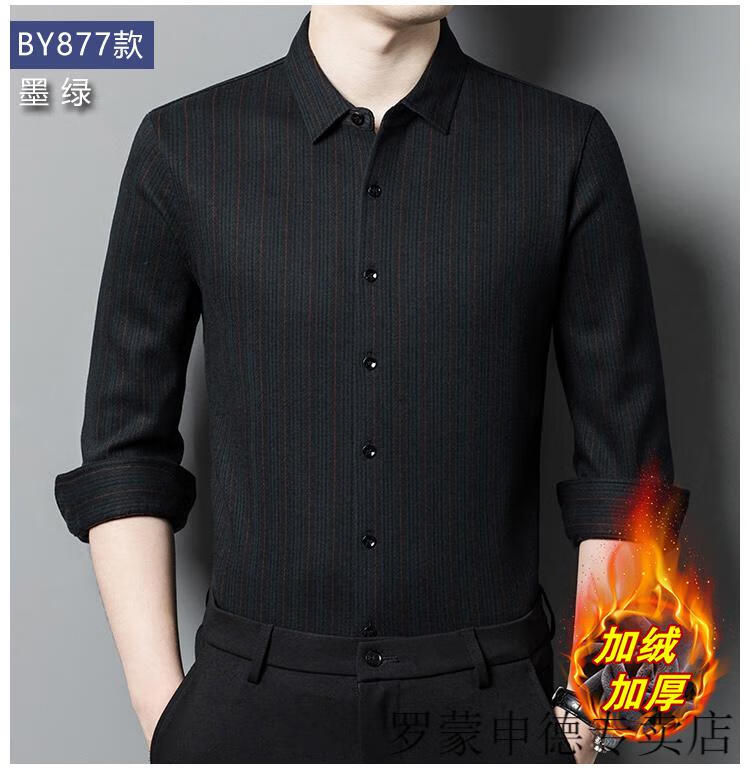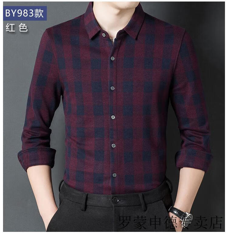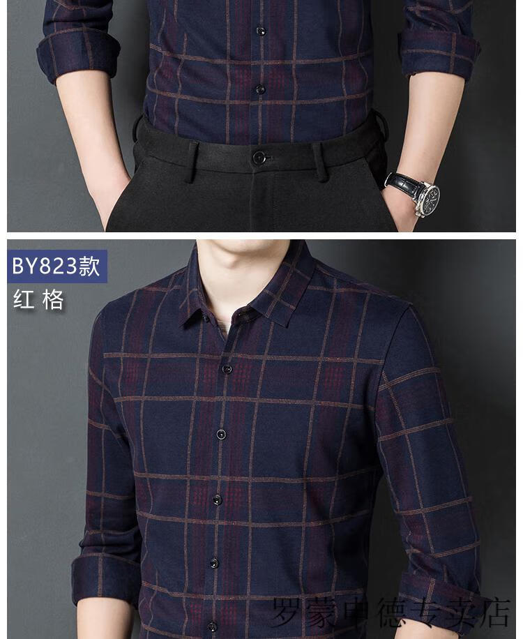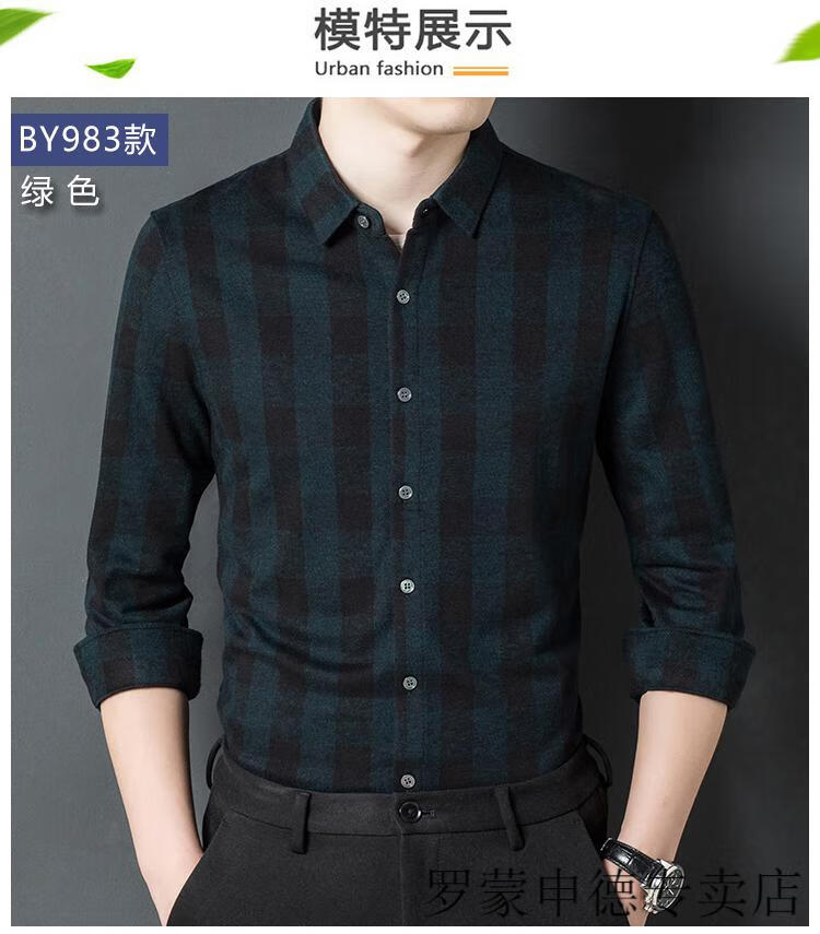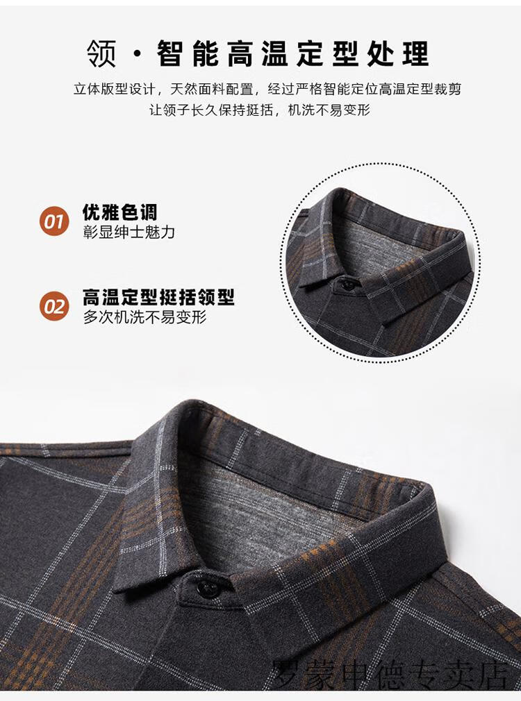 罗蒙(ROMON)加厚款羊绒衬衫长袖男中年爸爸装秋冬季加绒保暖衬衣格子 BY872款麻灰【加绒加厚】 175/XL