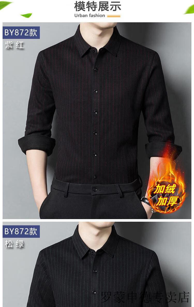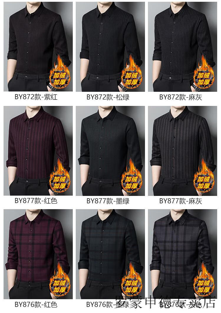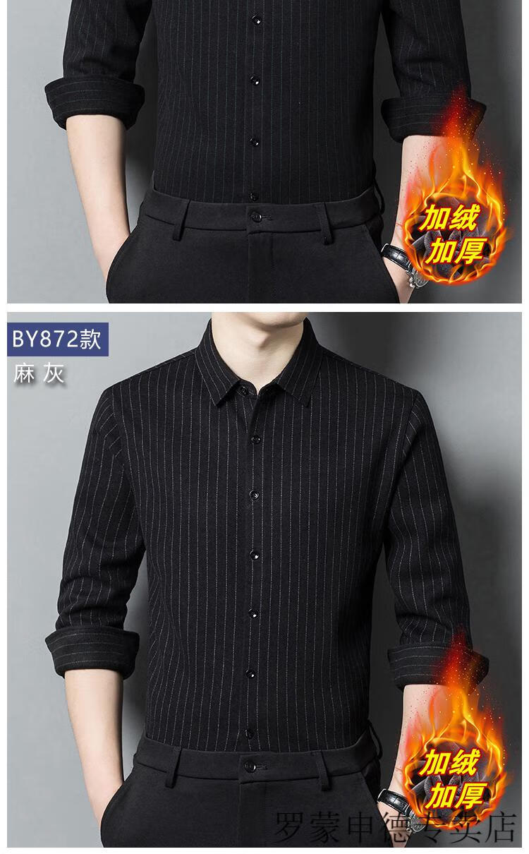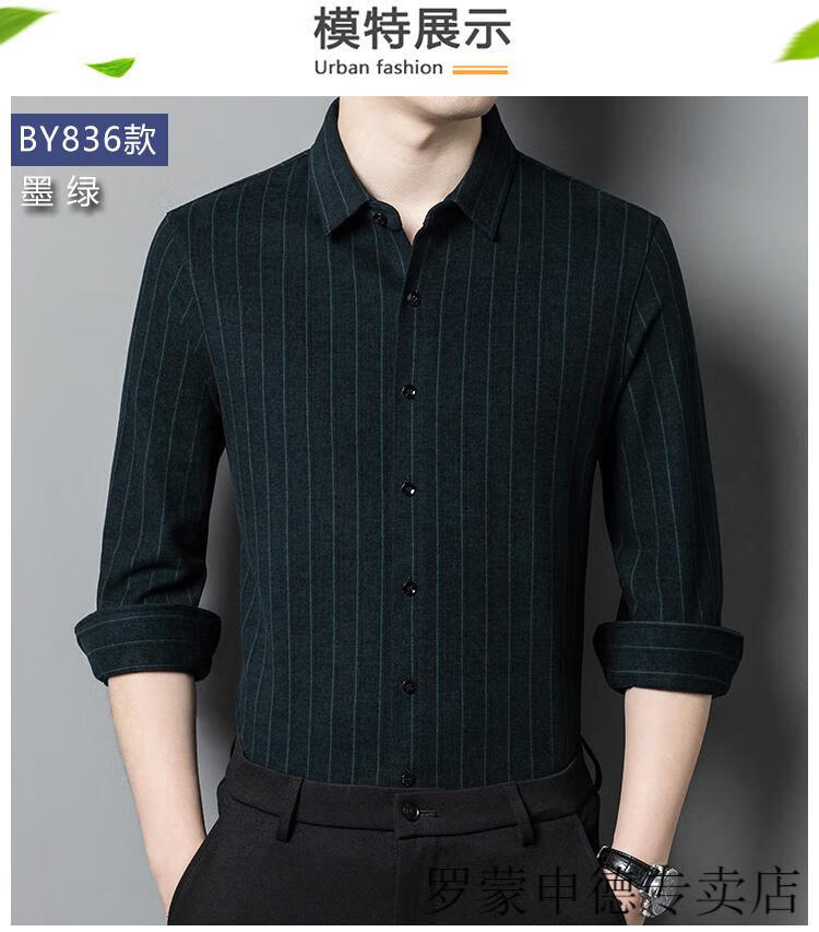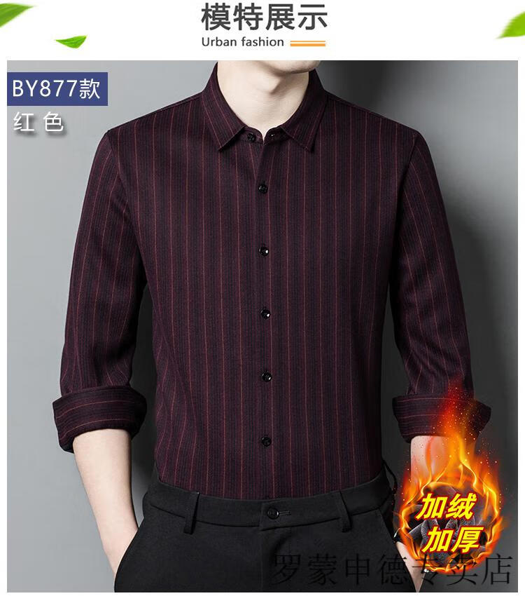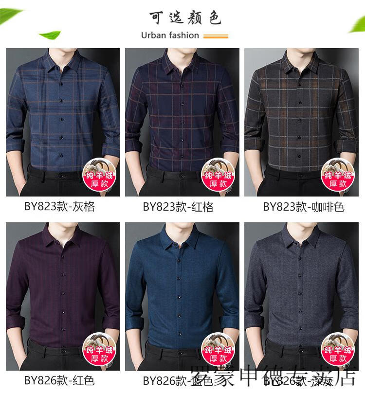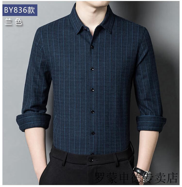 罗蒙(ROMON)加厚款羊绒衬衫长袖男中年爸爸装秋冬季加绒保暖衬衣格子 BY872款麻灰【加绒加厚】 175/XL