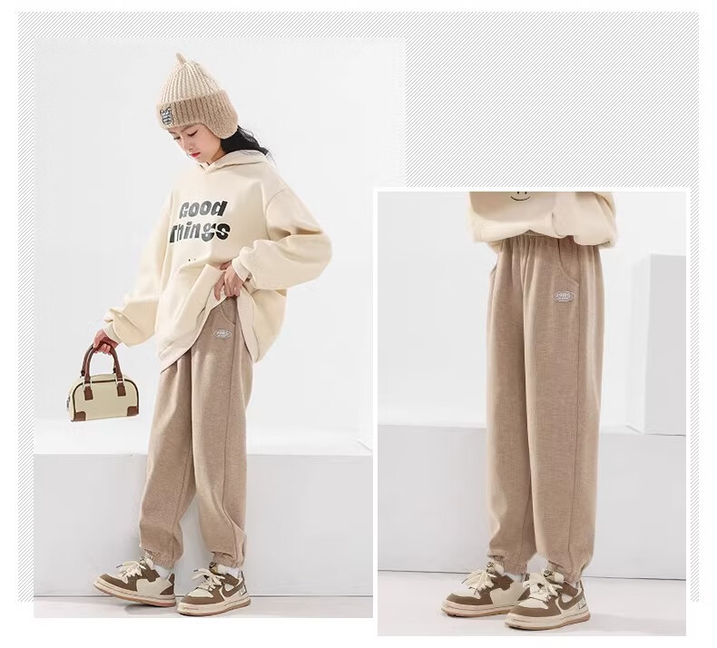 小猪彼特女童春秋套装儿童2025新款新年衣服中大童洋气运动服女孩时髦12岁 4827杏色+16317浅咖色【春秋款】 160 cm