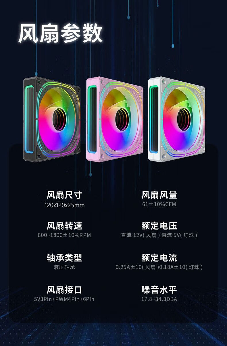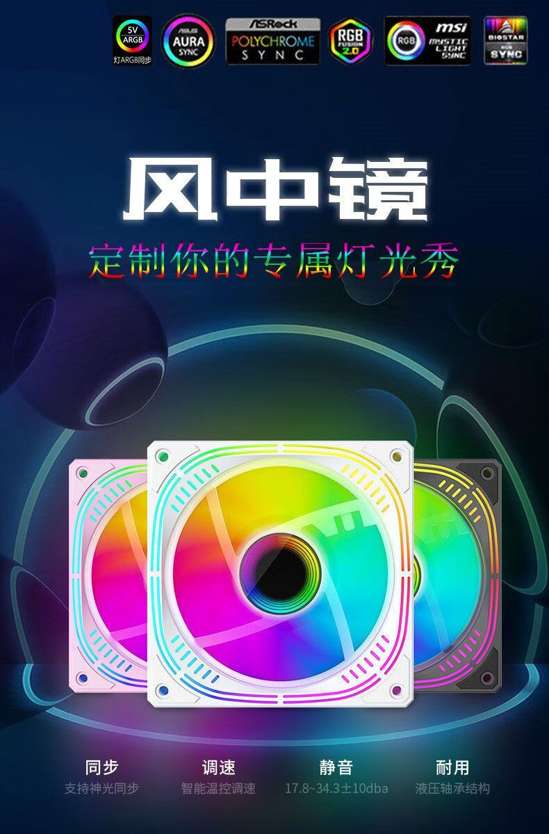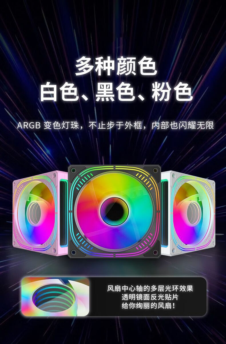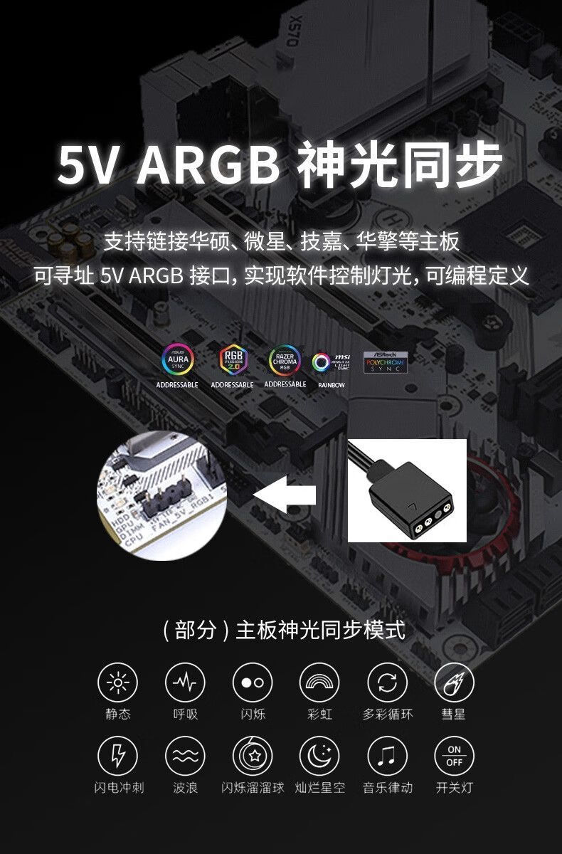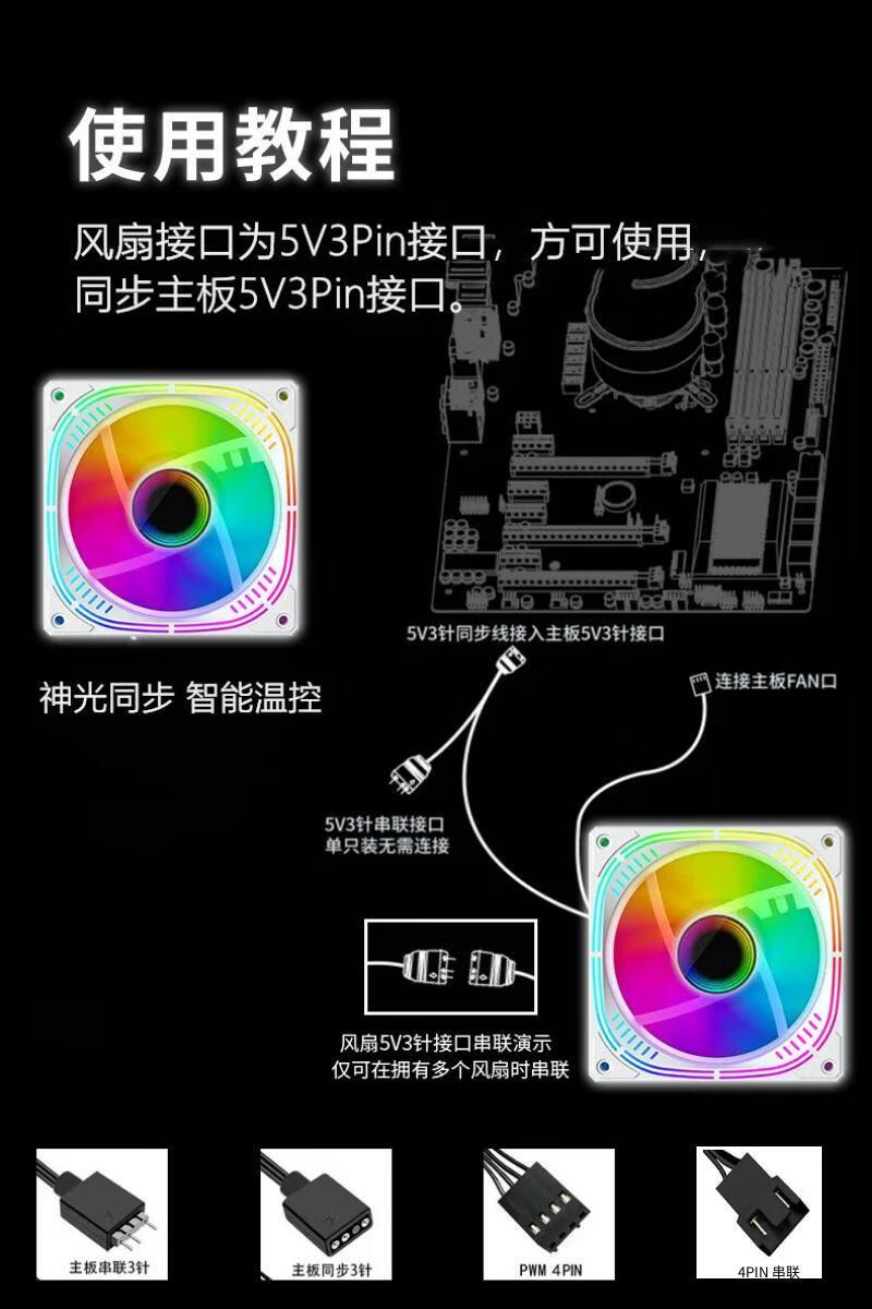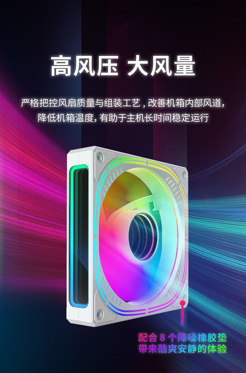 棱镜4代新品PRO 12CM机箱风扇ARGB5V神光同步AURA炫彩PWM温控 白框 棱镜四代【正向】 5个装