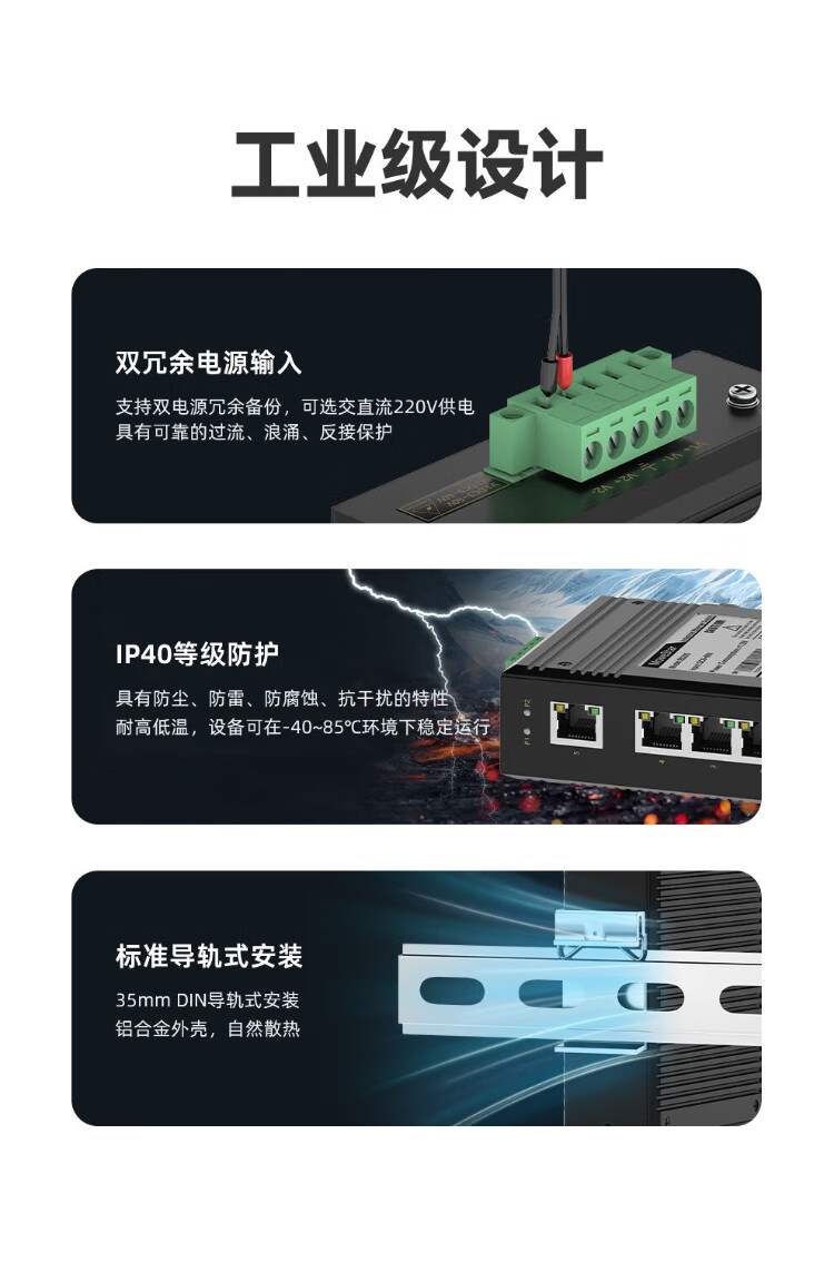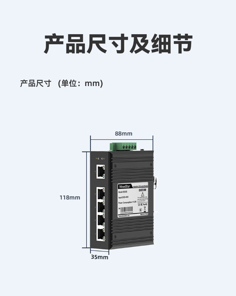 移星(MoweStar)工业级交换机百兆千兆5口6口8口10口1光2电2光4电光纤收发器单多模光电转换器导轨式以太网交换机 ES206-2F 百兆2光4电导轨式非管理型 -HV(单路AC/DC220V供电)