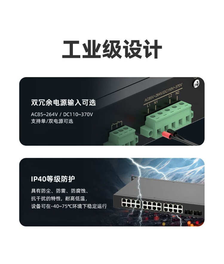 移星(MoweStar)工业级以太网百兆千兆交换机16口24口28口单模/多模光纤收发器 网络集线器光电转换器1U机架式220V ES3028-4GC 4千兆光24百兆电机架非管理 单路AC/DC220V供电