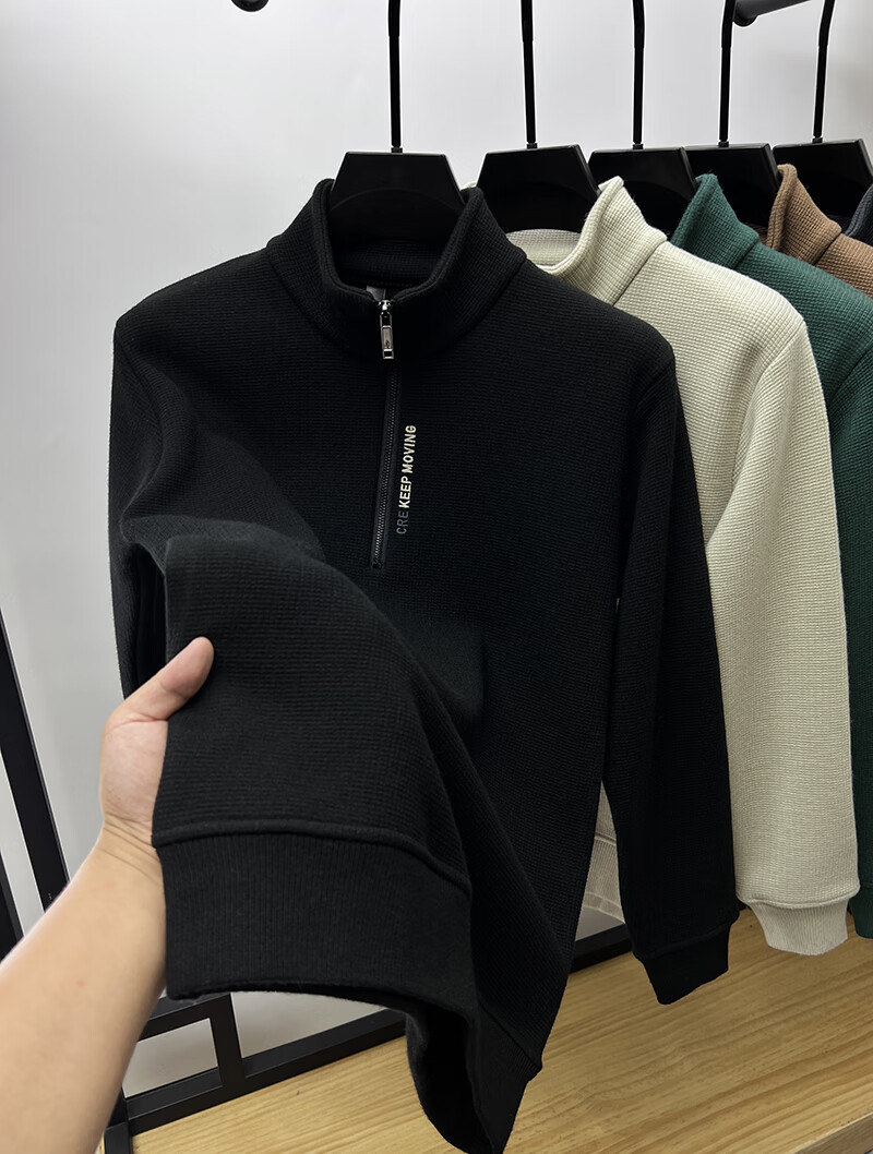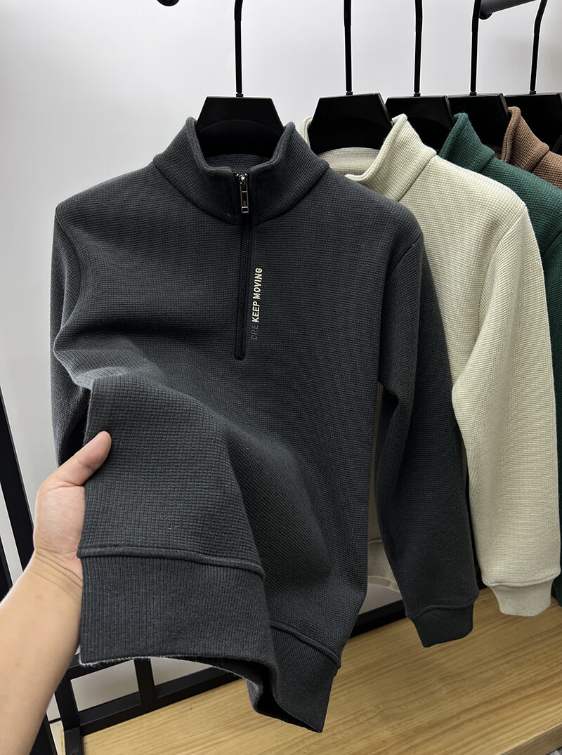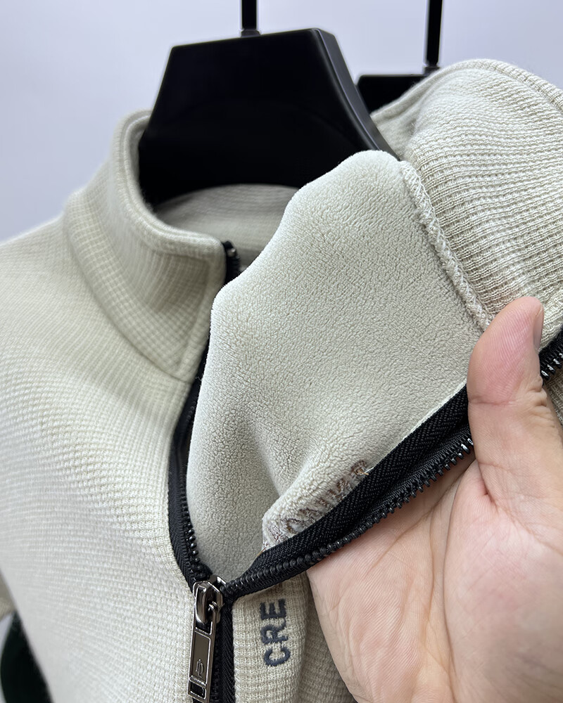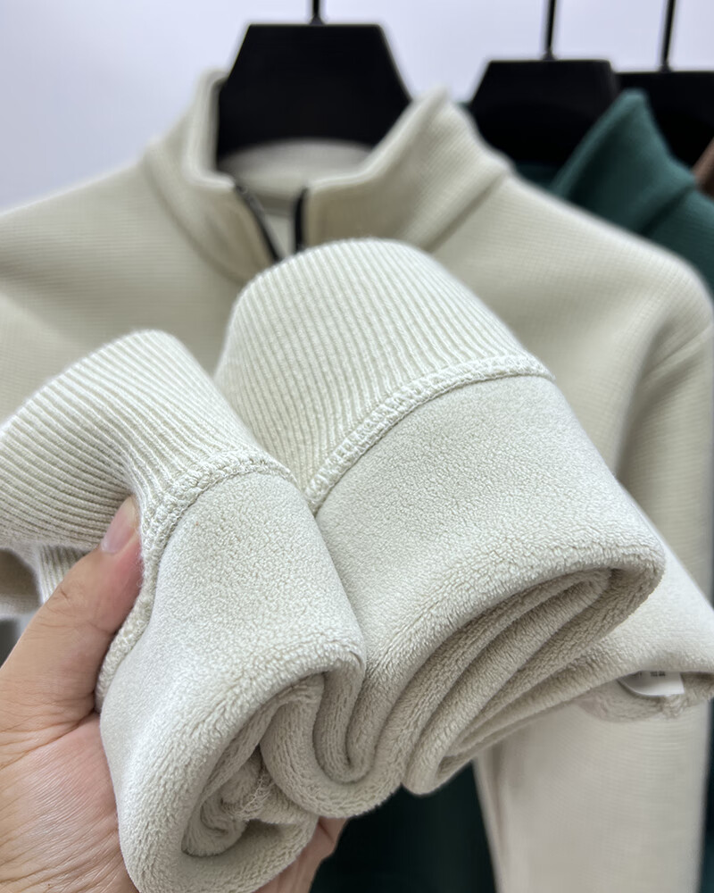 罗蒙(ROMON)含绵羊毛半拉链加绒加厚卫衣男士秋冬保暖休闲t恤男立领打底外套 单件装-米色 (加绒含羊毛) XL 175码