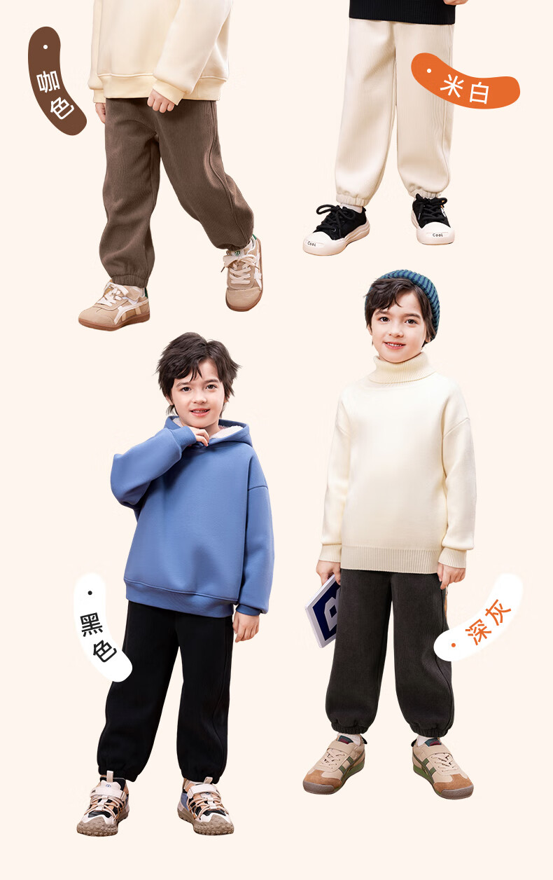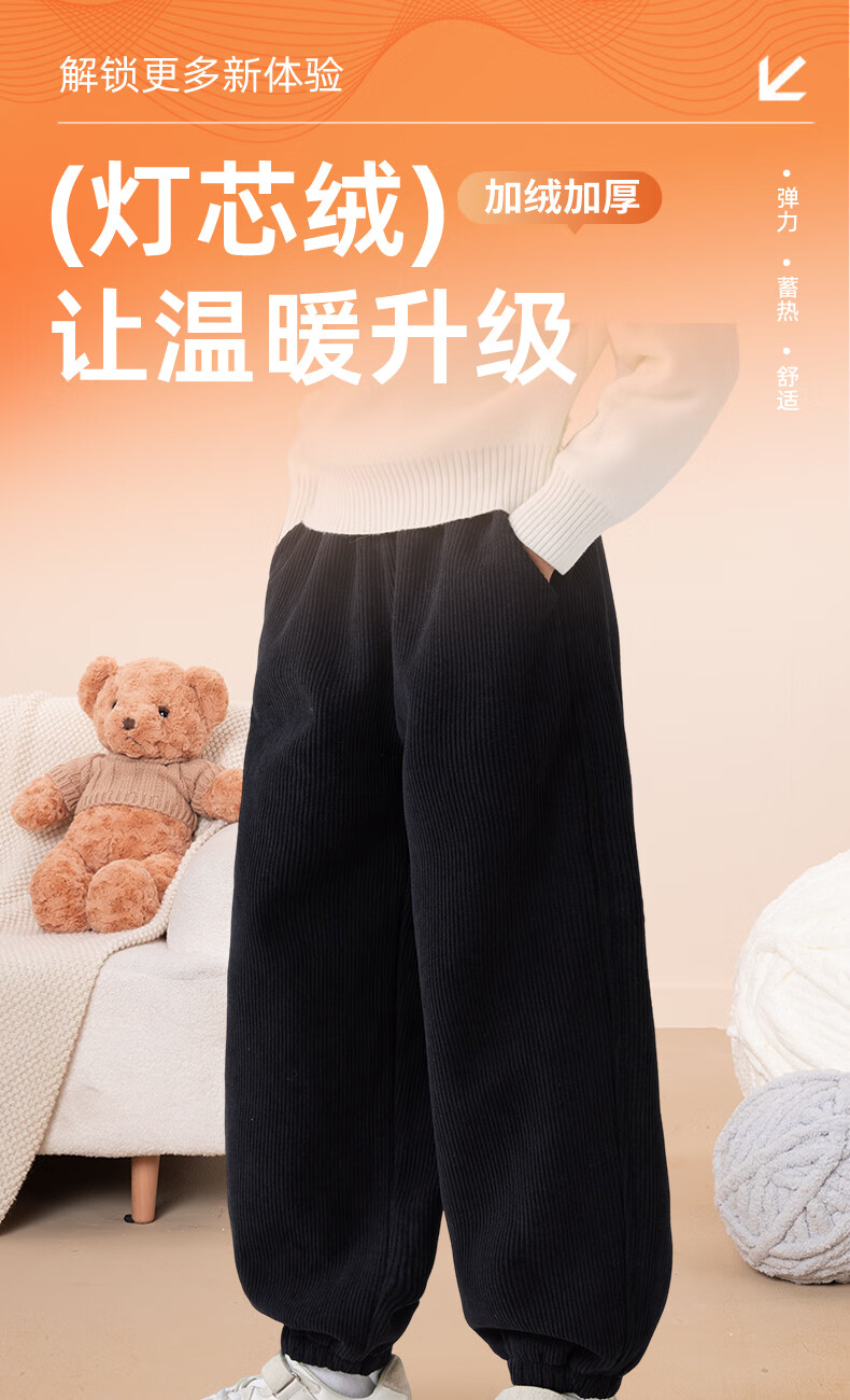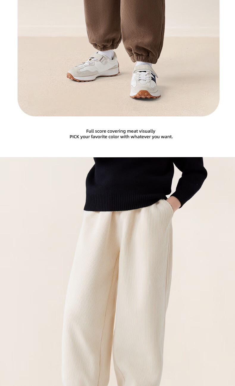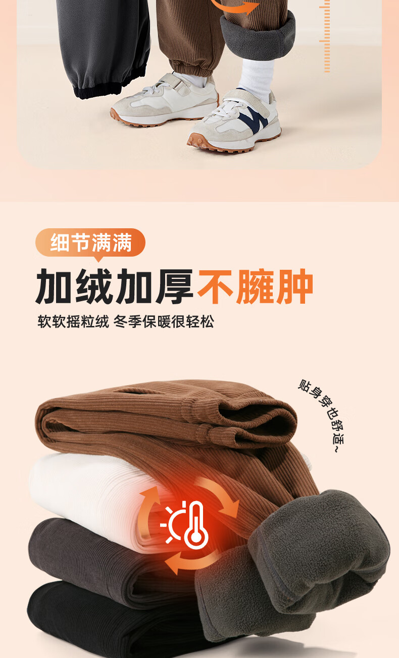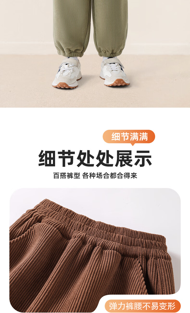 巴布豆儿童裤子秋冬季男童加绒保暖女童灯芯绒长裤时尚宽松潮流童装 卡其 130