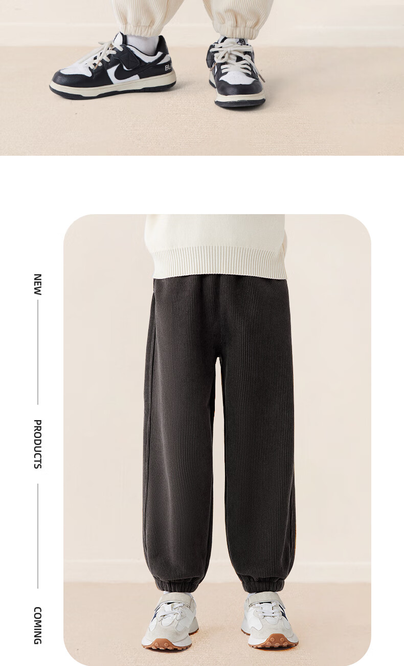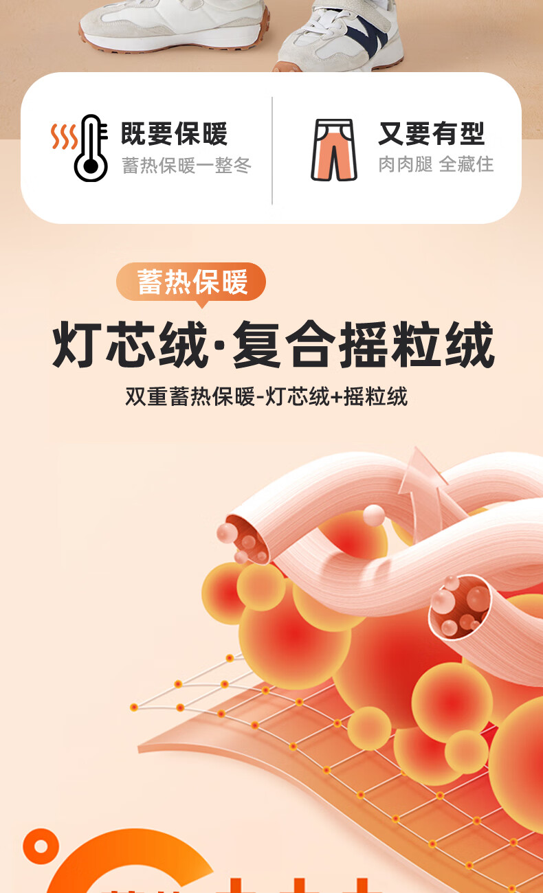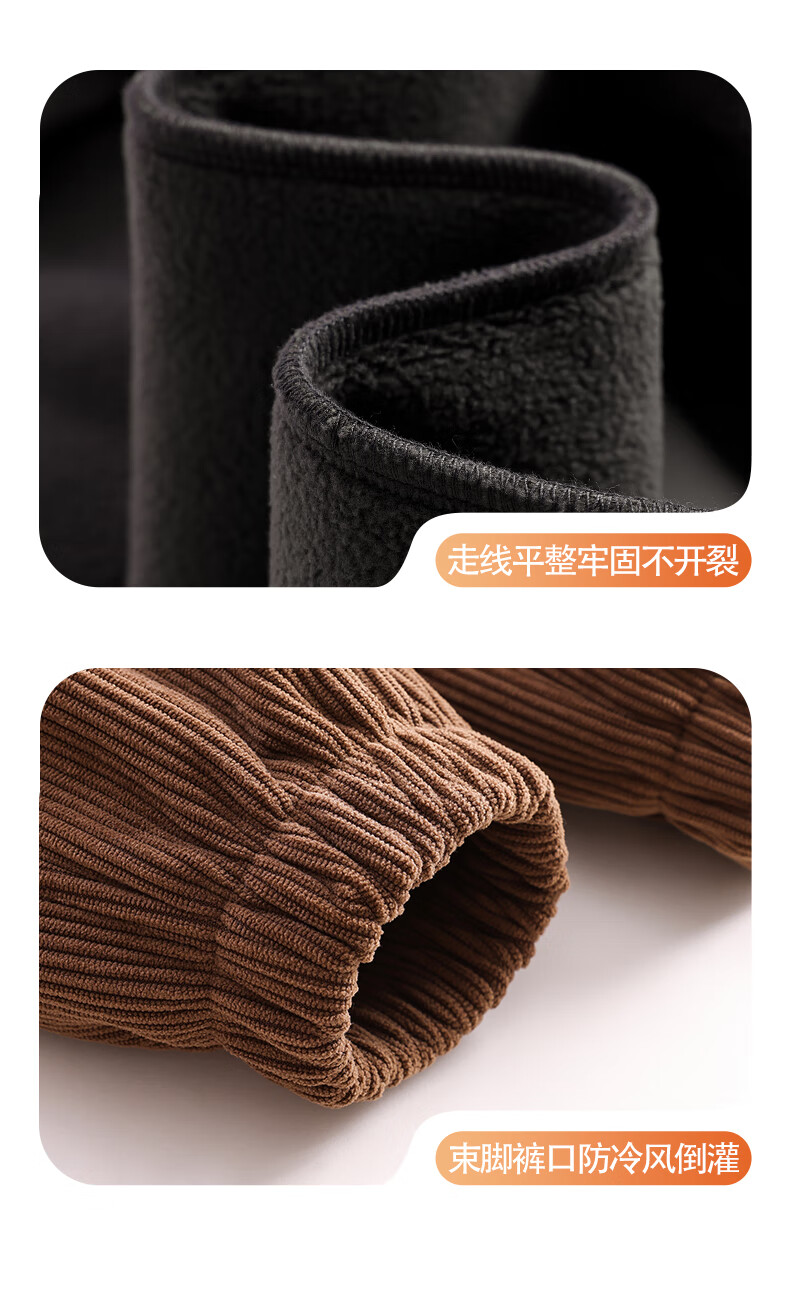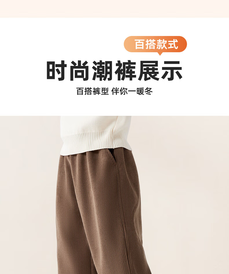 巴布豆儿童裤子秋冬季男童加绒保暖女童灯芯绒长裤时尚宽松潮流童装 卡其 130