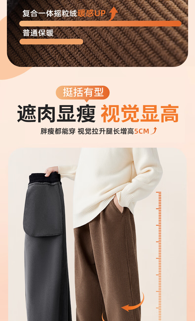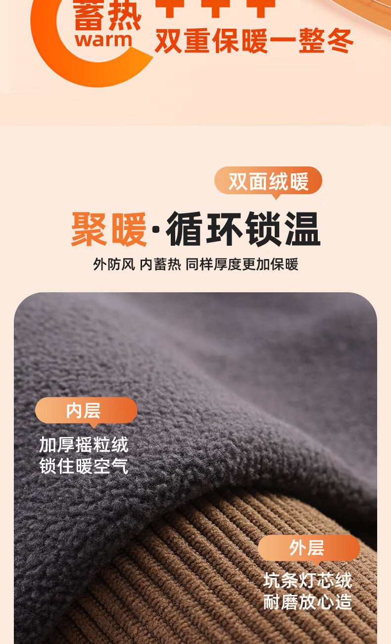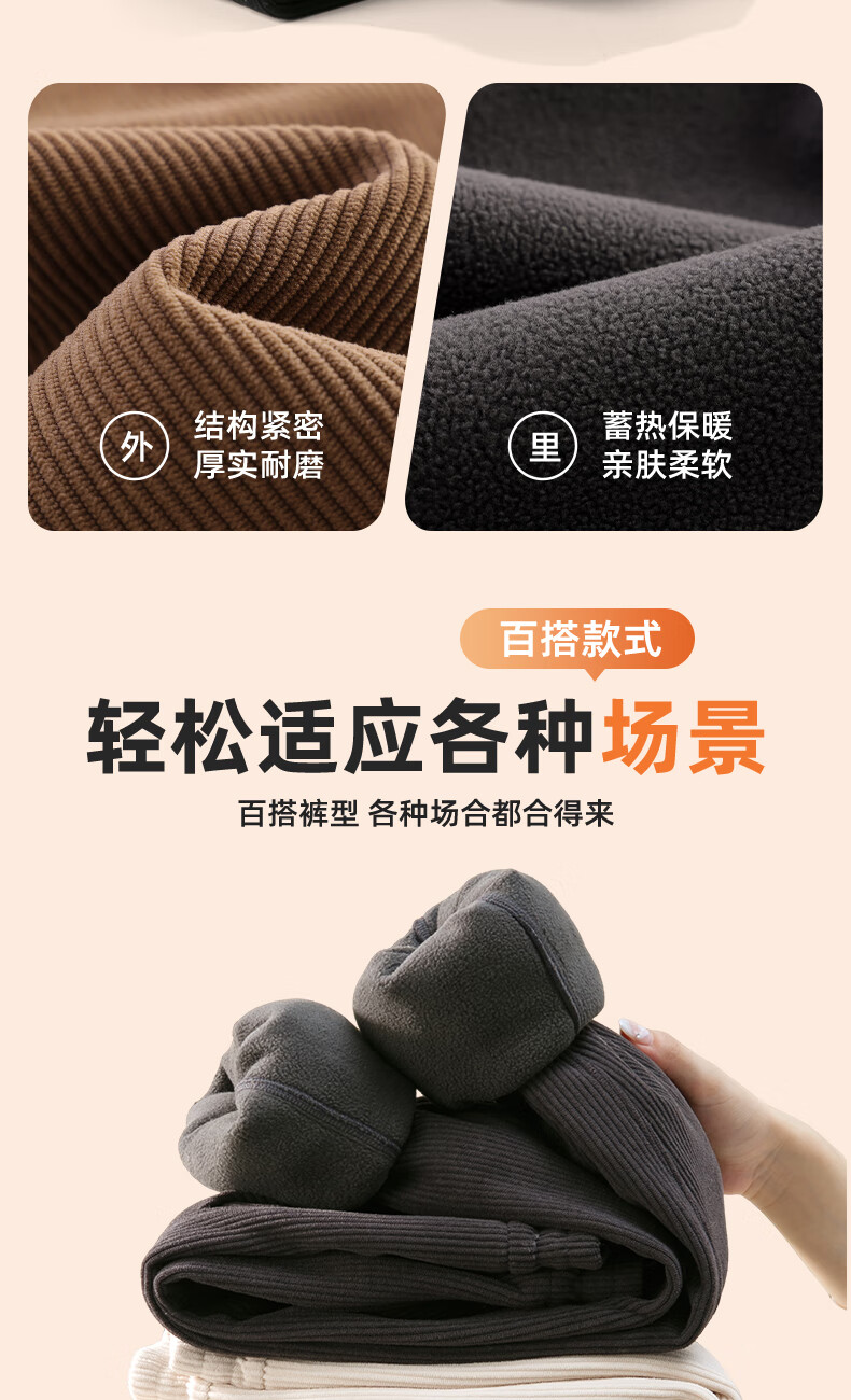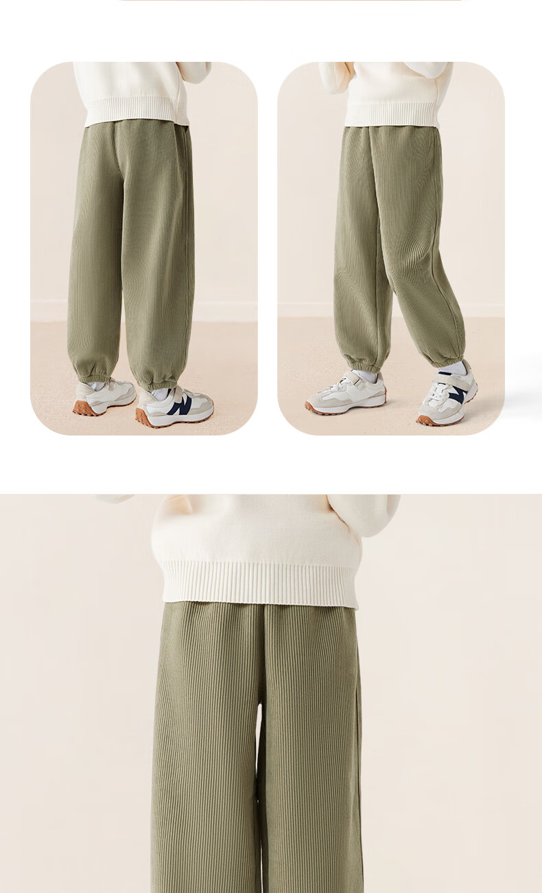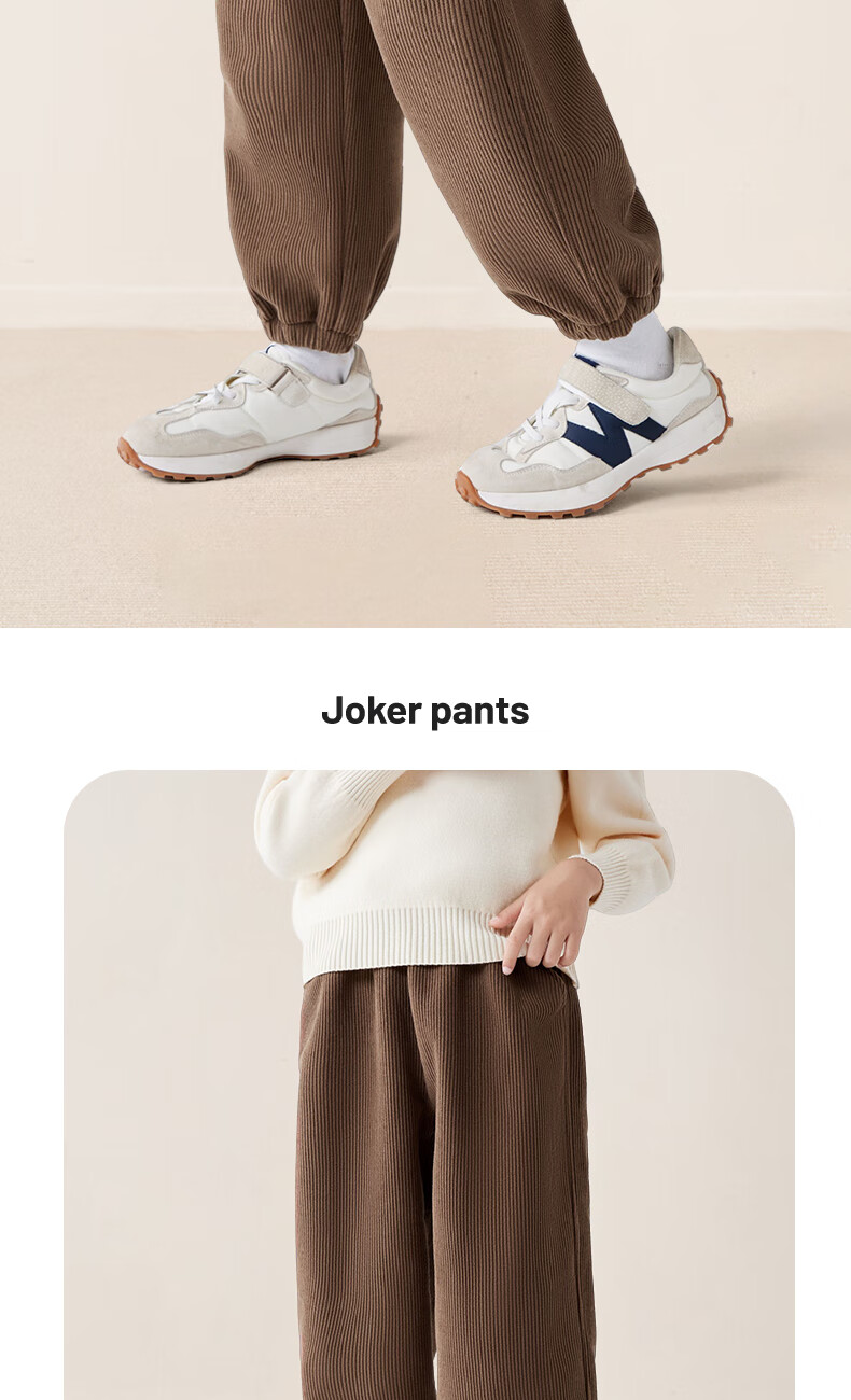 巴布豆儿童裤子秋冬季男童加绒保暖女童灯芯绒长裤时尚宽松潮流童装 卡其 130