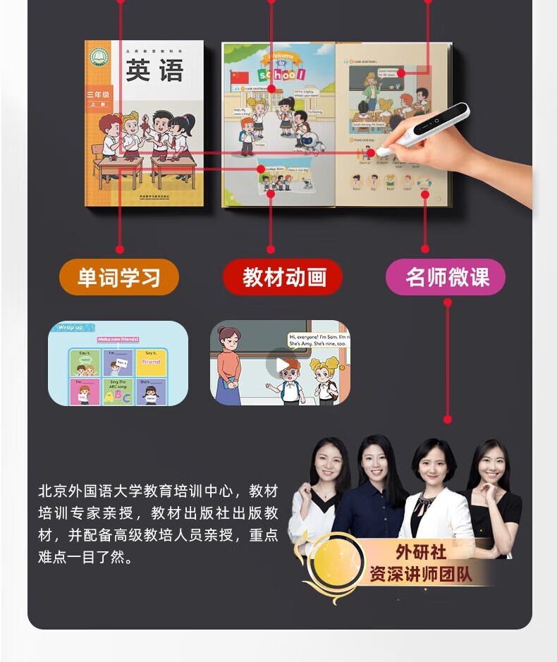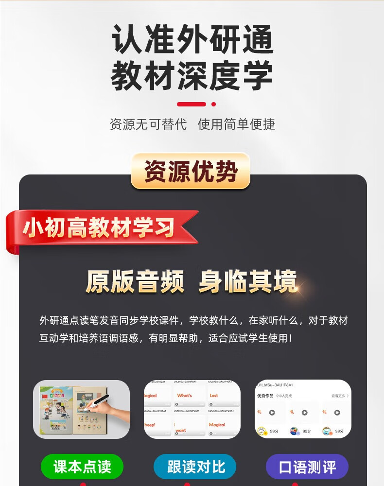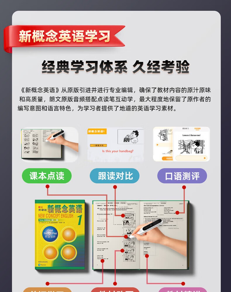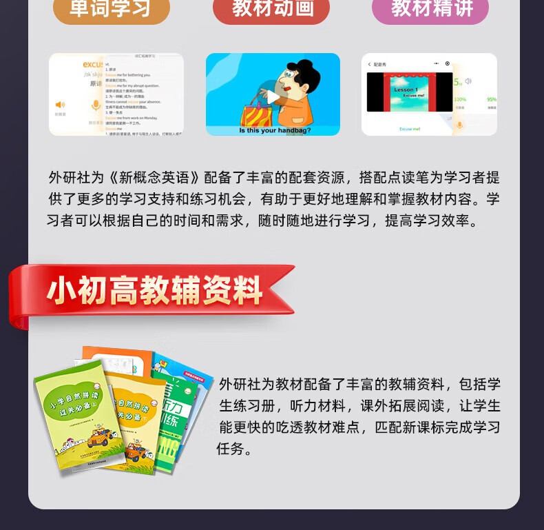外研通点读笔 中小学生英语点读笔学习机 大猫丽声新概念点读笔 小学初中外研社英语教材课本同步 V11+100得新概念1级2级+练习册 标配