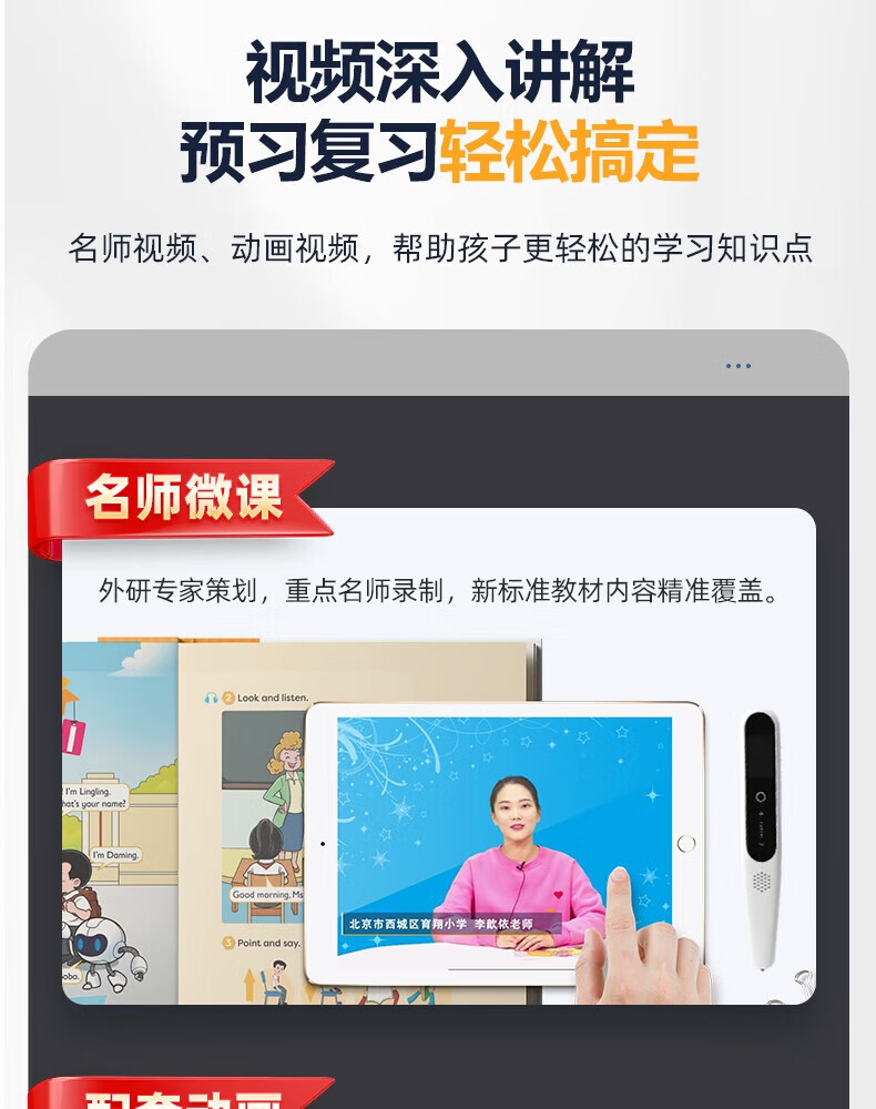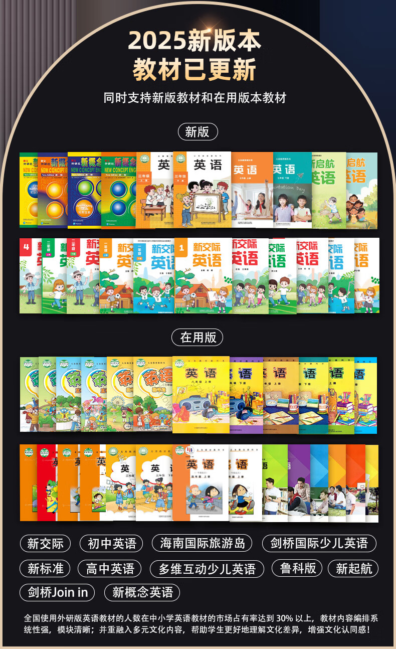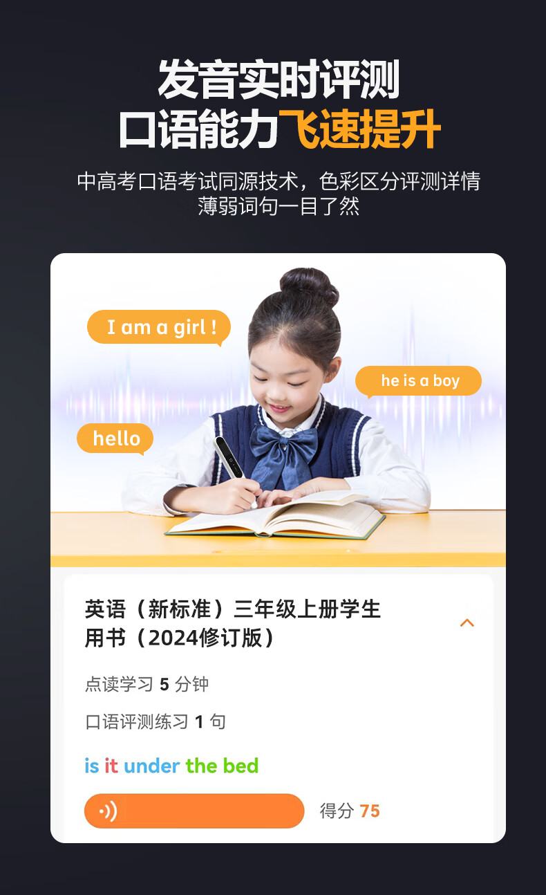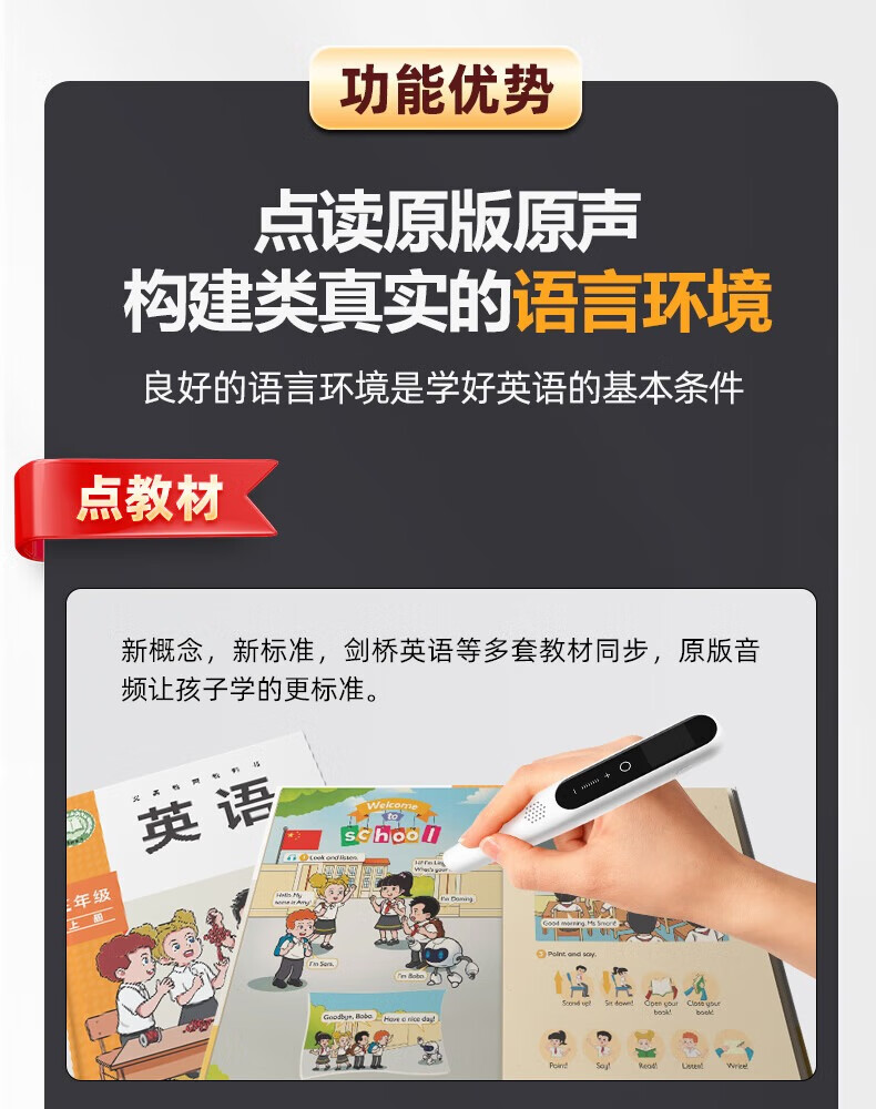 外研通点读笔 中小学生英语点读笔学习机 大猫丽声新概念点读笔 小学初中外研社英语教材课本同步 V11+100得新概念1级2级+练习册 标配
