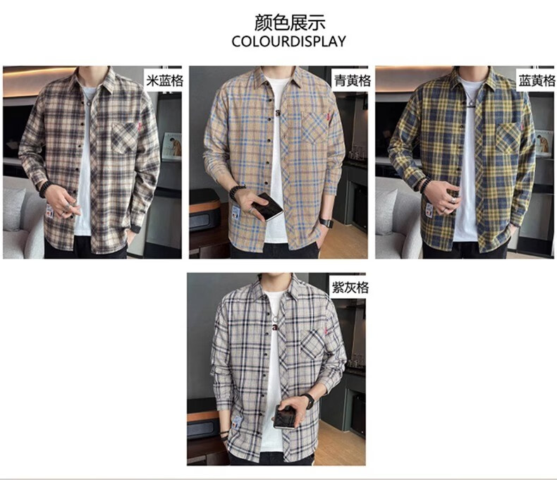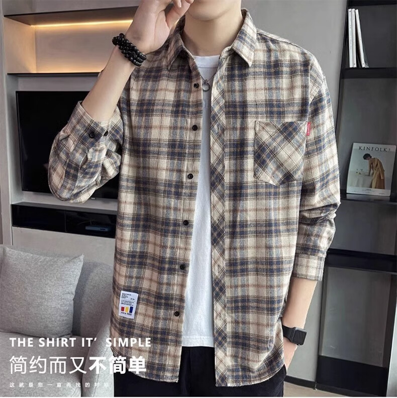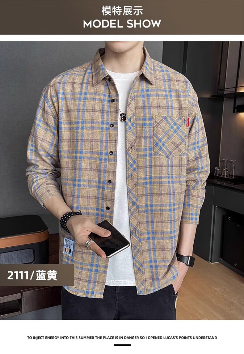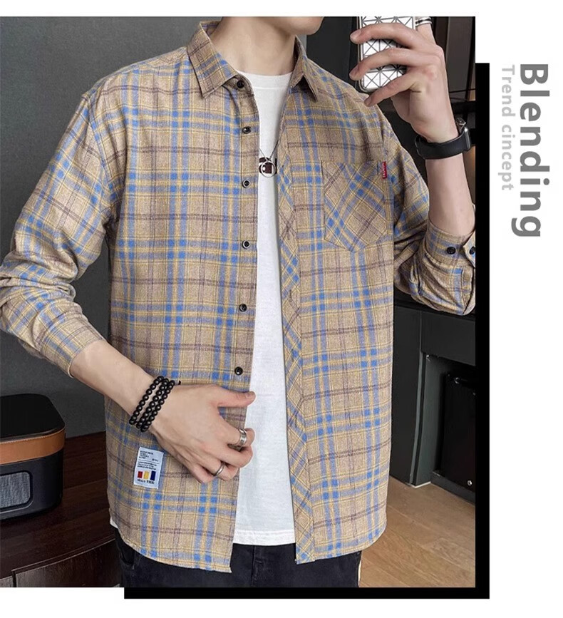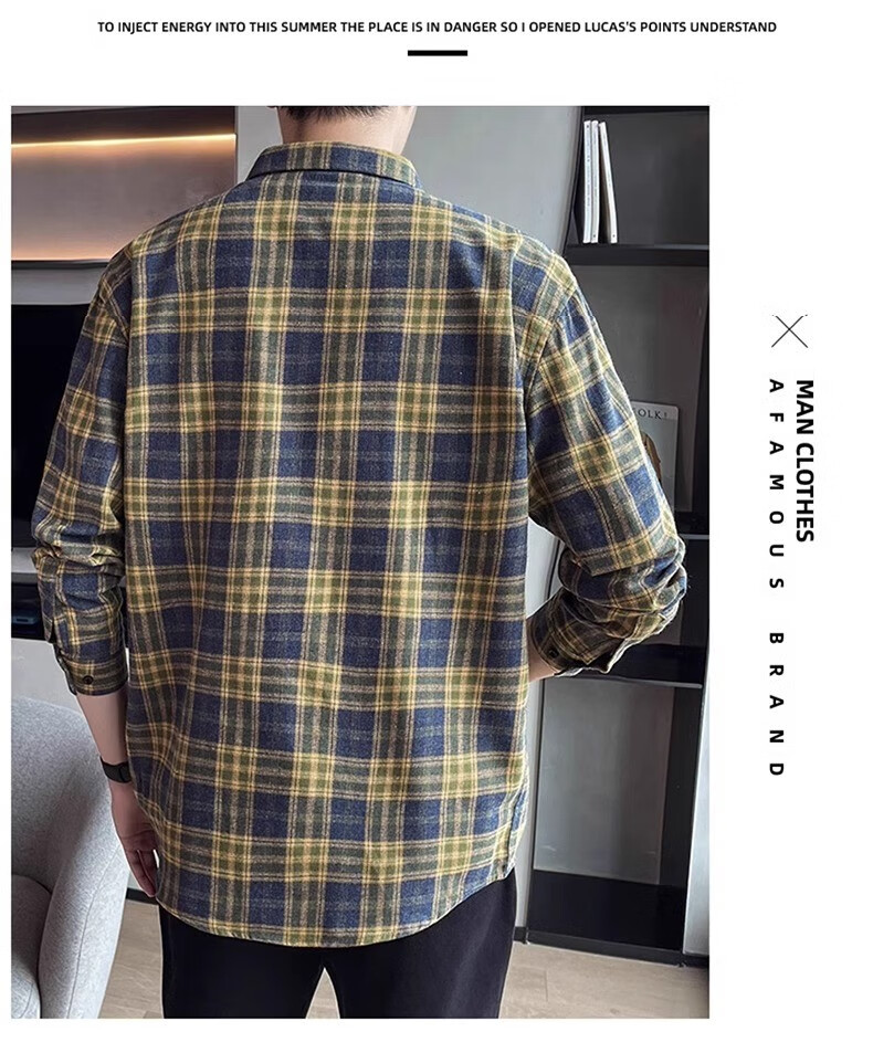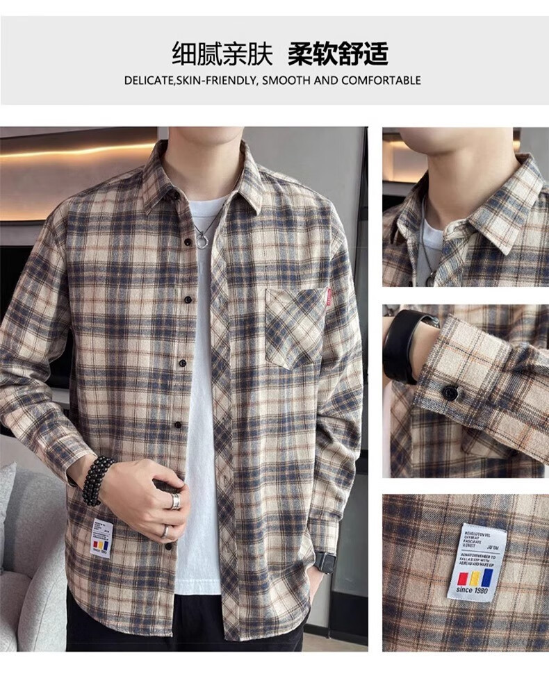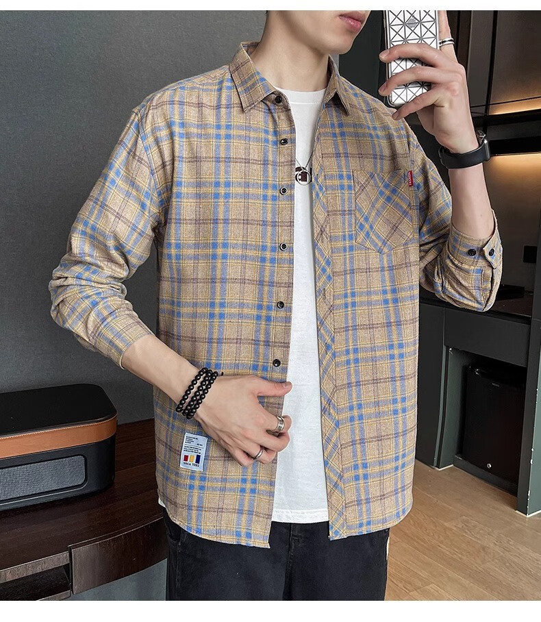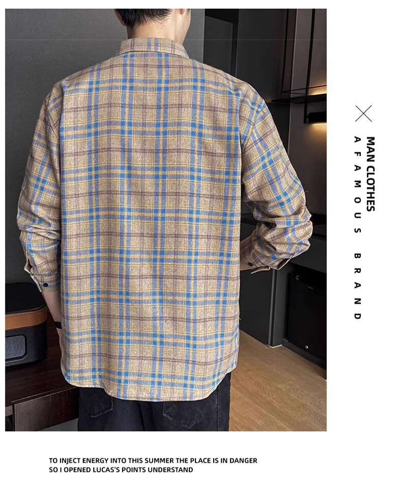 真维斯(Jeanswest)格子衬衫男款春秋季2025新款潮牌美式长袖衬衣男士上衣加绒外套男 米蓝格 2XL