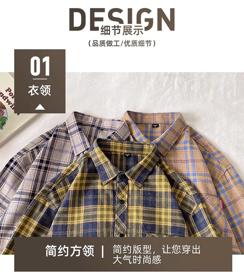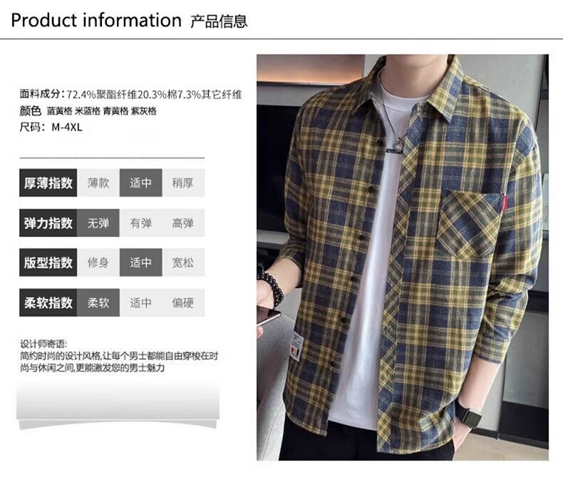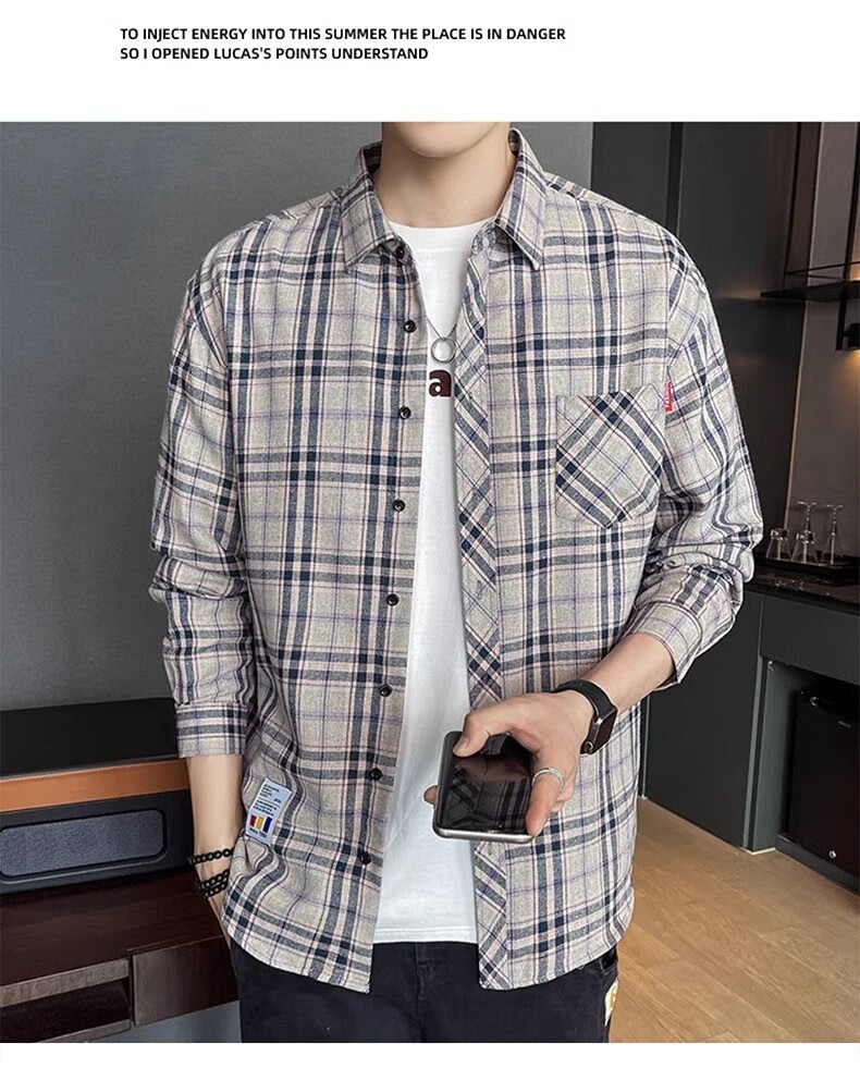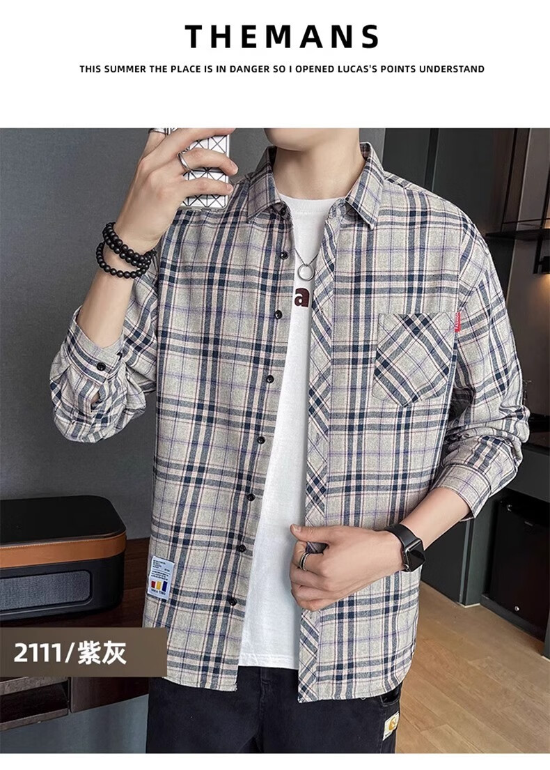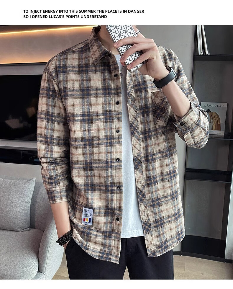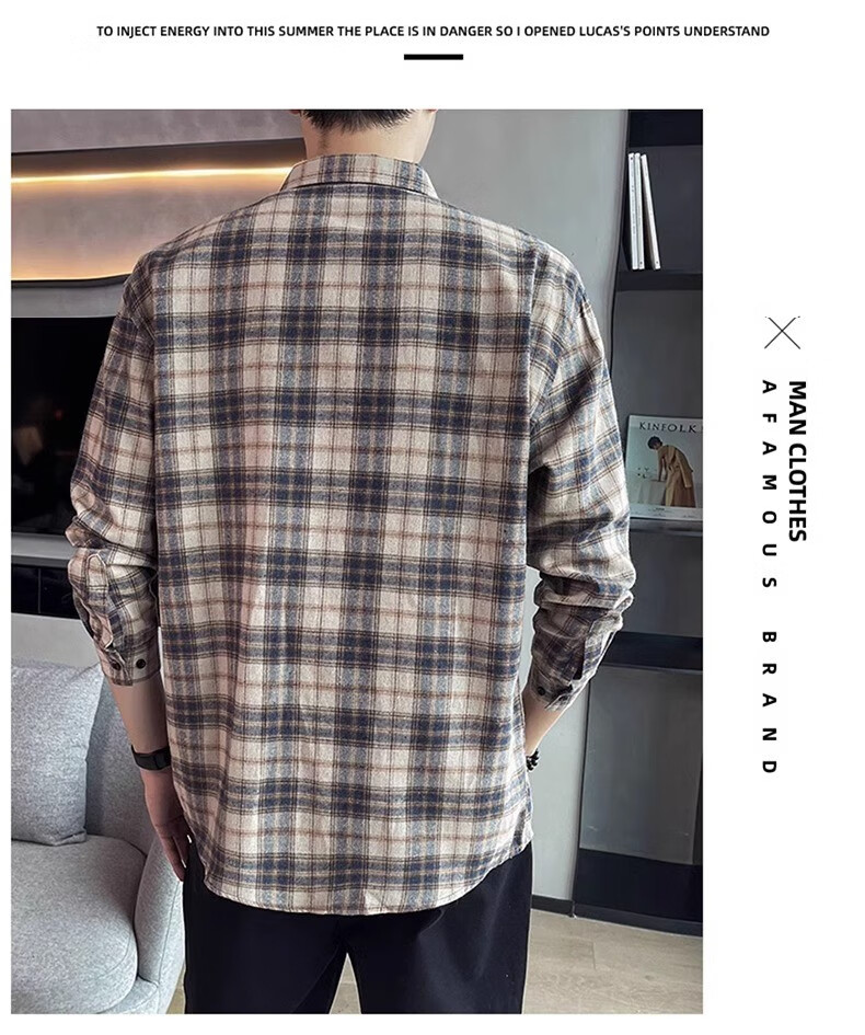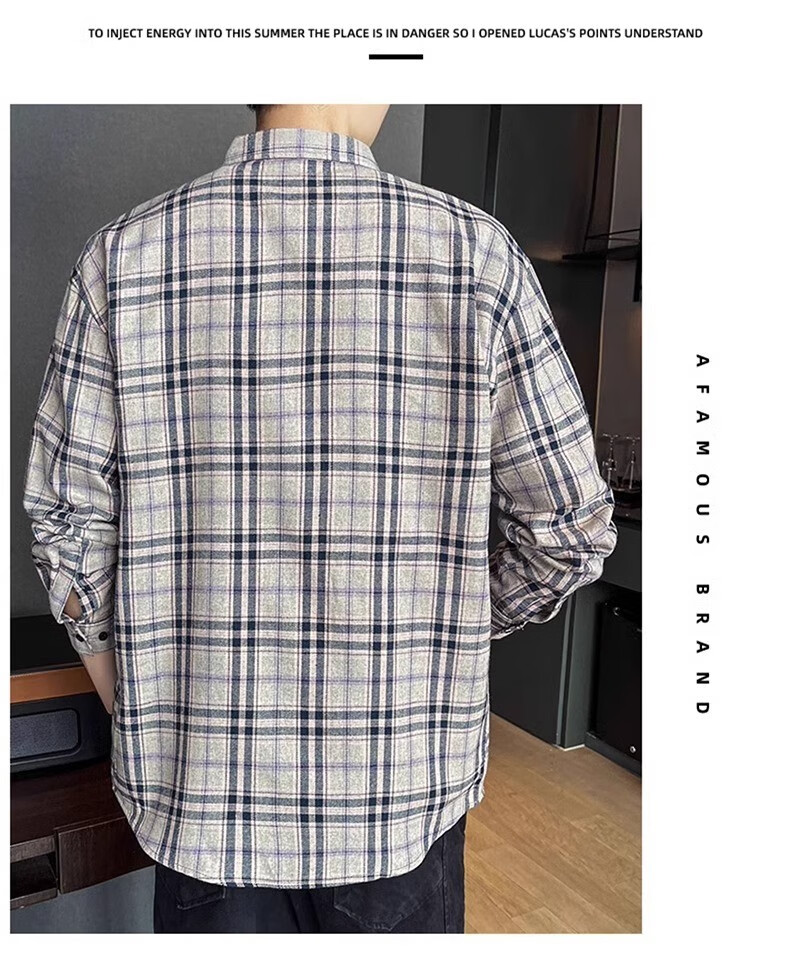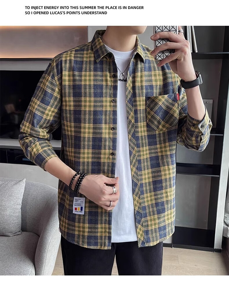 真维斯(Jeanswest)格子衬衫男款春秋季2025新款潮牌美式长袖衬衣男士上衣加绒外套男 米蓝格 2XL