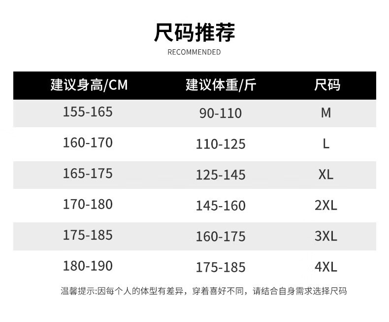 China (cm) 160-165/84-86 165-170 / 88-90 167-172 / 92-96 168-173 / 98-102 170-176 / 106-110