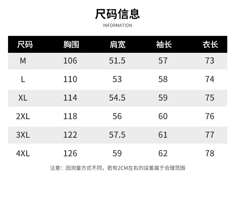 Size (cm) 42 44 46 48 50