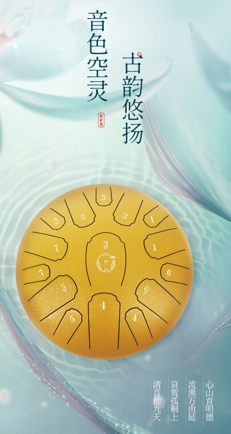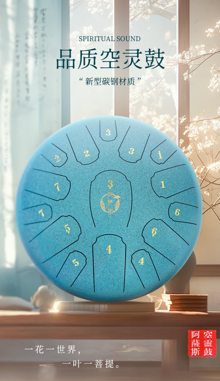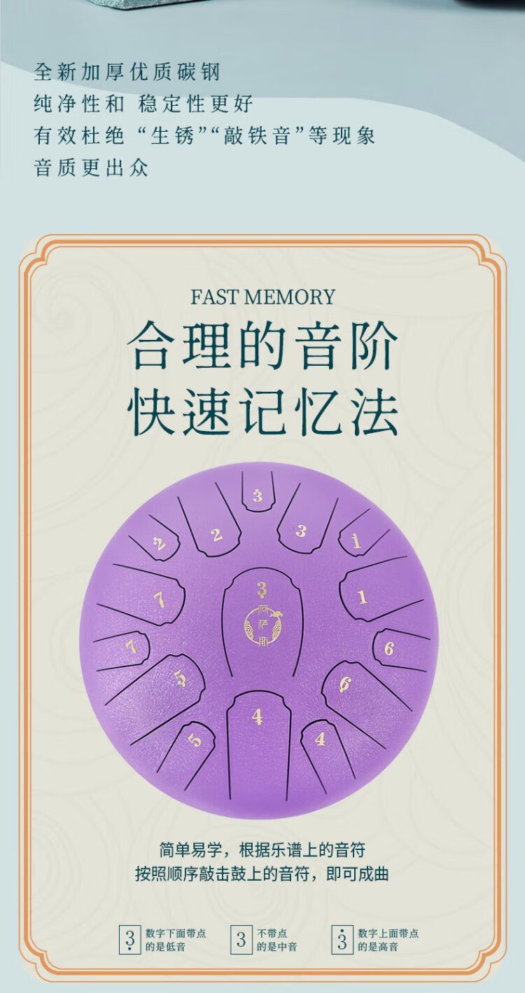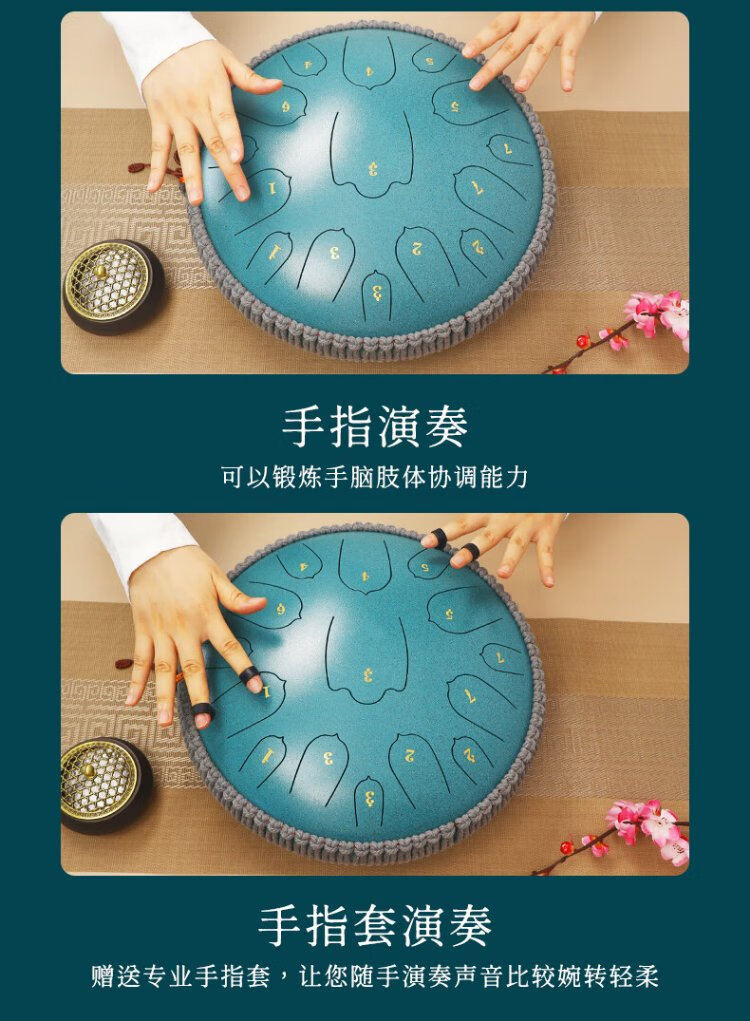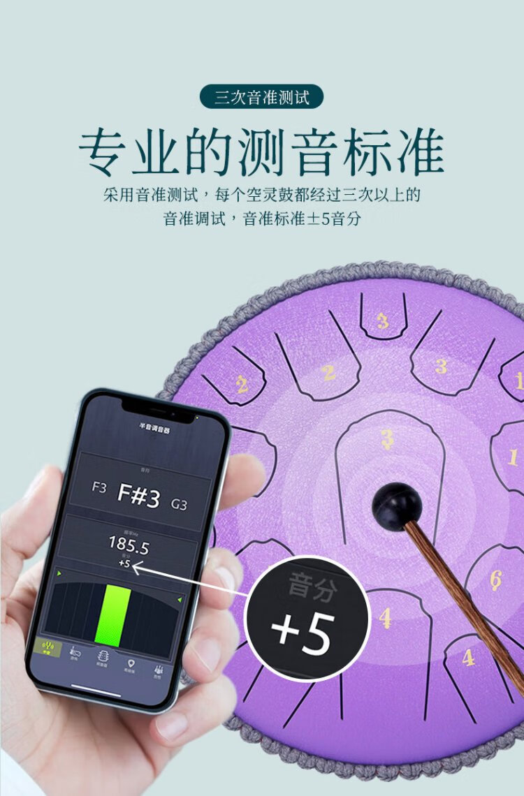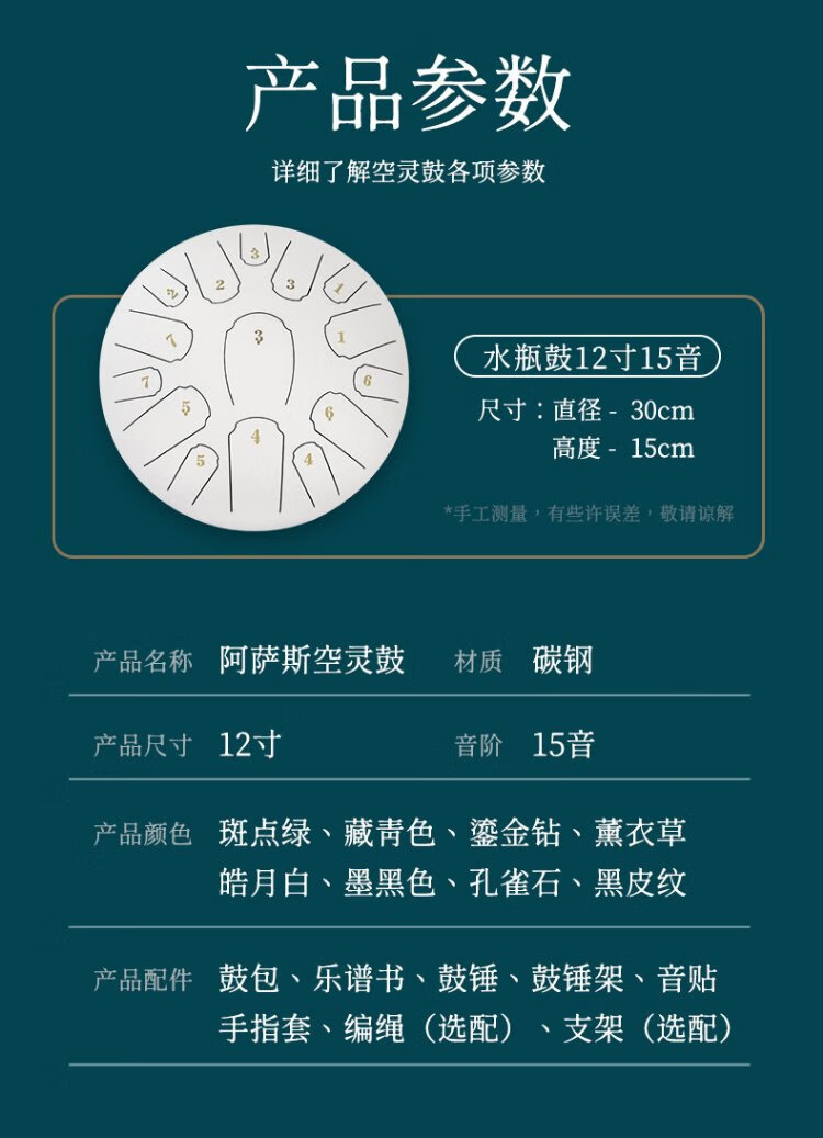 Assas ethereal drum 15-tone small 13-inch adult and child beginner steel tongue drummer disc drum gift percussion instrument 12-inch 15-tone Haoyue White (C key) + braided rope
