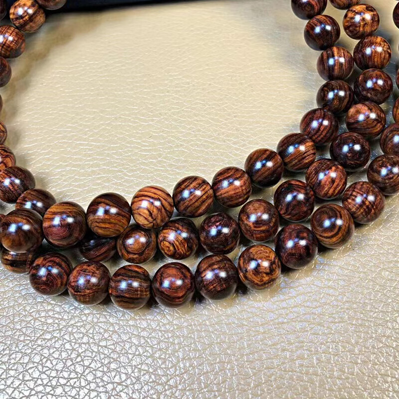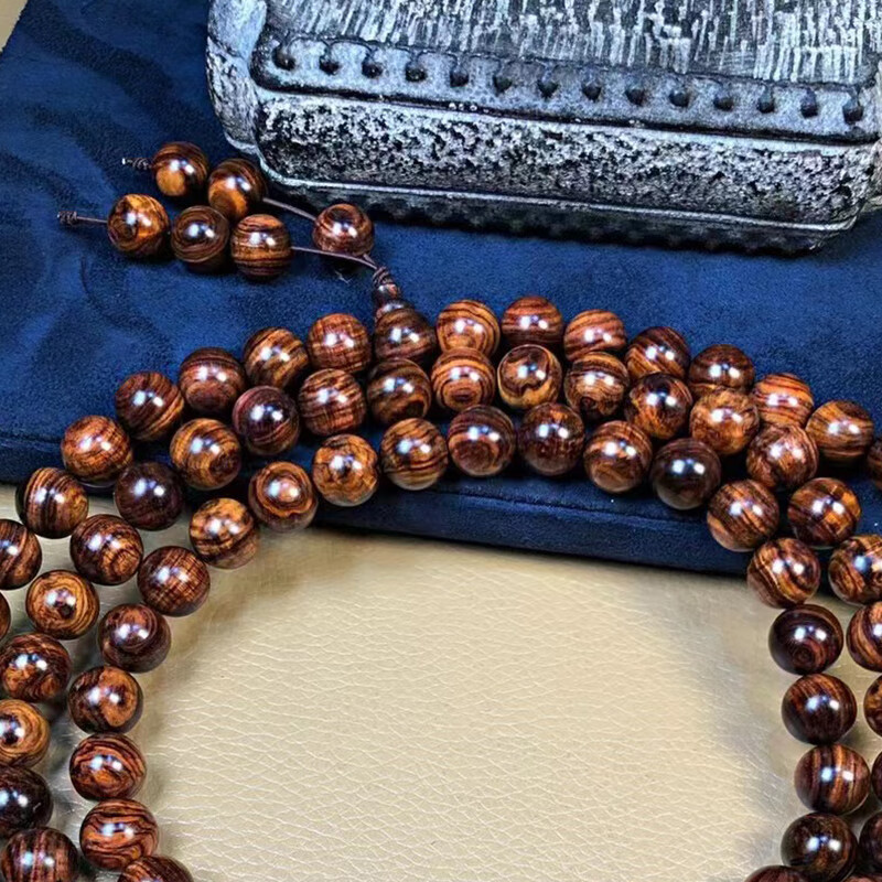 Fanxin Pavilion Authentic Hainan Huanghuali Bracelet Purple Avocado Tiger Skin Pattern Old Material Grimace Eyes Mountain Benminglong Birthday Gift Hainan Huanghuali 10mm*108 pieces