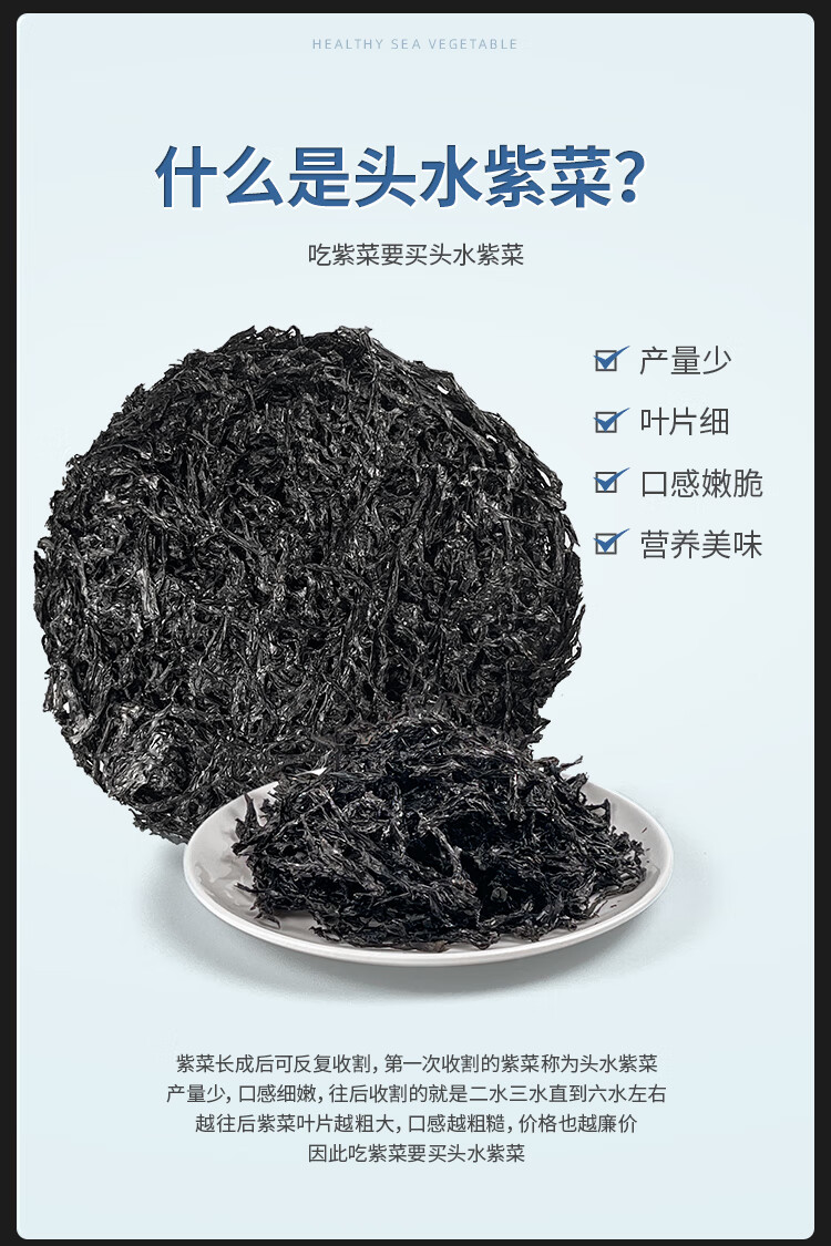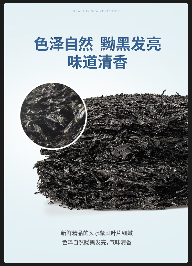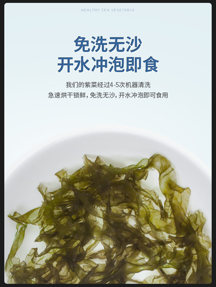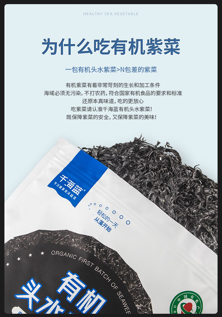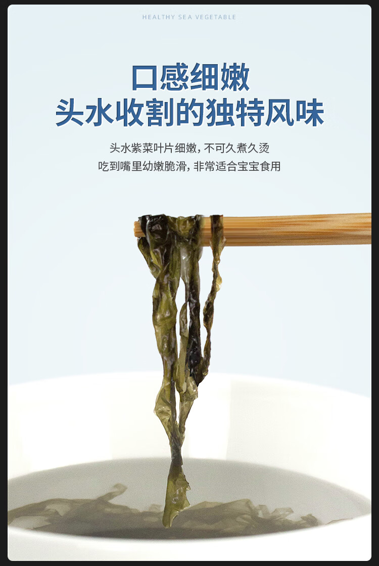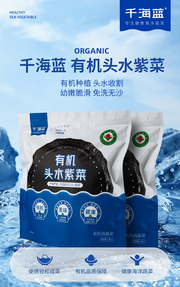 千海蓝有机头水紫菜干货免洗无沙冲泡即食福建霞浦宝宝儿童纯紫菜 有机头水紫菜60gx2袋