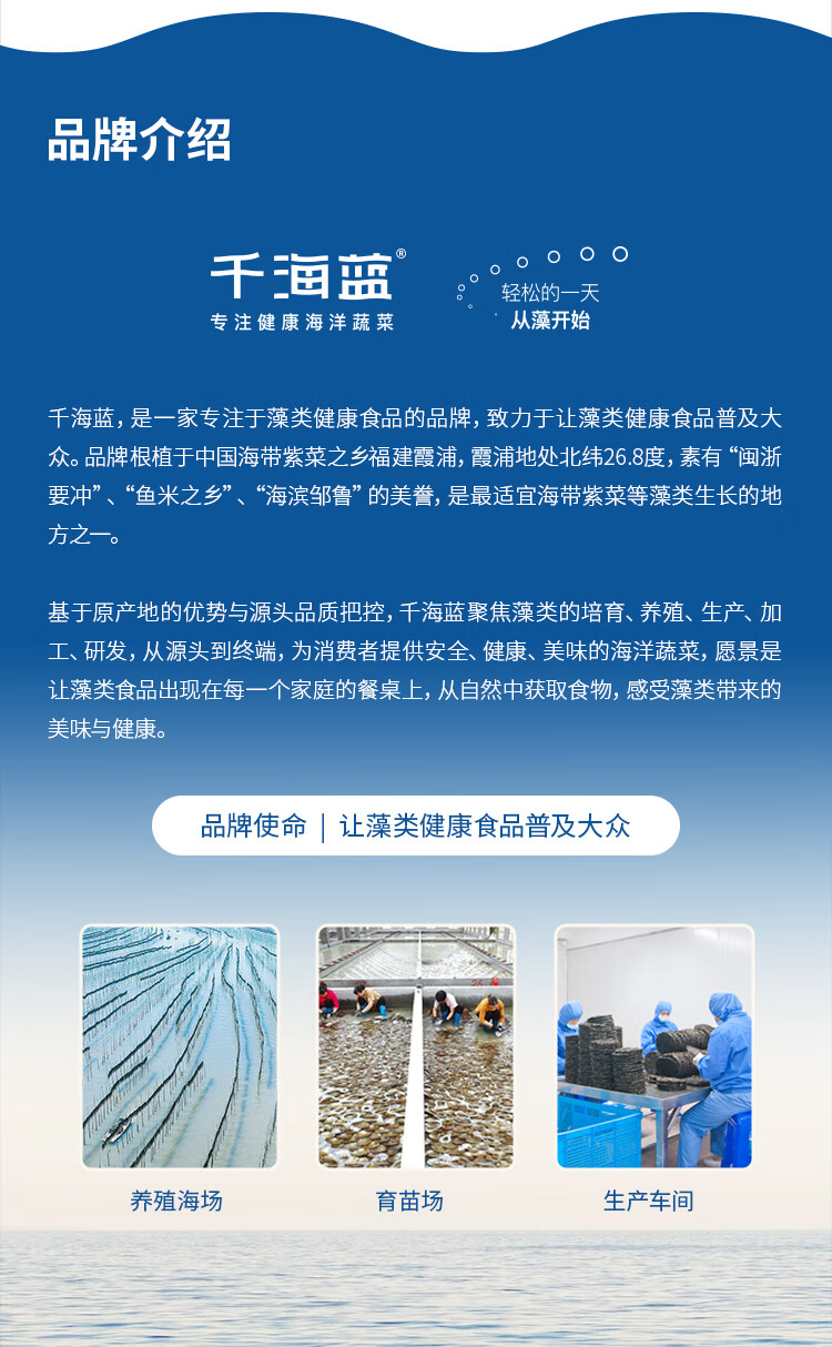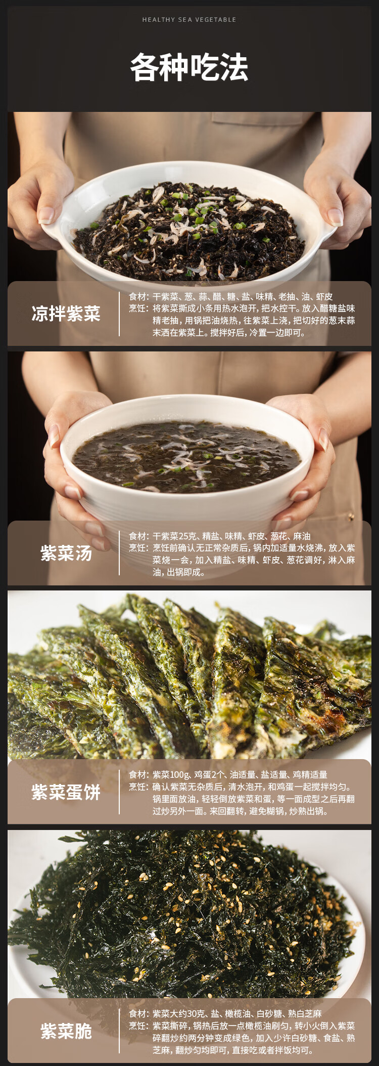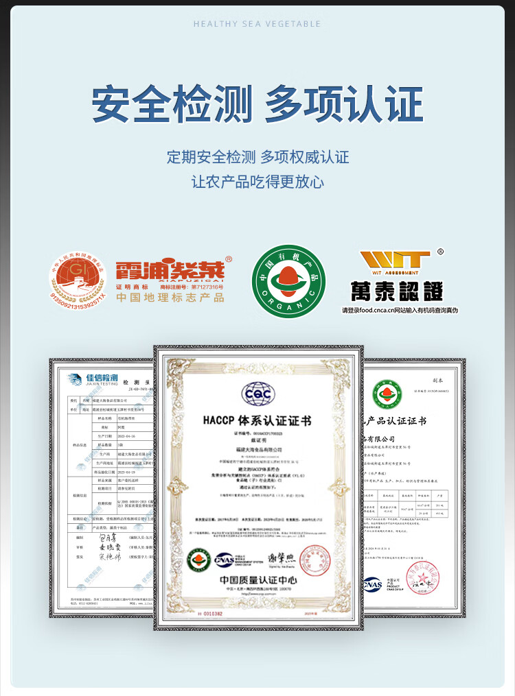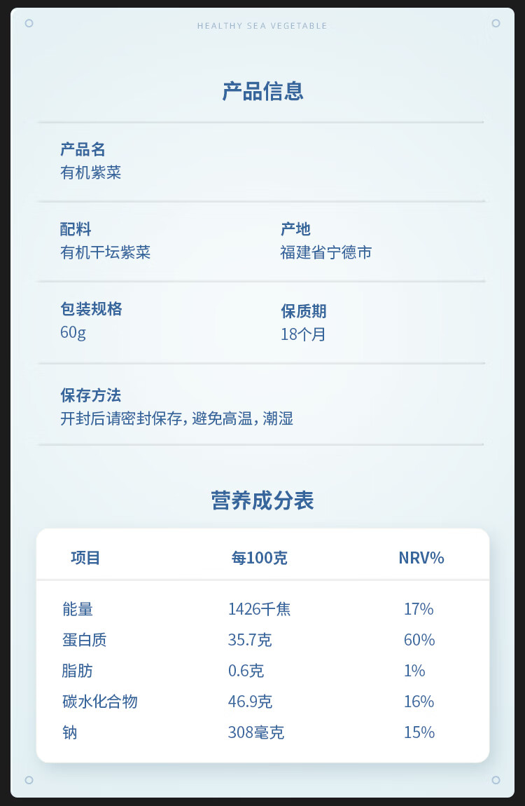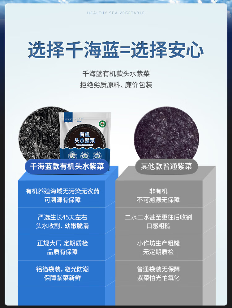千海蓝有机头水紫菜干货免洗无沙冲泡即食福建霞浦宝宝儿童纯紫菜 有机头水紫菜60gx2袋