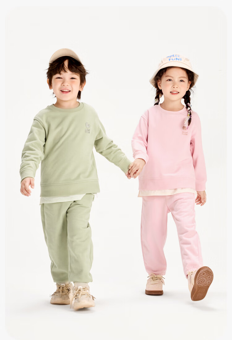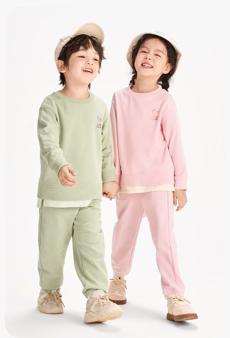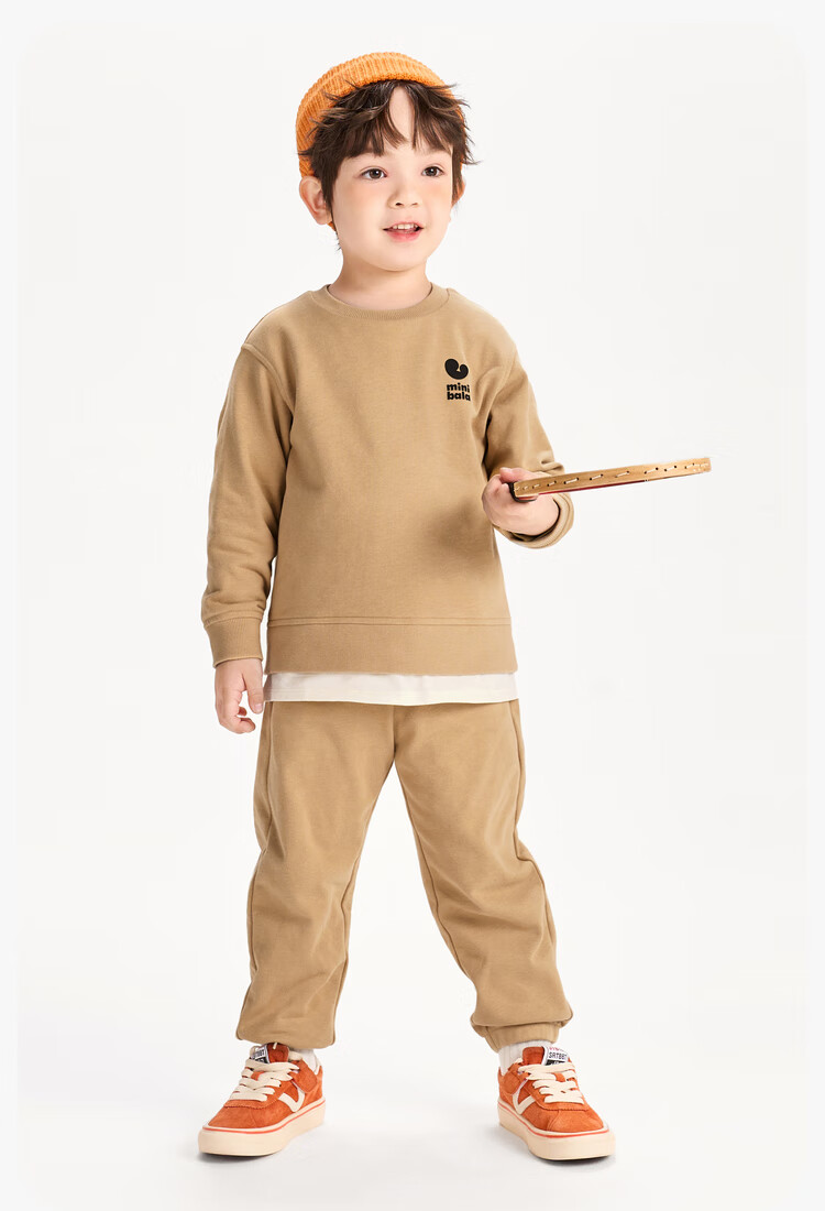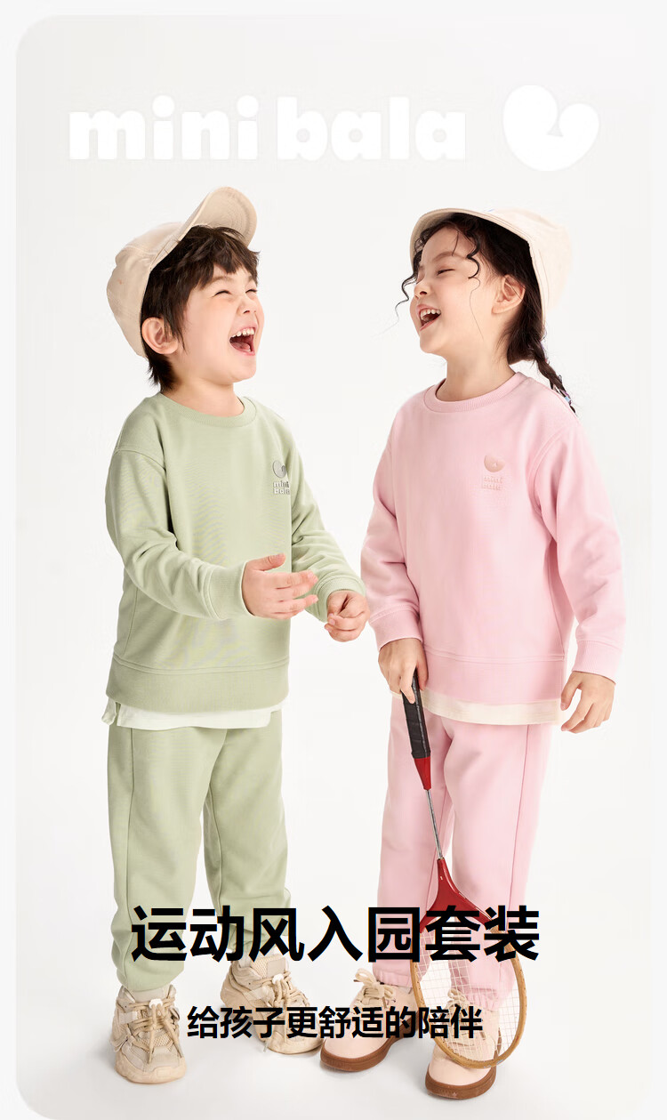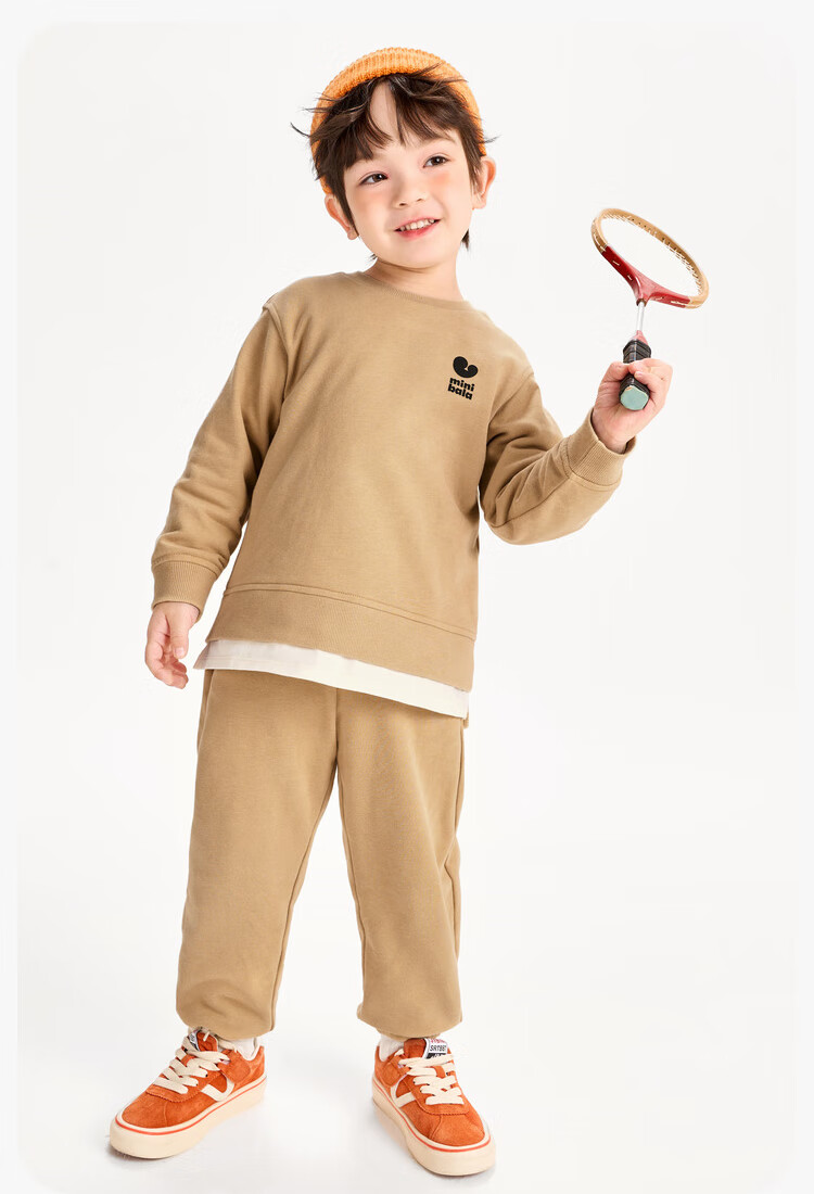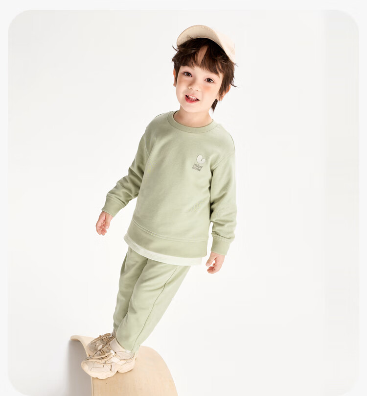 Mini Bala Boys and Girls Long Sleeve Suit New Year Baby Fashion Loose Children's Kindergarten Outing Suit Bean Paste Green 40004 105