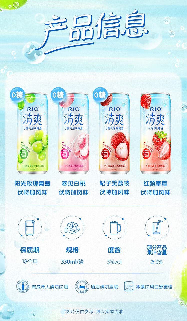 锐澳(RIO)清爽气泡鸡尾酒洋酒预调果酒微醺5度300ml伏特加整箱可选口味中秋 清爽组合装10瓶