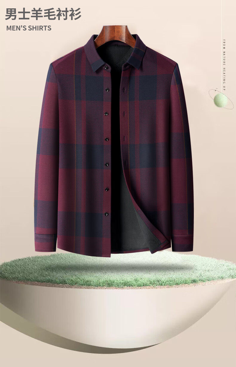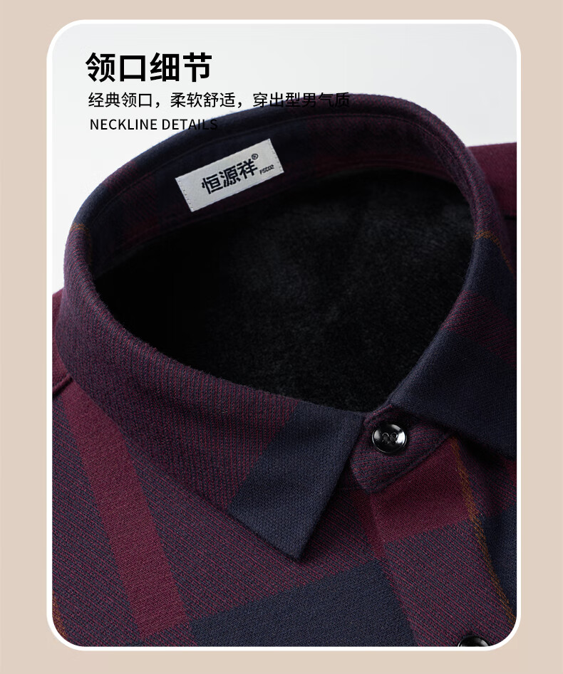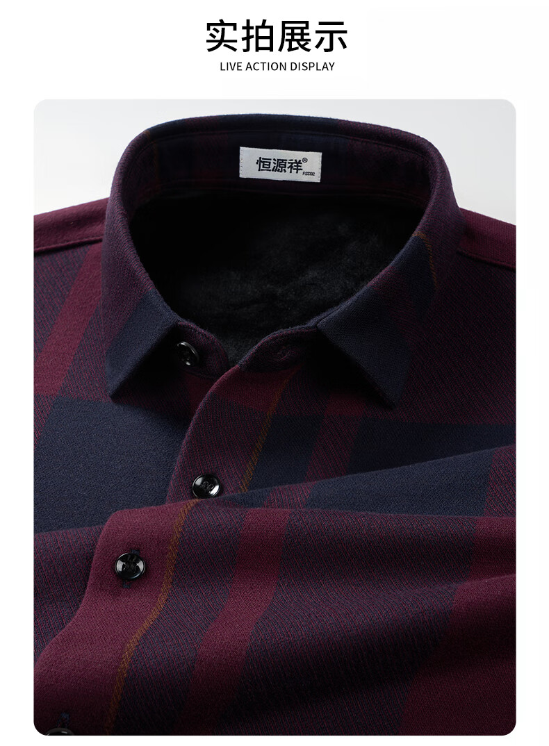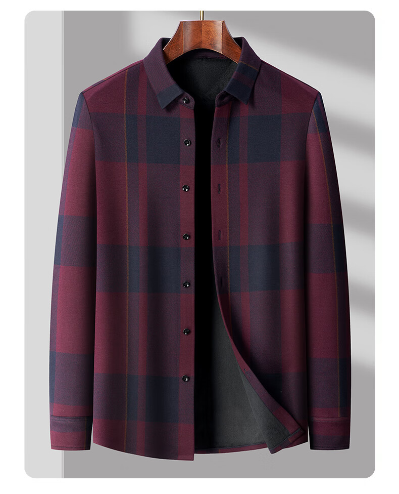 Hengyuanxiang шерсть плюс бархатная рубашка с длинными рукавами для мужчин среднего и пожилого возраста, папа, деловой, осенне-зимний, новая утолщенная рубашка 23120, красный, XL 180, подходит для 155-170Цзинь Цзинь равен 0,5 кг