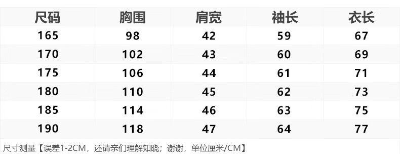 China (cm) 165 / 88-90 170 / 96-98 175 / 108-110 180 / 118-122 185 / 126-130