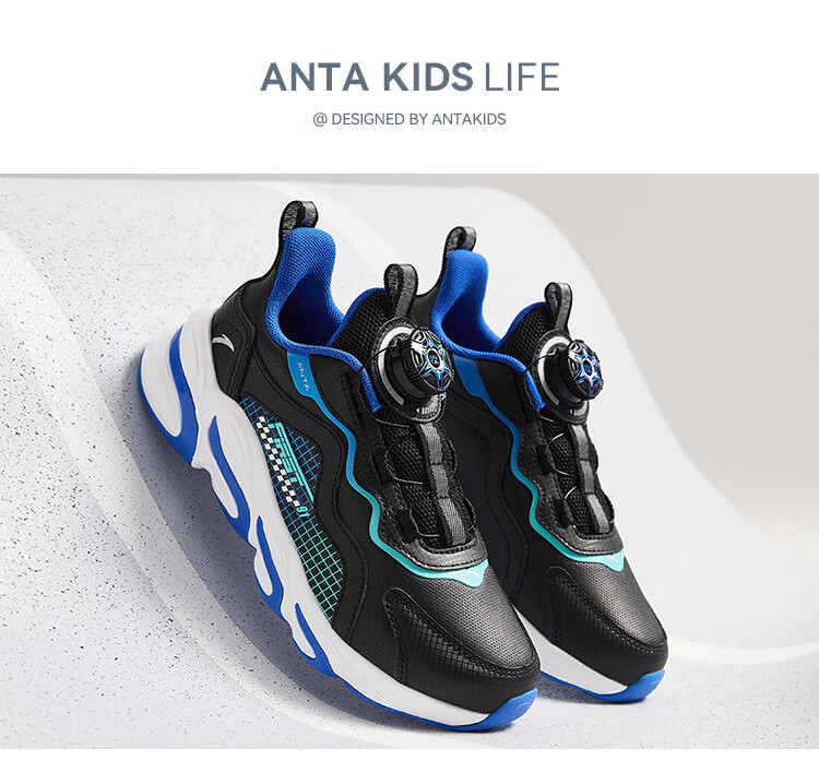 安踏儿童运动鞋男女童跑步鞋秋冬季网革旋钮扣犟弹科技学生赤焰跑鞋 【男密网】黑/蓝/水绿5523J-2 36 脚长约23cm