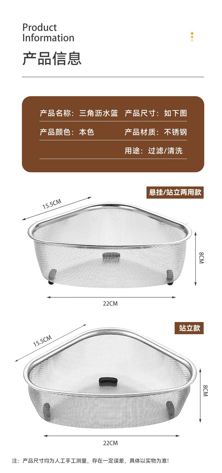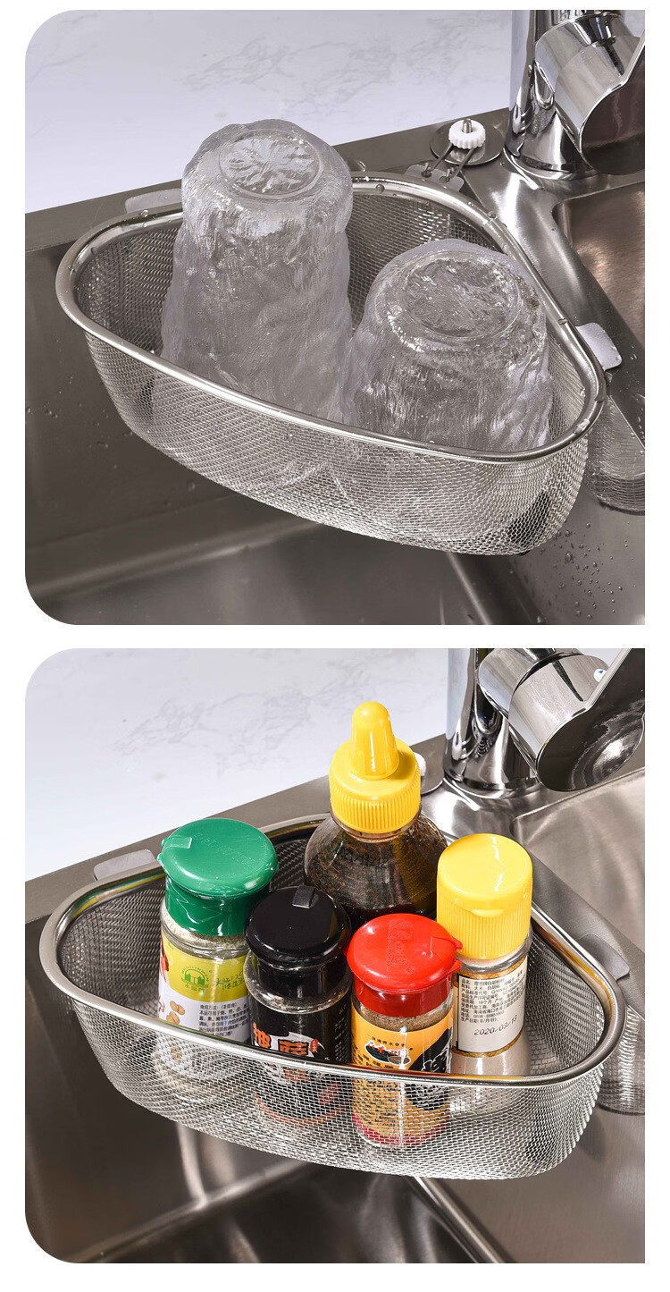 Changyin Dreieck-Spülbeckenfilter, Edelstahl, Küchenutensilien, multifunktional, Kanalreste, Abflussregal, Spülbeckenfilter, hängend, doppelt verwendbar