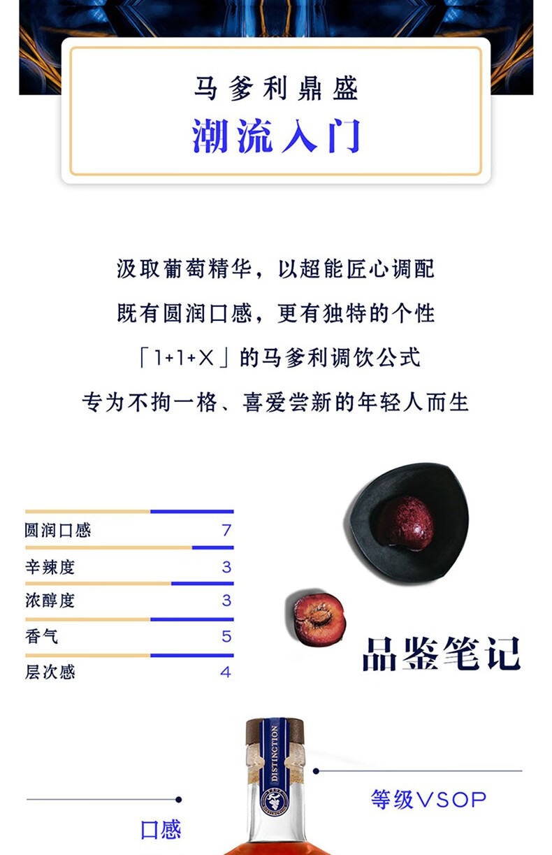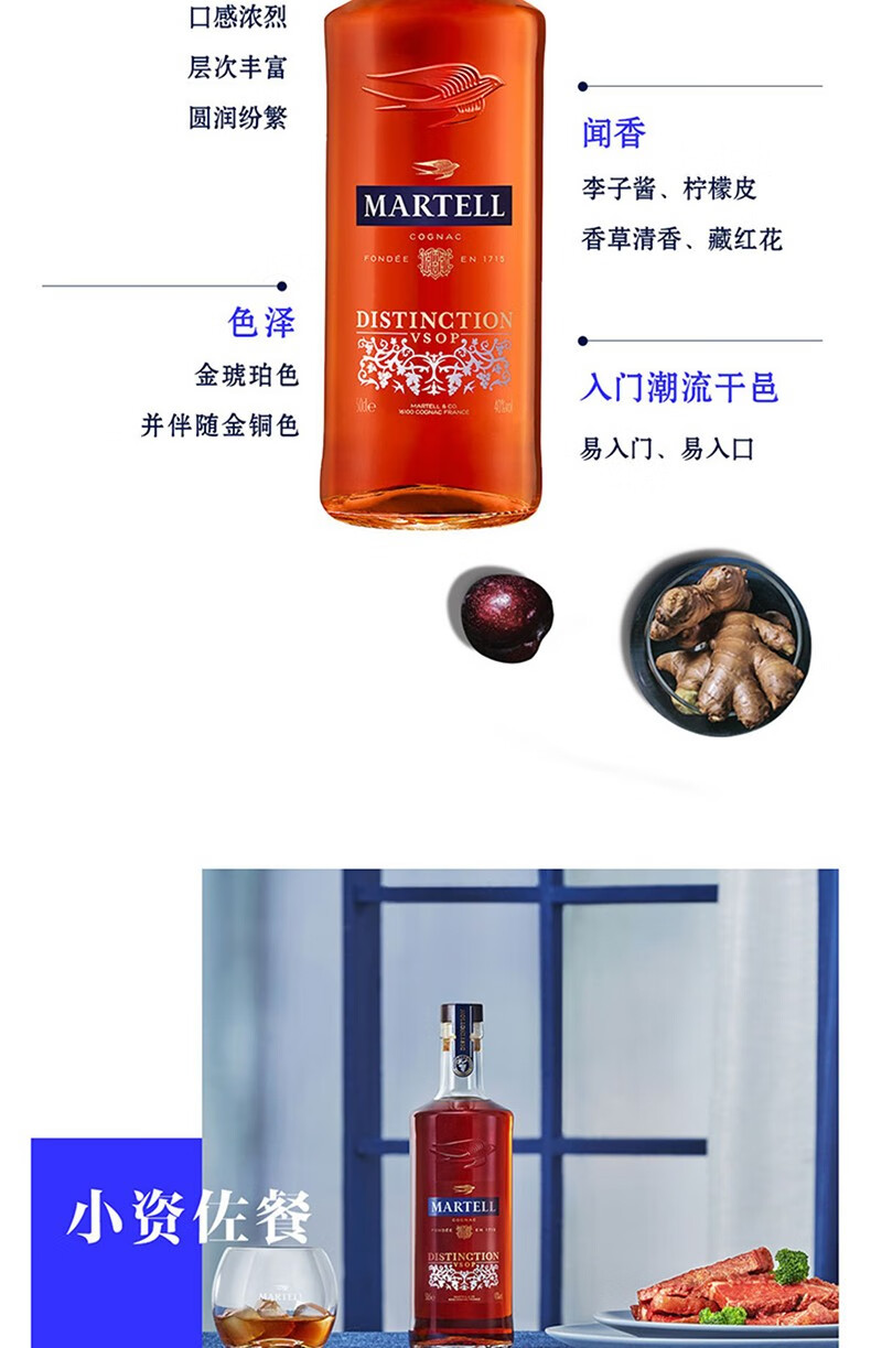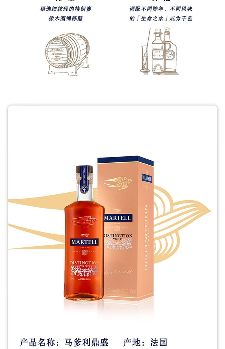 马爹利Martell Vsop 马爹利鼎盛干邑白兰地法国洋酒 500ml 一瓶一码 500mL 1瓶