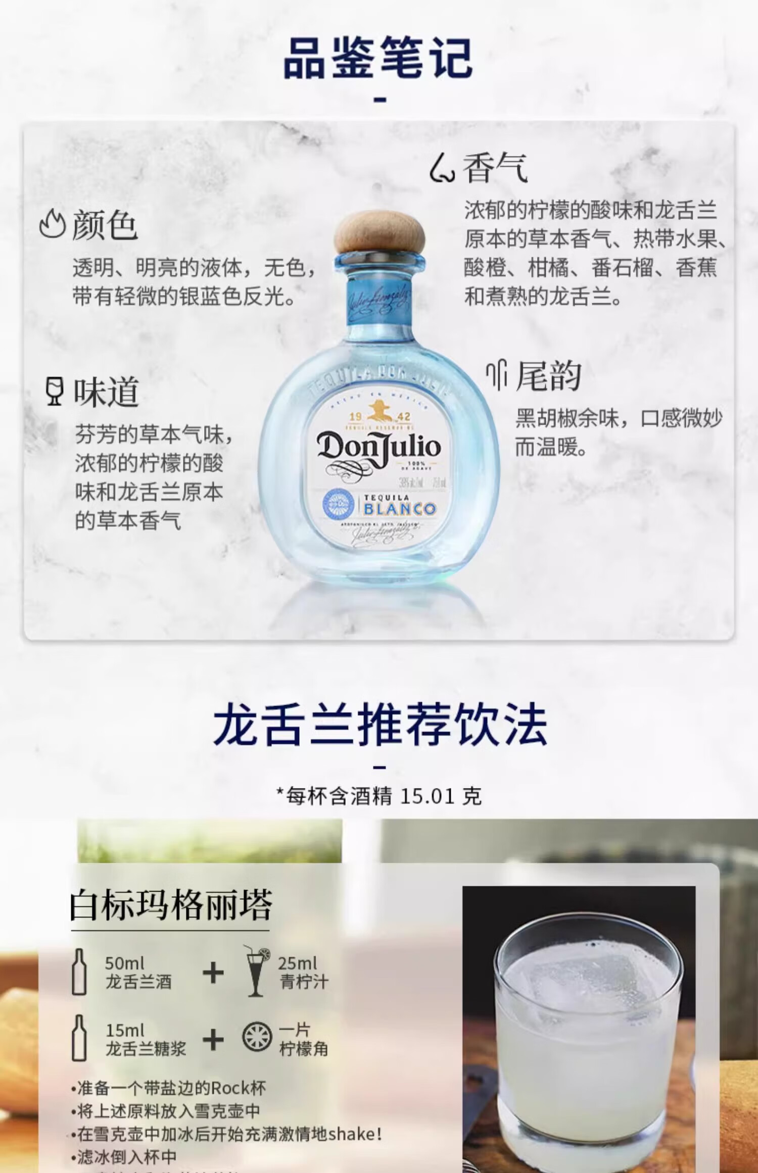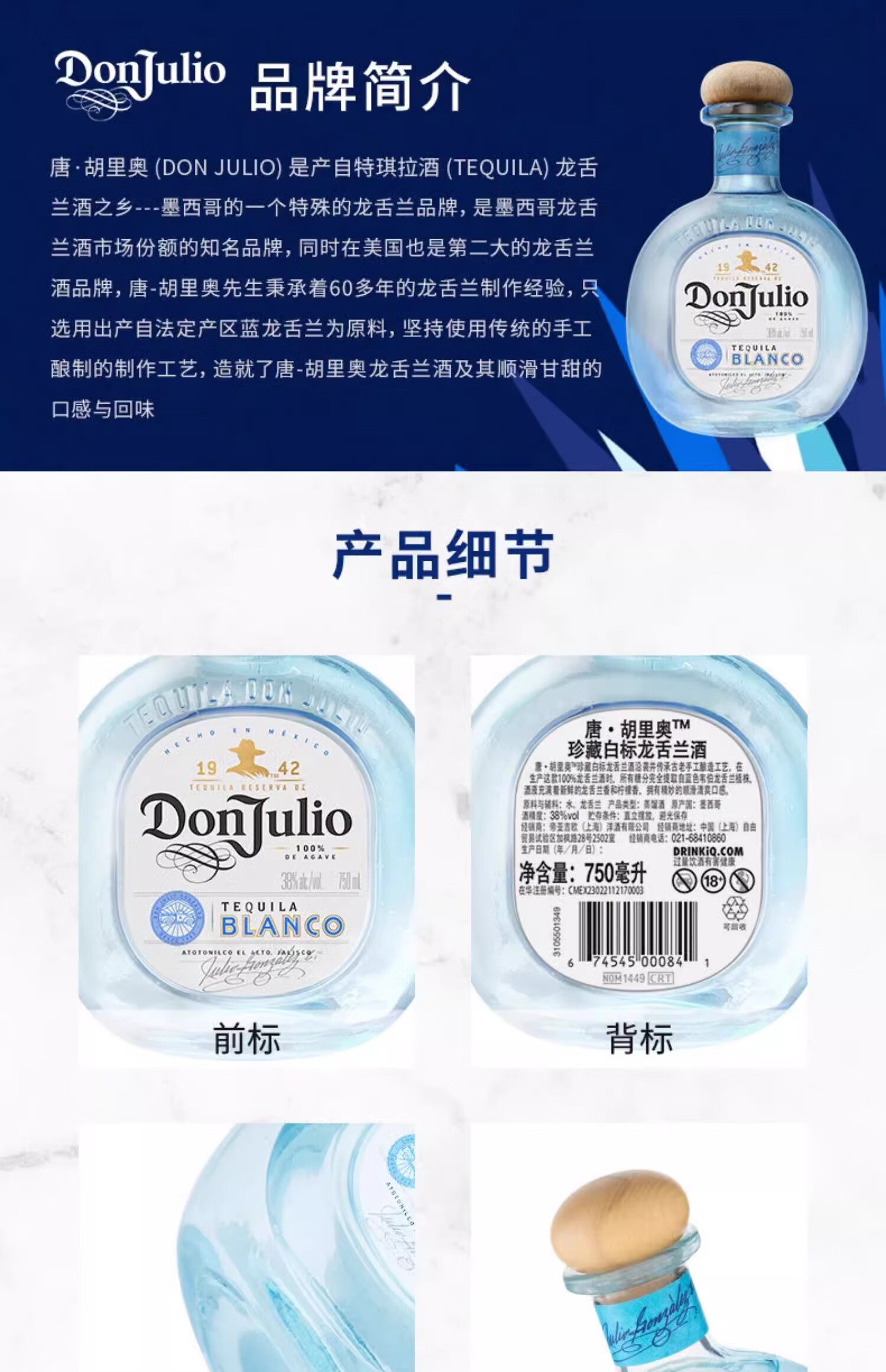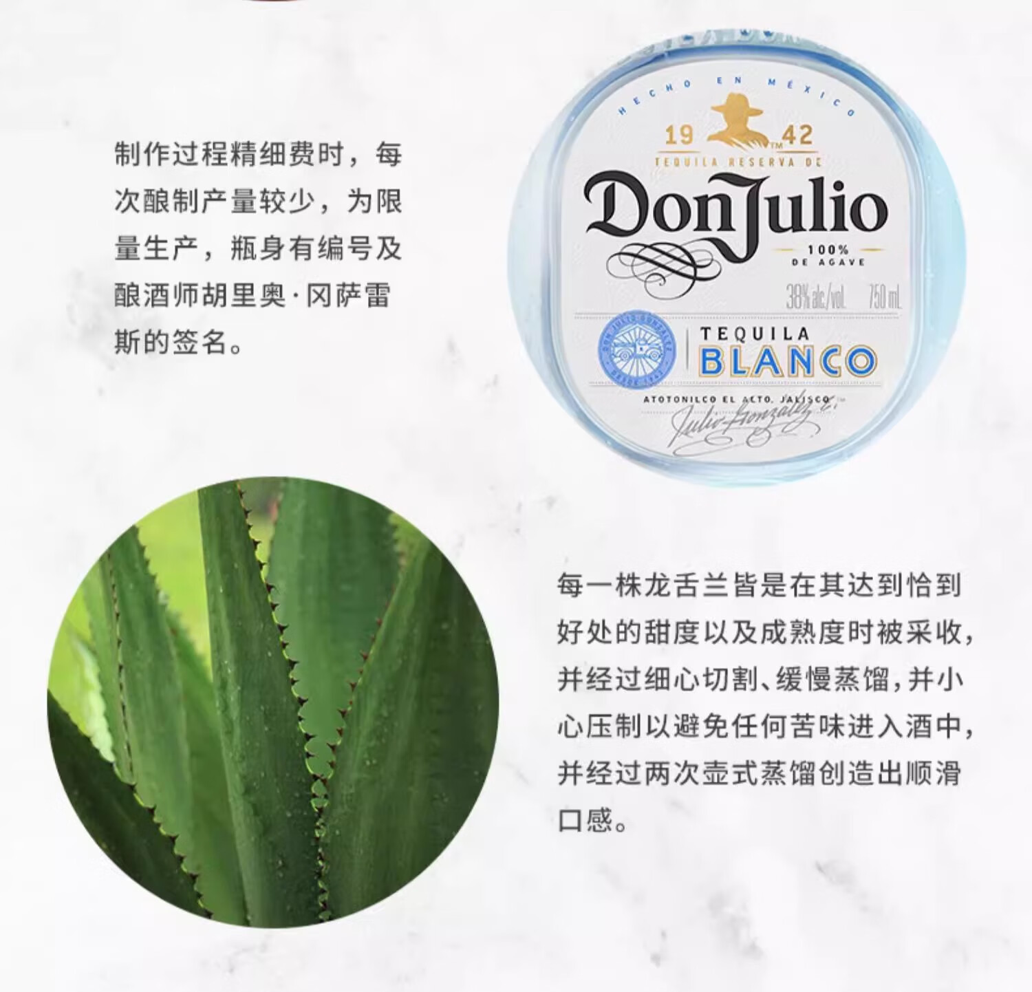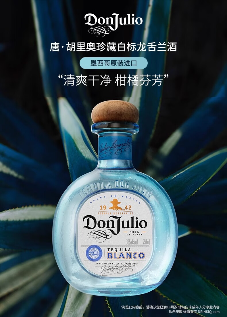 JiTu唐胡里奥银标龙舌兰酒 Don Julio 特基拉进口洋酒珍藏白标1942 700mL 1瓶 单瓶装 无规格