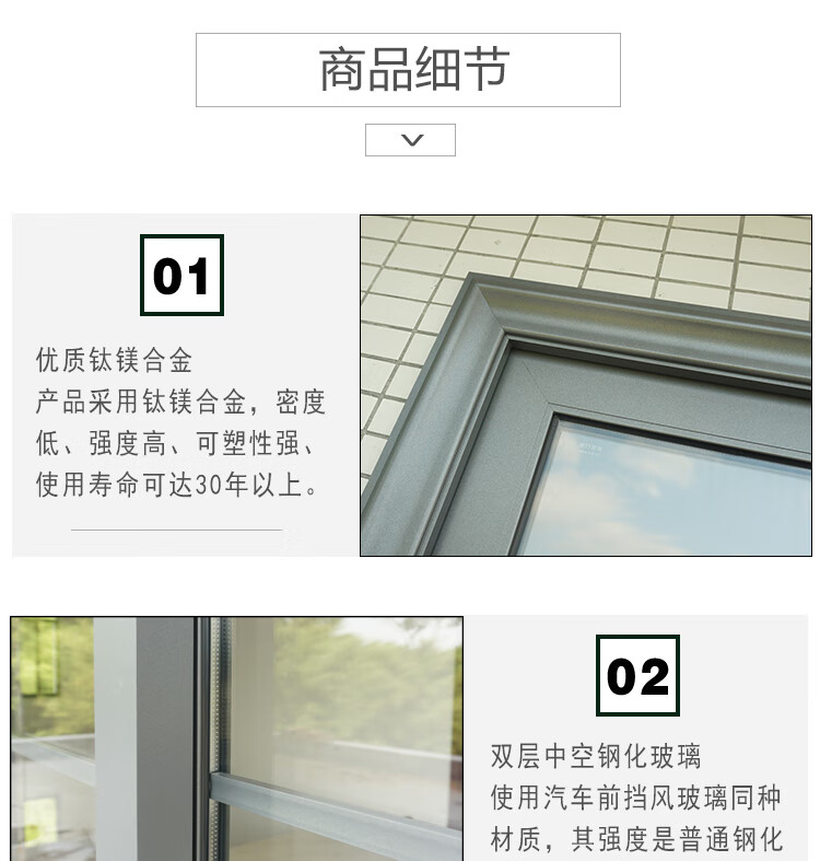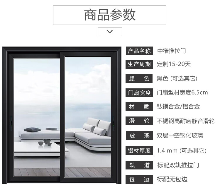 定制阳台重型钛镁铝合金推拉门落地封窗玻璃隔断客厅厨房移门 型材厚度1.0mm